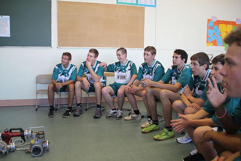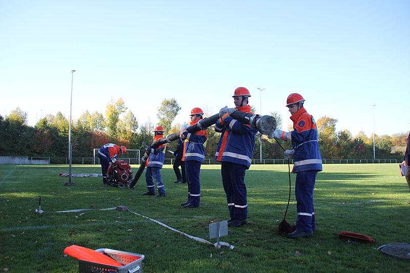 Rund 15 Minuten fühlte sich jede Gruppe wie in der Schule und musste Fragen zu allerlei verschiedenen Themen, wie zum Beispiel Politik, Feuerwehr, Allgemeinbildung und aktuelle Themen, beantworten. Die Königsdisziplin stellt der Löschangriff nach der aktuellen Feuerwehrdienstvorschrift dar. Möglichst ohne Fehler gilt es dabei eine Wasserversorung aufzubauen und von einem offenen Gewässer Wasser zu entnehmen und dieses mittels Verteiler und Schläuchen von drei Stellen an die angenommene Brandstelle zu bringen.