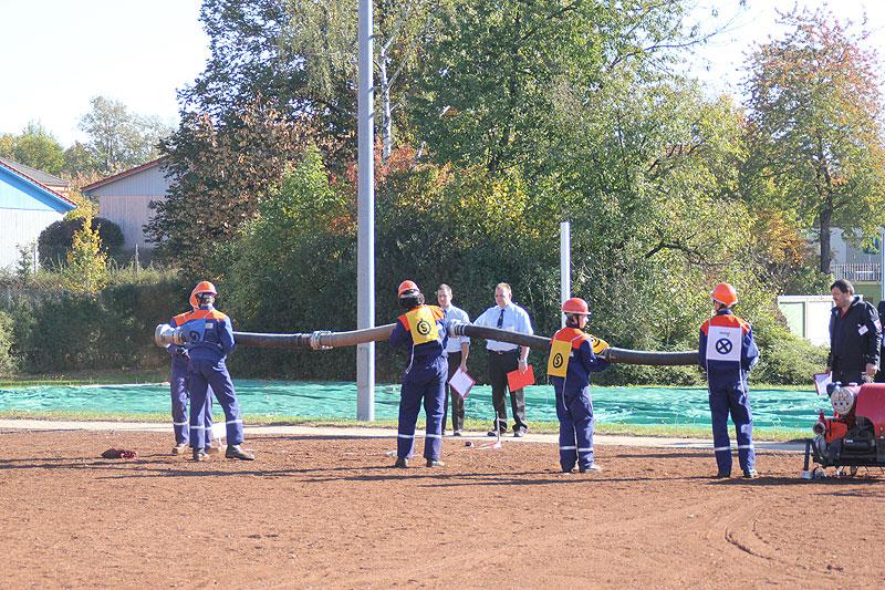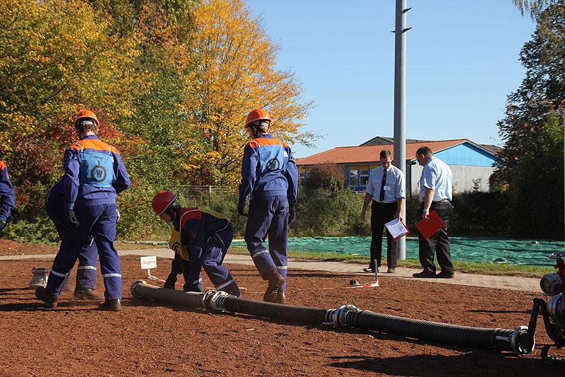 Bei der sicherlich schwierigsten Aufgabe, der Schnelligkeitsübung, geht es darum, zu neunt acht Schläuche von je 15 m Länge in weniger als 75 Sekunden ohne Verdrehung der Schlauchleitung zu verlegen. Der zweite sportliche Teil besteht aus einem Staffellauf über 1500 m, bei dem es den Jugendlichen freigestellt ist, wer wie weit läuft. Wichtig ist nur, dass das Staffelholz spätestens nach 4:10 min die Ziellinie passiert hat.