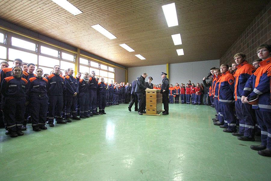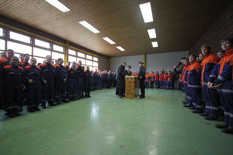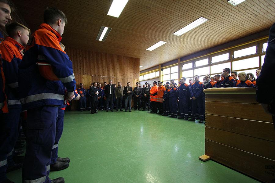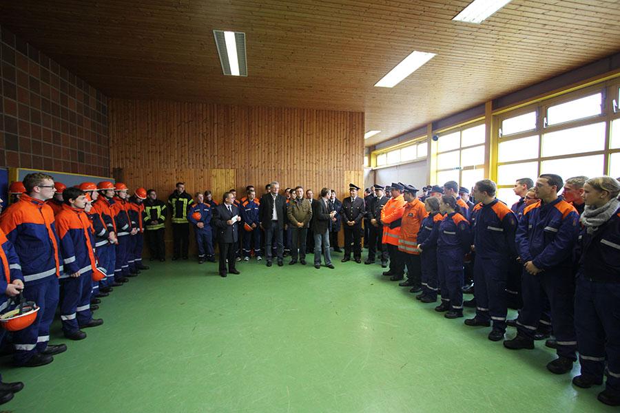 Vor der Siegerehrung bedankte sich Kreisjugendwart Nikolaus Klasan bei den Jugendlichen für ihre Teilnahme und der Feuerwehr Osterburken für die Vorbereitung der Abnahme. Bürgermeister Jürgen Galm freute sich auch im Namen von MdB Alois Gerig und Landrat Dr. Achim Brötel über das Engagement der Jugendlichen. Der stellv. Kreisfeuerwehrverbandsvorsitzende Sebastian Klos gratulierte zu einem großen Schritt im Feuerwehrleben und forderte die Jugendlichen auf, auch nach dem Übertritt in die Einsatzabteilung für "ihre" Feuerwehr da zu sein.