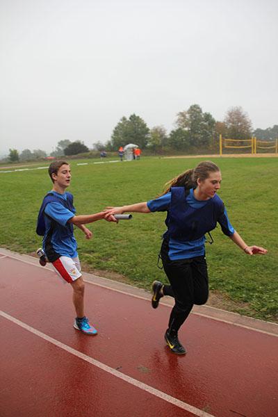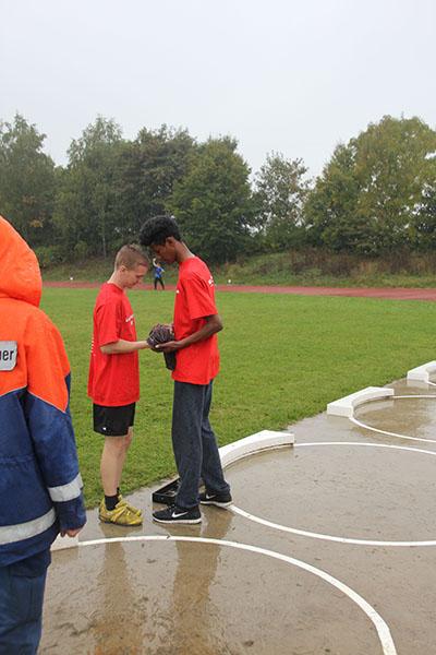 Um im Kugelstoßen gemeinsam 55 m zu erreichen mussten sich alle Gruppenmitglieder anstrengen und die 5-kg-Kugel (Jungen) bzw. die 4-kg-Kugel (Mädchen) ohne überzutreten soweit wie möglich in den Kugelstoß-Sektor befördern.