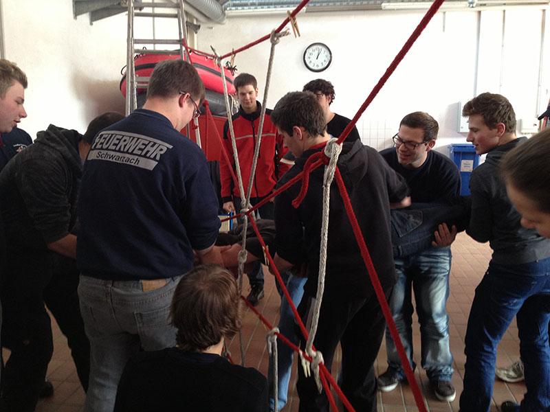 Selbstverständlich kam auch die praktische Anwendung des Gelernten nicht zu kurz. Aufgelockert wurden die Theorieteile durch diverse Spiele, welche die Teilnehmer auch in der Arbeit mit den Jugendlichen in ihrem Heimat-Jugendfeuerwehren verwenden können.