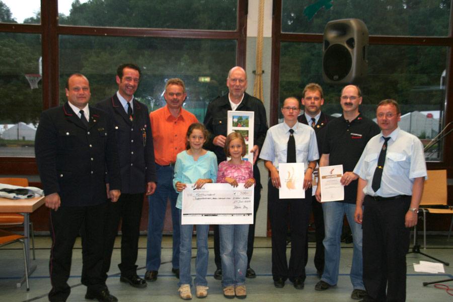 Kreisbrandmeister Rainer Dietz, der bereits vor einiger Zeit einen runden Geburtstag feiern konnte und die Grüße des Ersten Landesbeamten Michael Knaus überbrachte, überreichte der Jugendfeuerwehr Neckar-Odenwald-Kreis einen großzügigen Scheck zur Verwendung in der Jugendfeuerwehrarbeit. Nikolaus Klasan bedankte sich bei ihm mit einer Bildmontage von Dietz' Teilnahme am Eröffnungspiel des landesweiten Streetballturniers SMOVE.
