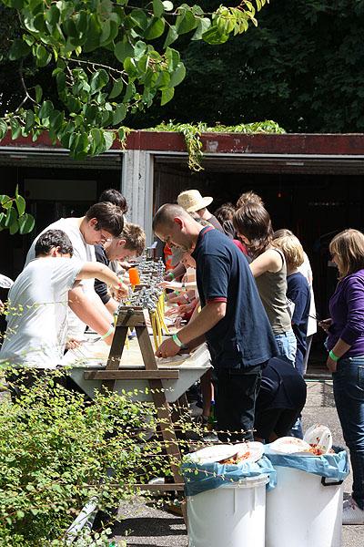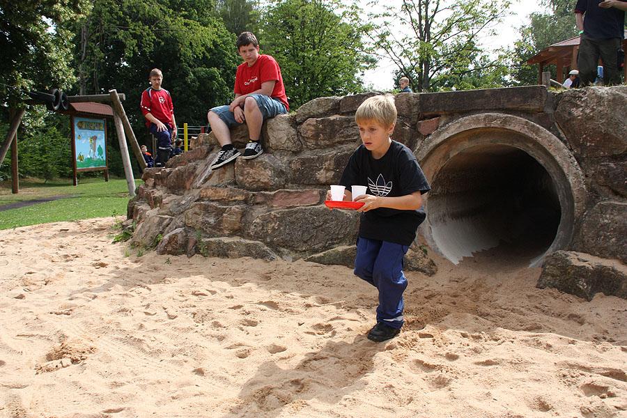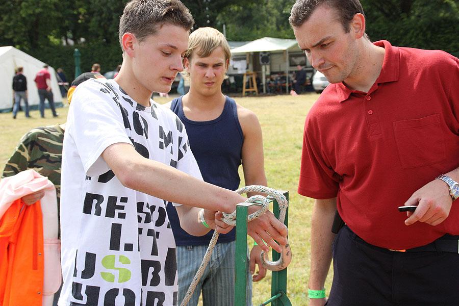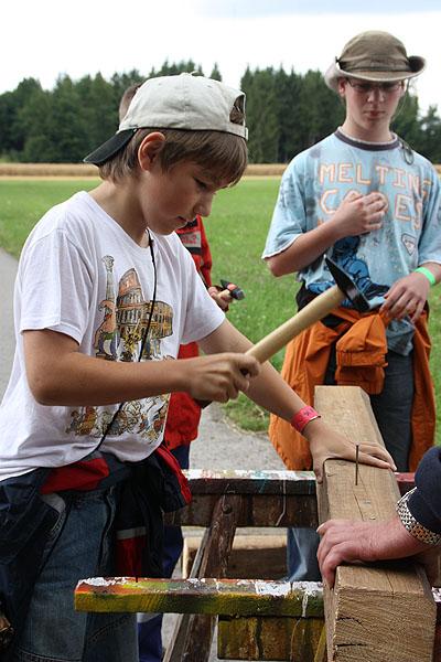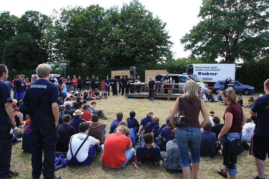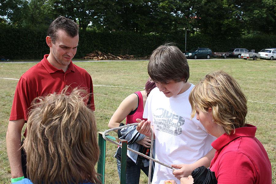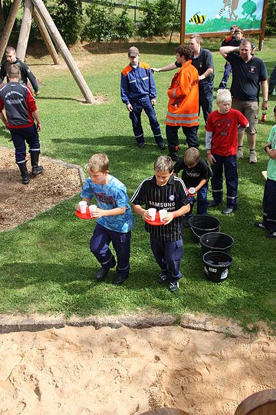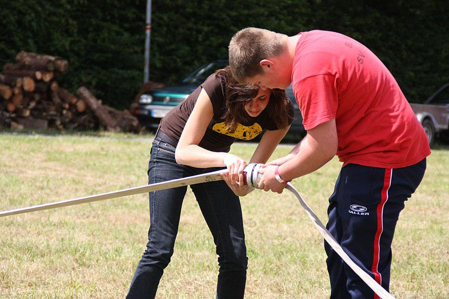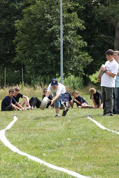 Nach einem verregneten Vormittag, machten sich die Jugendlichen am Nachmittag mit ihren Betreuern auf den Weg zu einer Wanderung, die mit verschiedenen Spielen gespickt war. Auf dem Weg Richtung Ünglert und Steinbach und zurück auf den Zeltplatz mussten die Jugendlichen sechs Aufgaben erfüllen, die Geschick, Intelligenz und Feuerwehrtechnisches Wissen voraussetzten.