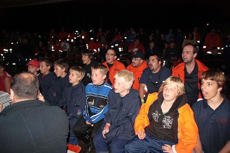 Bevor der Abend mit einer Karaoke-Show endete, an der sich fast alle Jugendfeuerwehren beteiligten, musste Kreisjugendfeuerwehrwart Nikolaus Klasan seine Sangeskünste unter Beweis stellen und einen ihm unbekannten Titel singen. Die Organisation des Karaoke-Abends hatten die Jugendsprecher der teilnehmen Jugendfeuerwehren übernommen.