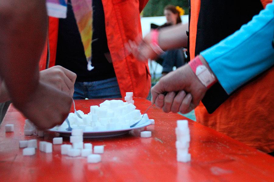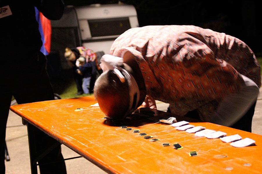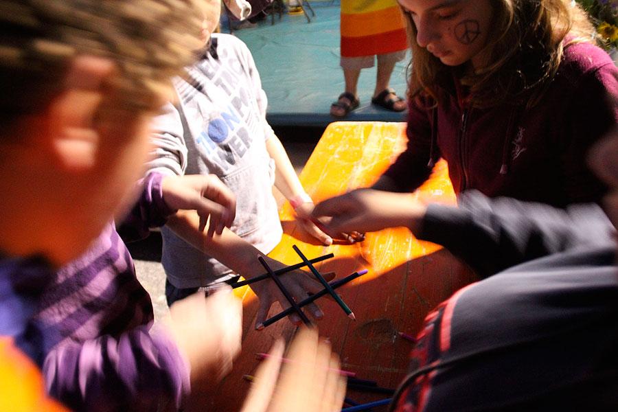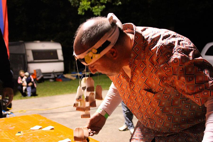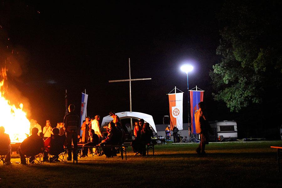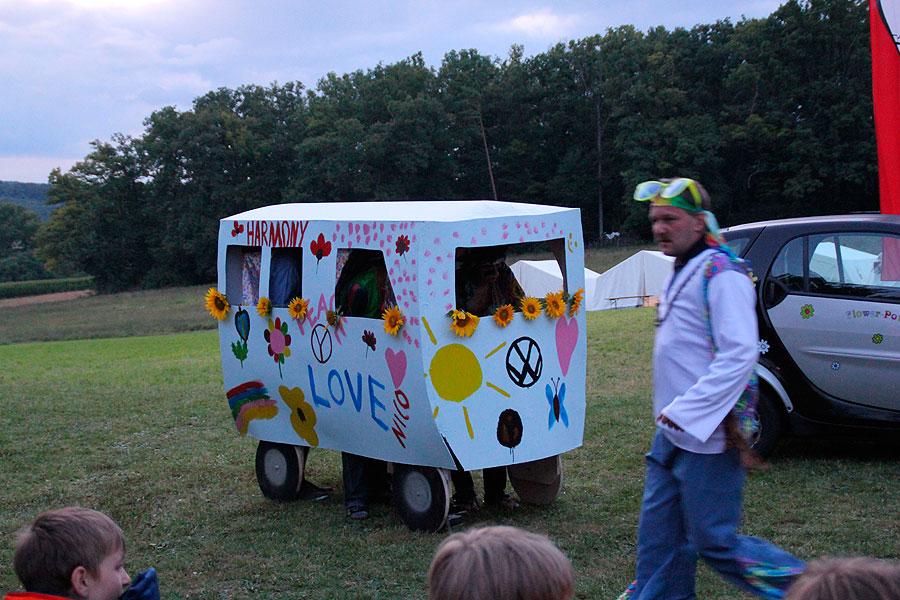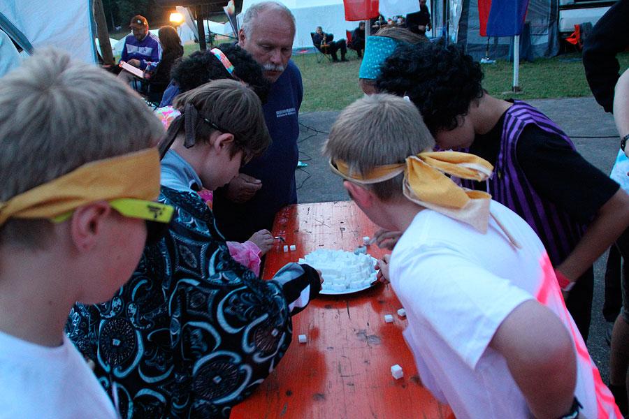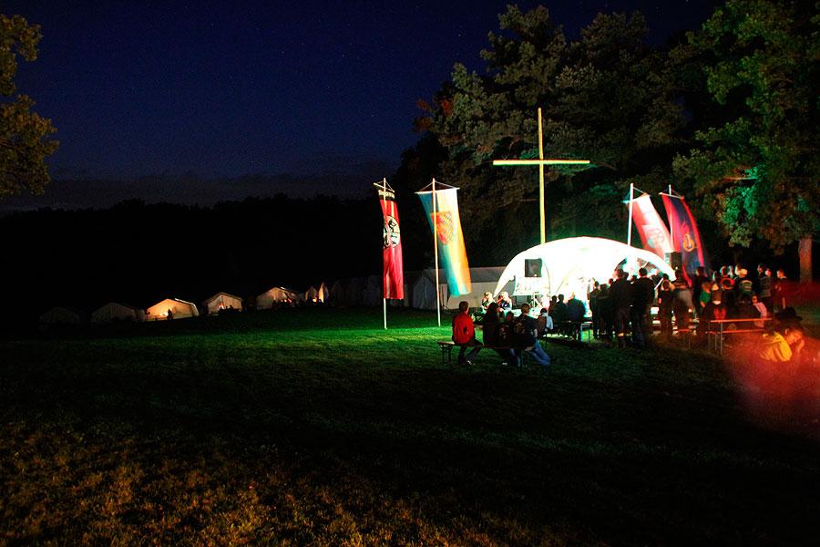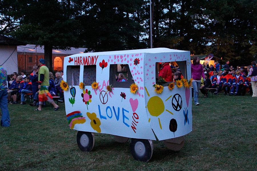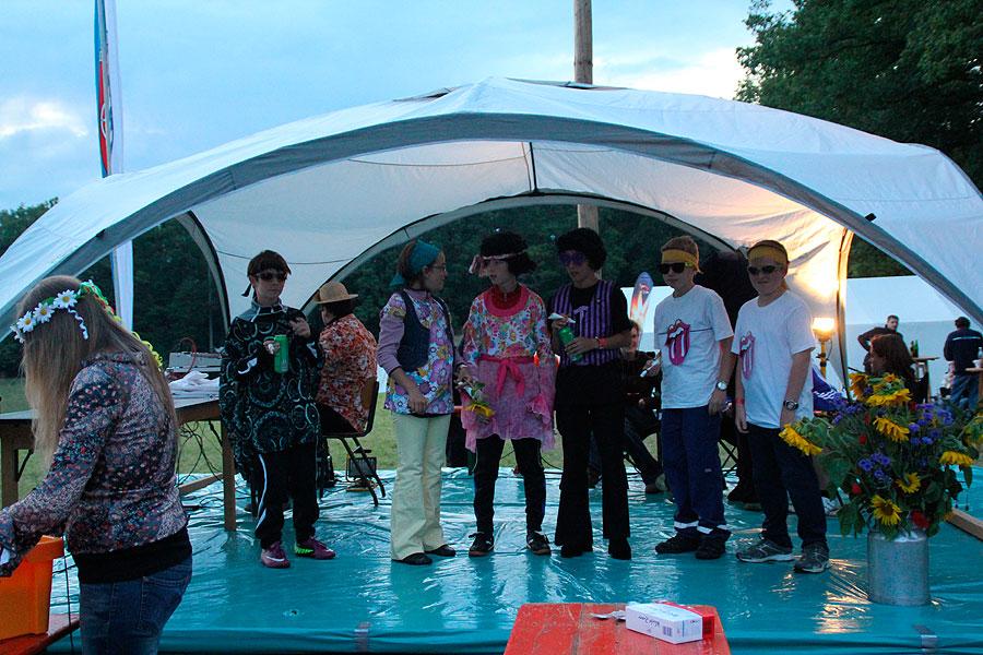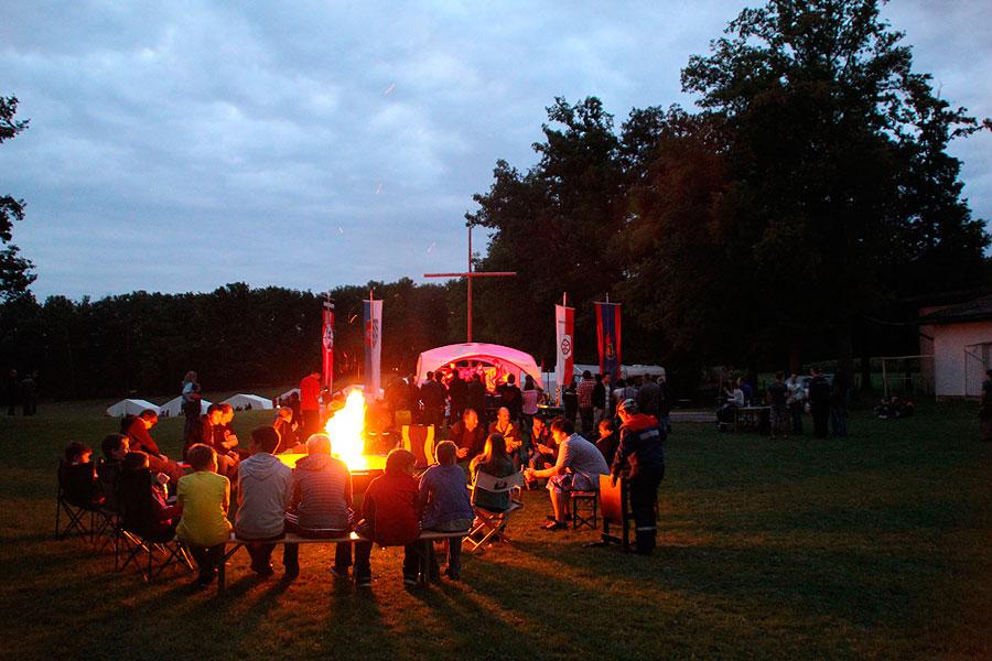 Bevor die Jugendlichen den Abend am Lagerfeuer beendeten, zeigten alle Jugendgruppen ihre meist selbstgebastelten Verkleidungen rund um das selbstgewählte Zeltlager-Motto "Die wilden Siebziger" und bewältigten in fünf Spielen beinahe unlösbare Aufgaben innerhalb einer kurzen Minute.