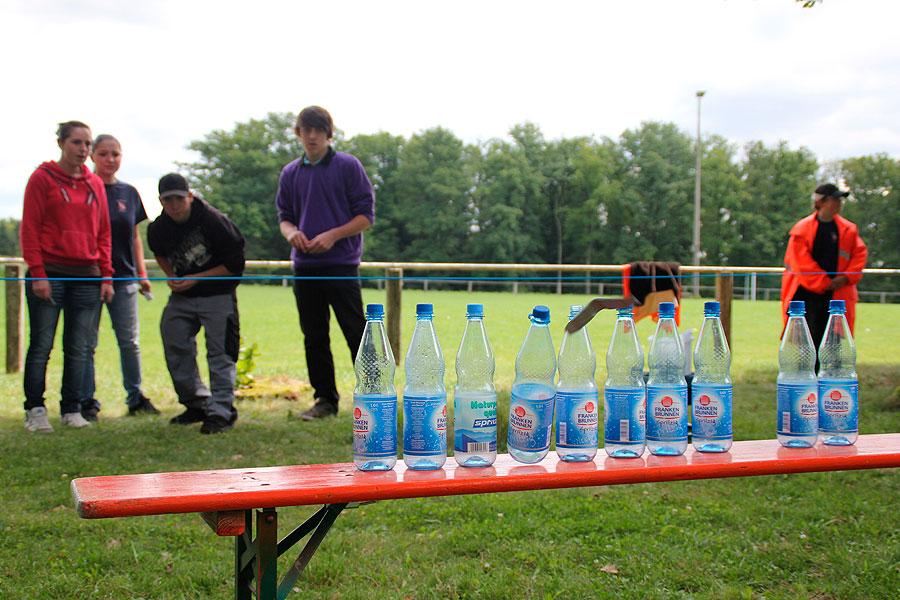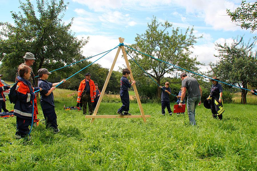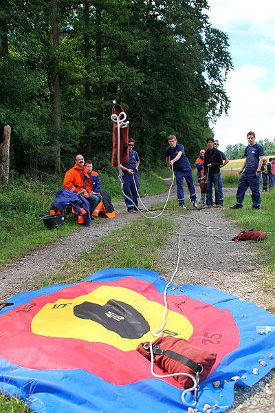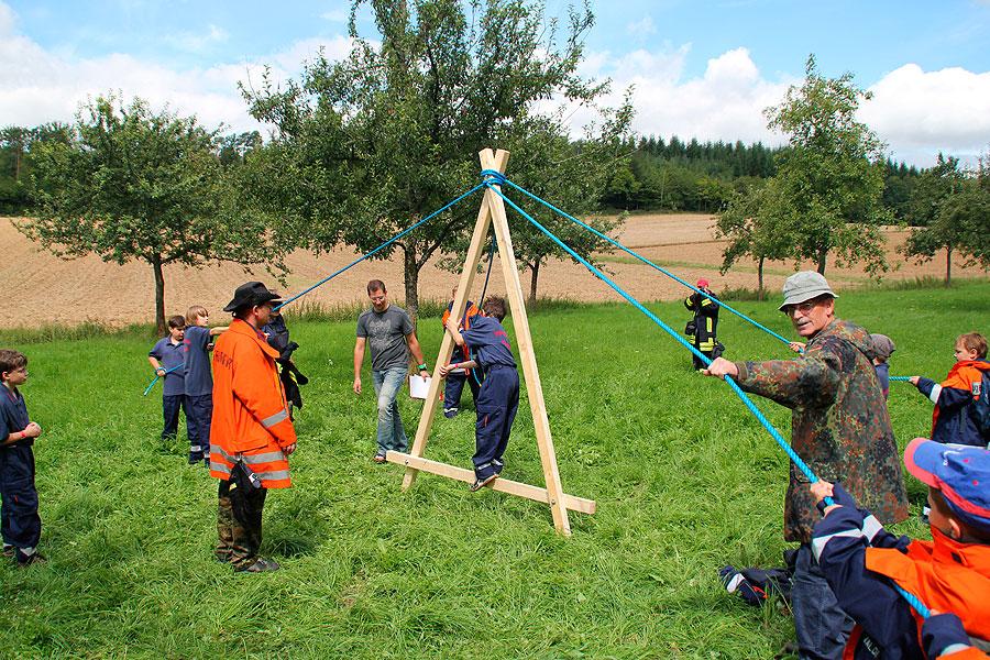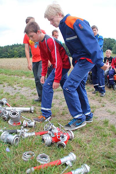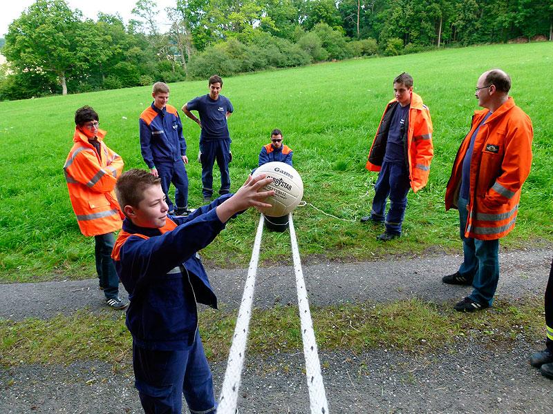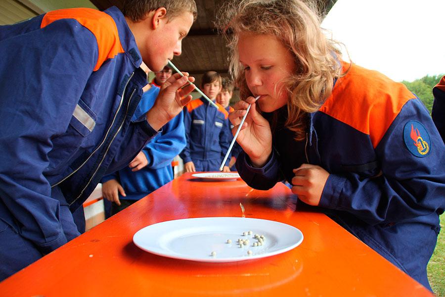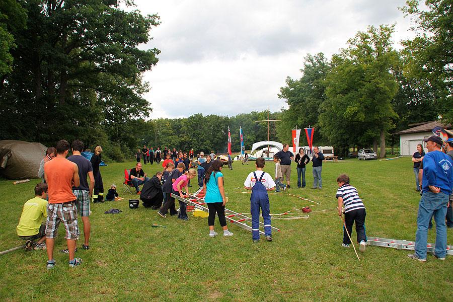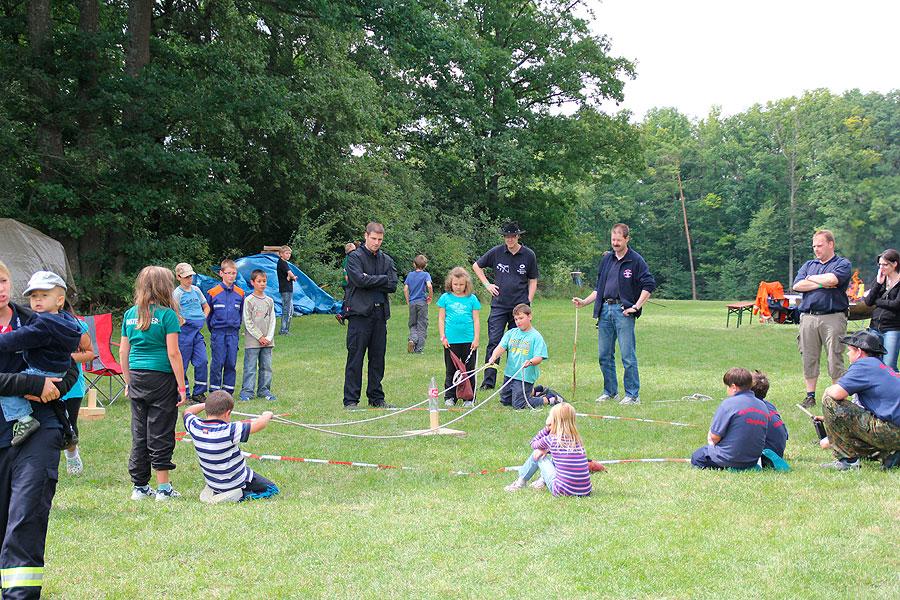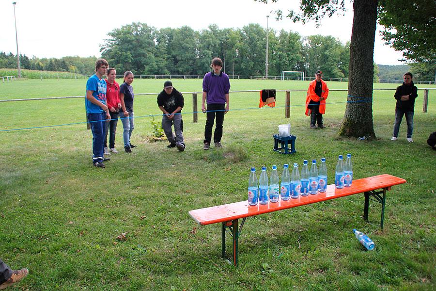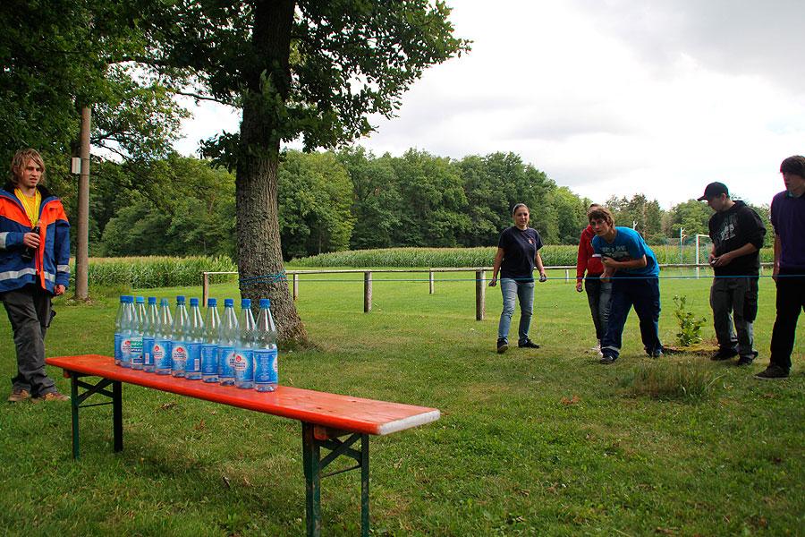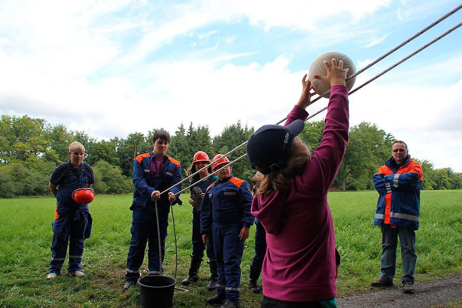 Die große Erlebniswanderung am Samstag vormittag hielt eine Vielzahl an Spielen für die Jugendlichen bereit: das Laufende "A", Ball über Seil, Tischtennisball durch Feuerwehrschlauch, Muttern zu Schrauben, Riesenkatapult und Leinenbeutel-Zielwurf.