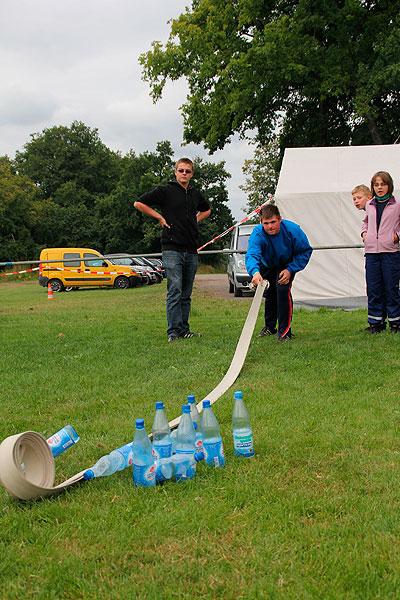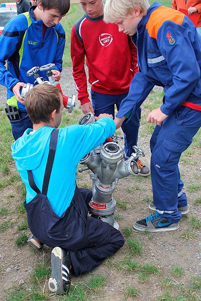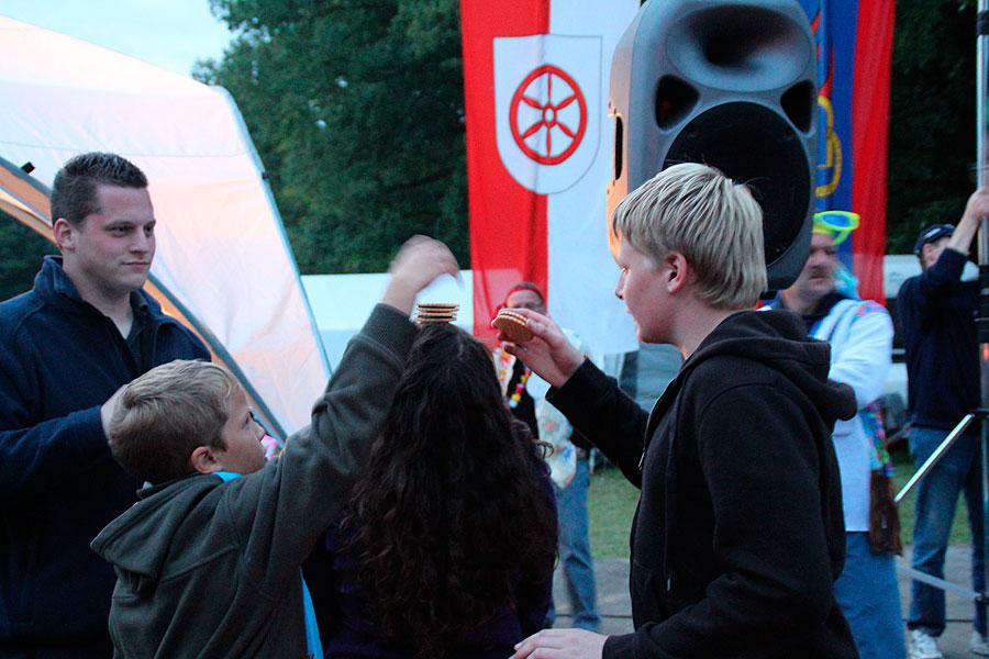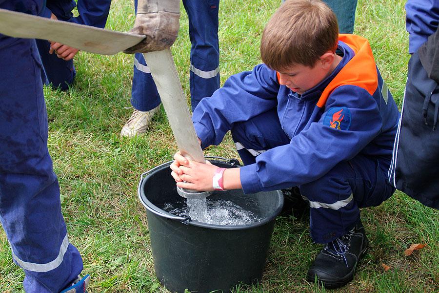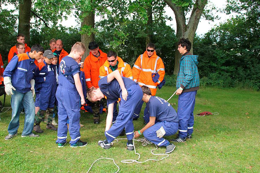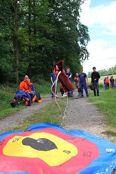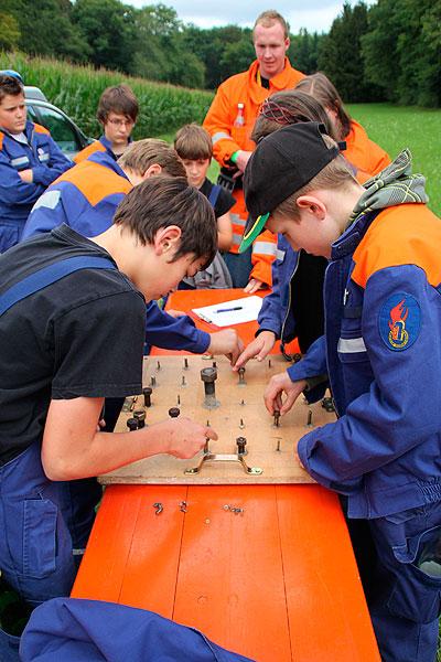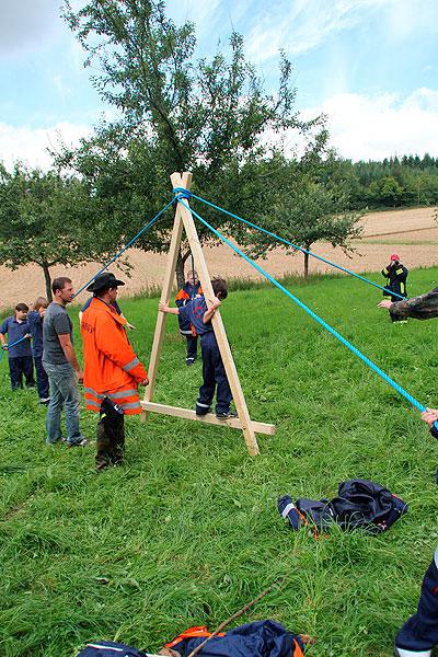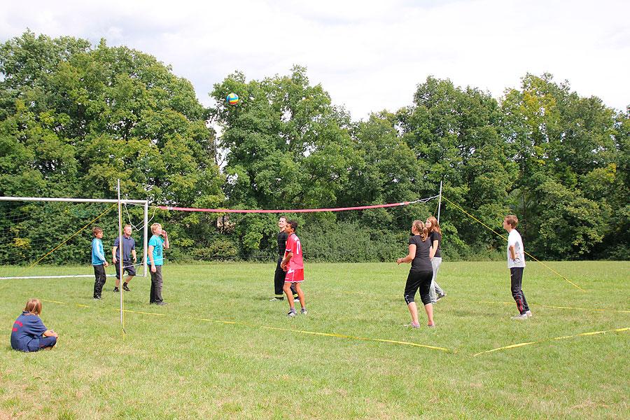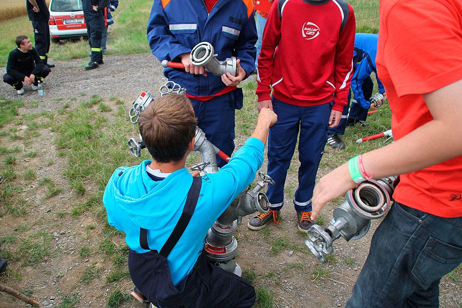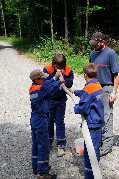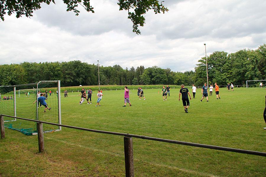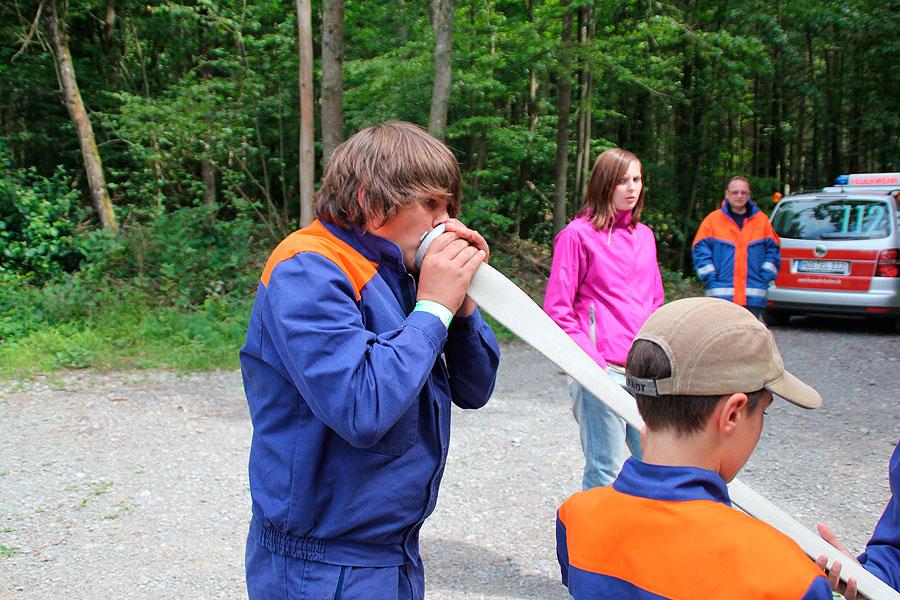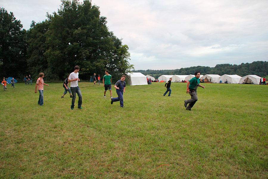 Die große Erlebniswanderung am Samstag vormittag hielt eine Vielzahl an Spielen für die Jugendlichen bereit: das Laufende "A", Ball über Seil, Tischtennisball durch Feuerwehrschlauch, Muttern zu Schrauben, Riesenkatapult und Leinenbeutel-Zielwurf.