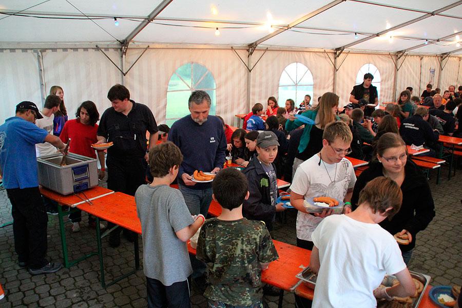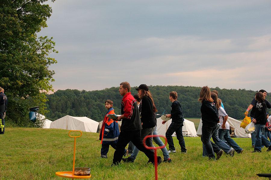 Kreisjugendfeuerwehrwart Nikolaus Klasan begrüßte am Freitag Abend die Teilnehmer aus dem gesamten Landkreis am Bofsheimer Sportplatz und eröffnete offiziell das 34. Kreiszeltlager der Jugendfeuerwehren. Am späten Abend heizte die Rock-Band "The Bricks" den Jugendlichen und ihren Betreuern kräftig ein.