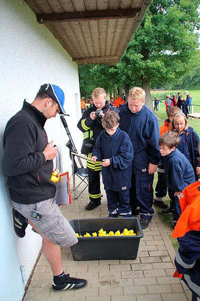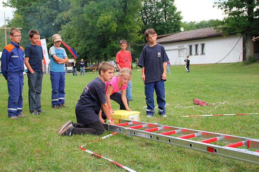 Der Sonntag war der Lagerolympiade vorbehalten, bei der die Jugendlichen aus den 23 Ortschaften ihre Geschicklichkeit in verschiedenen Spielen beweisen konnten: beim Enten Angeln, beim Feuerwehrschlauch-Kegeln, beim Wassertransport durch einen Schlauch, beim Kistenrennen, beim Kleidung fädeln und beim Erbsensaugen.