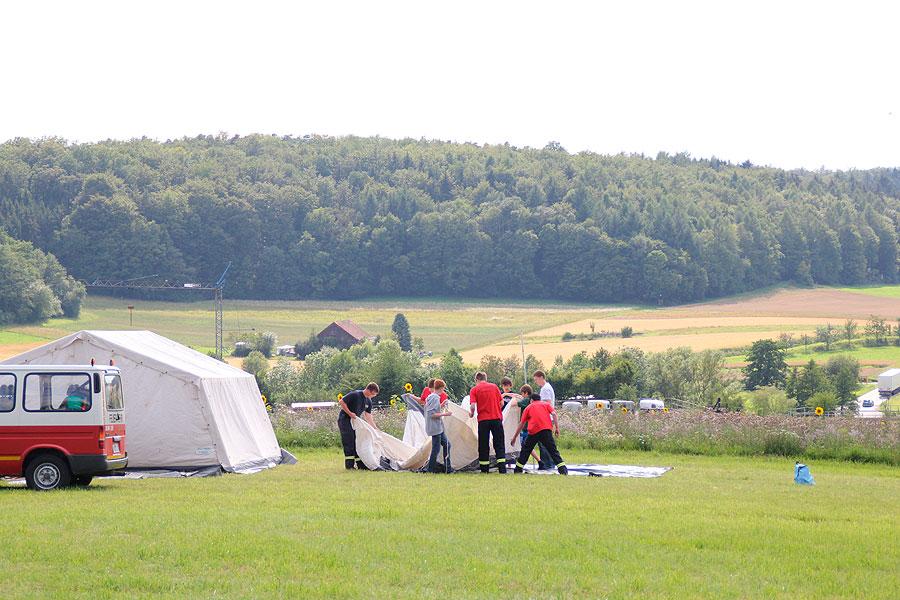 Bofsheim/Neckar-Odenwald-Kreis | Drei abenteuerliche Tage mit wenig sommerlichen Temperaturen, aber fast ohne Regen, genossen rund 300 Jugendliche und ihre Betreuer am vergangenen Wochenende am Sportplatz in Bofsheim beim 34. Zeltlager der Jugendfeuerwehren im Neckar-Odenwald-Kreis.