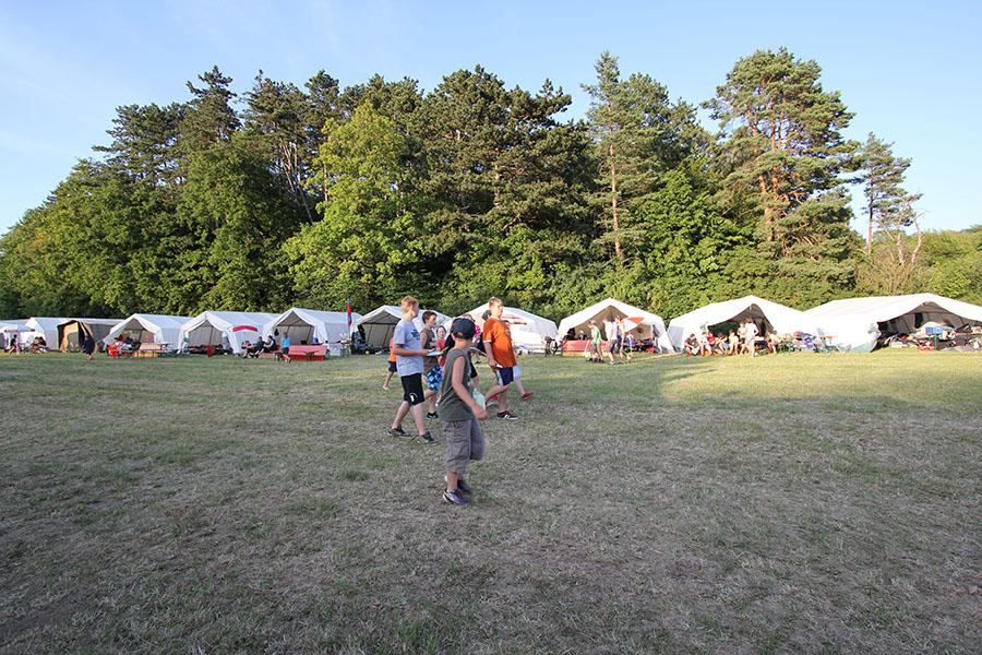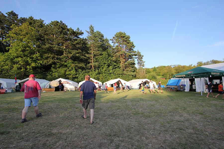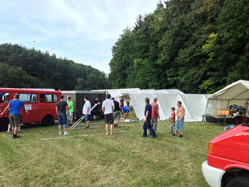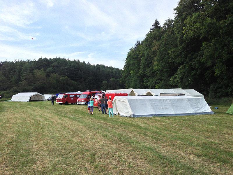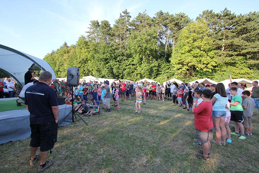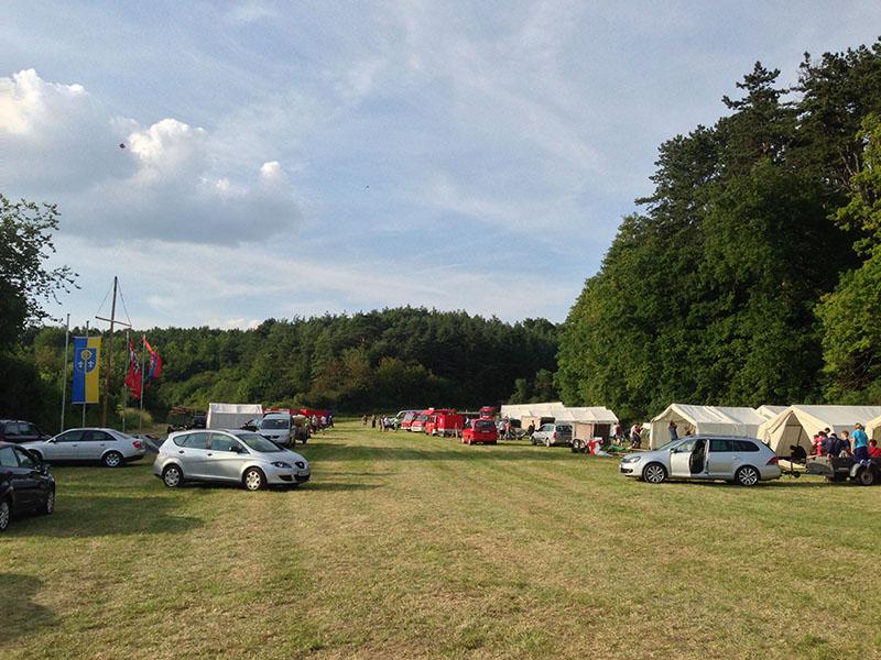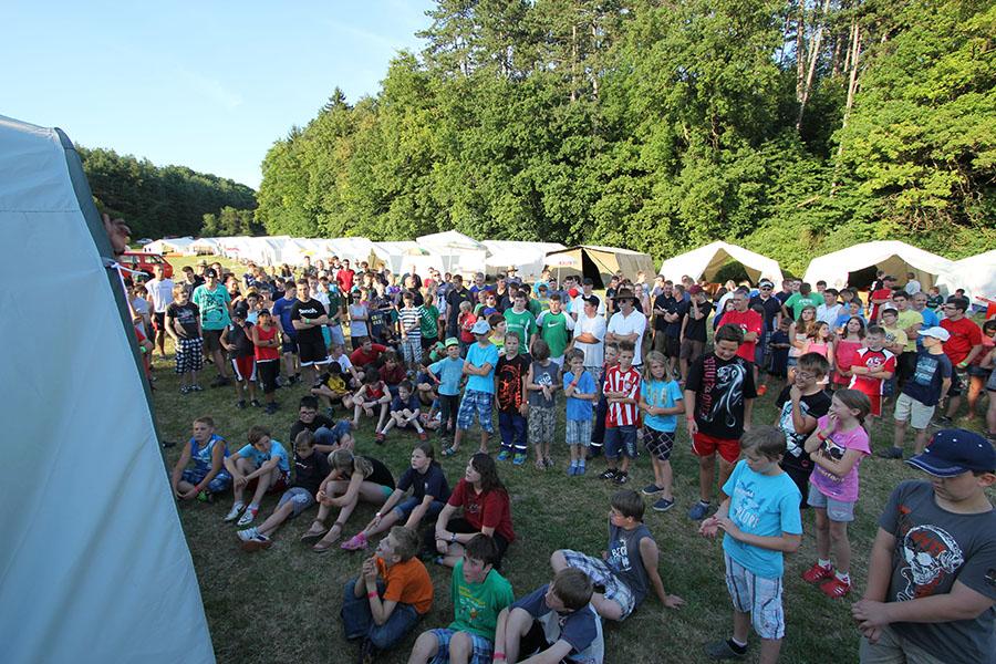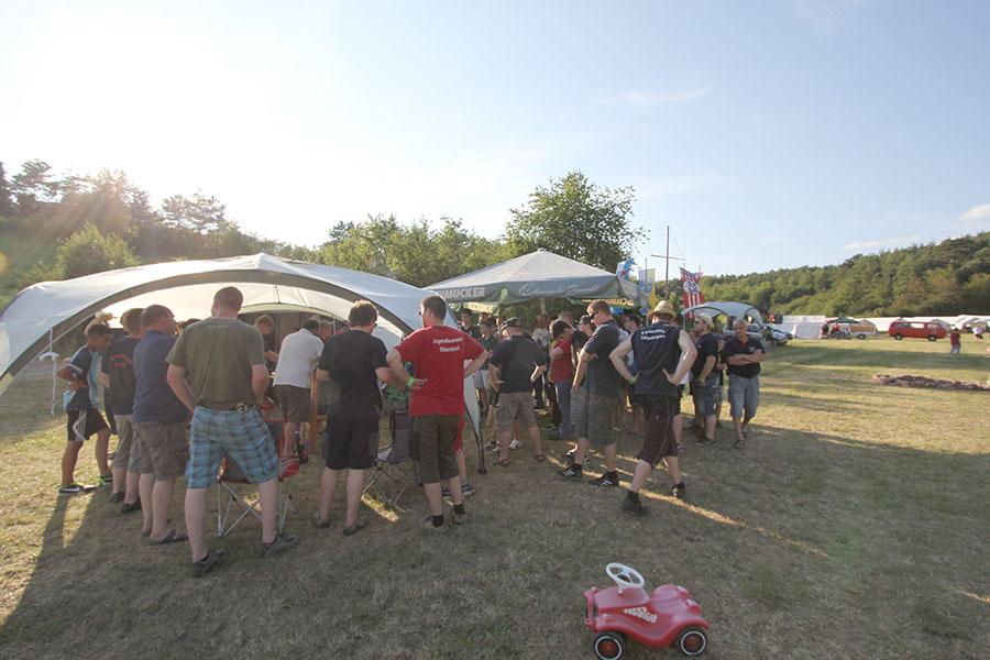 Am Donnerstag reisten die ersten Jugendfeuerwehren zum Zeltaufbau an und lernten den Zeltplatz kennen. Nach der eigentlichen Anreise am Freitag und dem Einrichten der Zelte begrüßten Kreisjugendwart Nikolaus Klasan, Ortsvorsteher Volker Mackert und Stadtbrandmeister Klaus Theobald die Teilnehmer aus 30 Ortschaften im Landkreis in Hettingen. Frisch gestärkt vom Abendessen erkundeten die Jugendfeuerwehrler im Rahmen einer Dorfralley Hettingen.