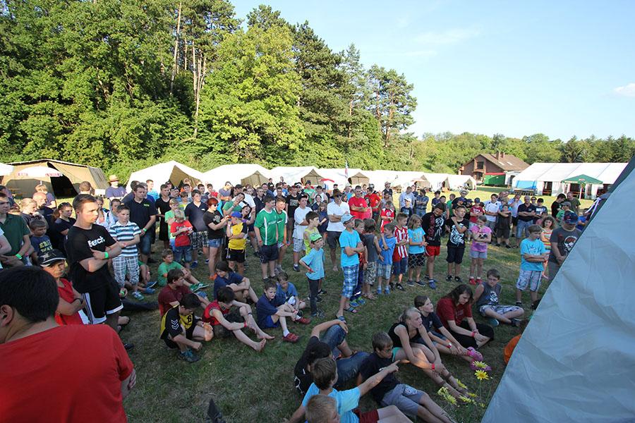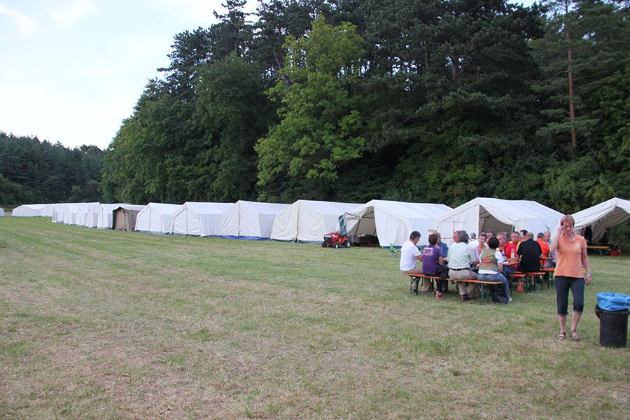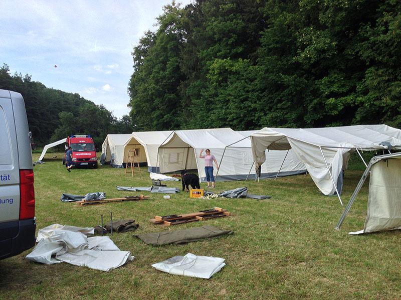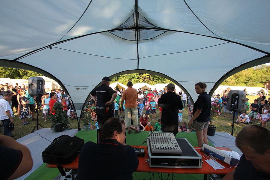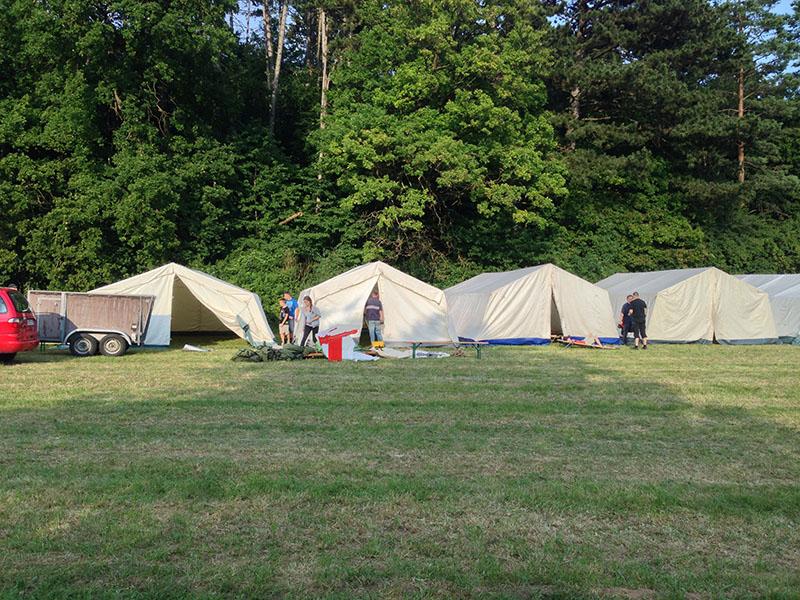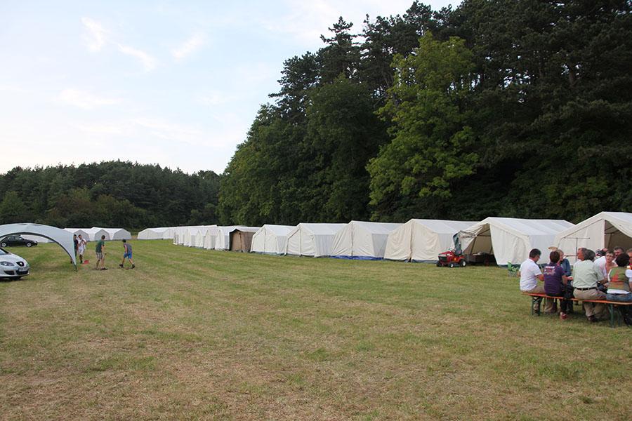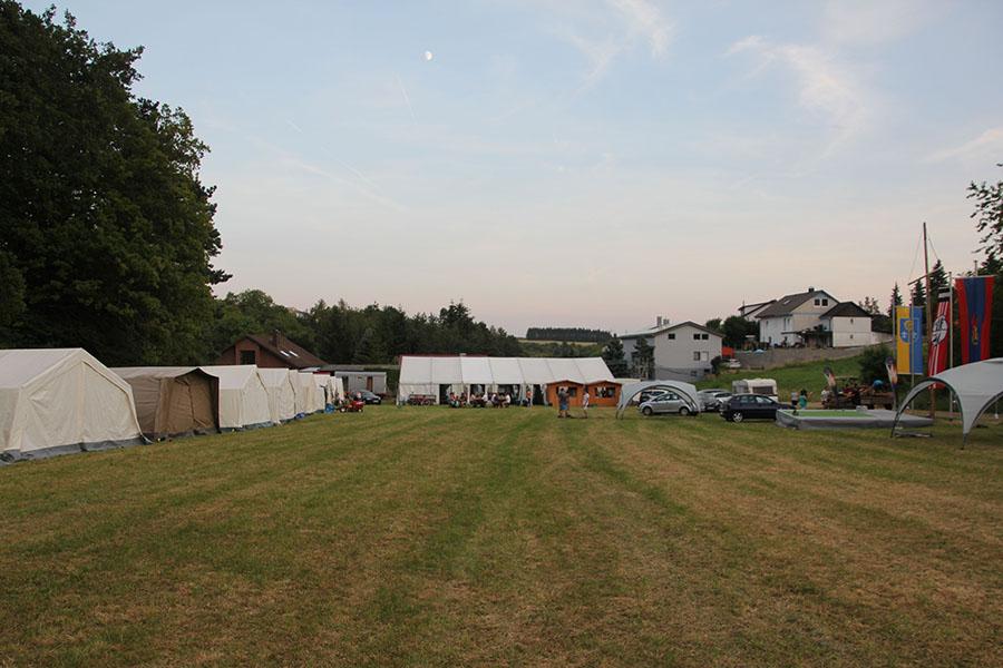 Am Donnerstag reisten die ersten Jugendfeuerwehren zum Zeltaufbau an und lernten den Zeltplatz kennen. Nach der eigentlichen Anreise am Freitag und dem Einrichten der Zelte begrüßten Kreisjugendwart Nikolaus Klasan, Ortsvorsteher Volker Mackert und Stadtbrandmeister Klaus Theobald die Teilnehmer aus 30 Ortschaften im Landkreis in Hettingen. Frisch gestärkt vom Abendessen erkundeten die Jugendfeuerwehrler im Rahmen einer Dorfralley Hettingen.