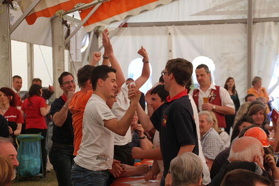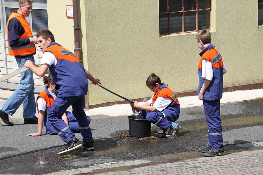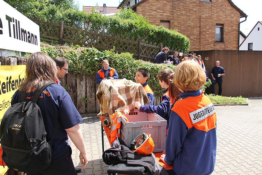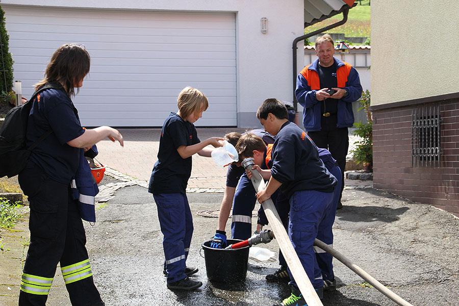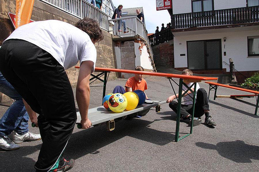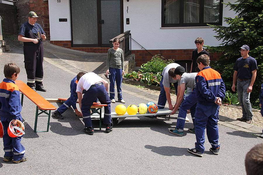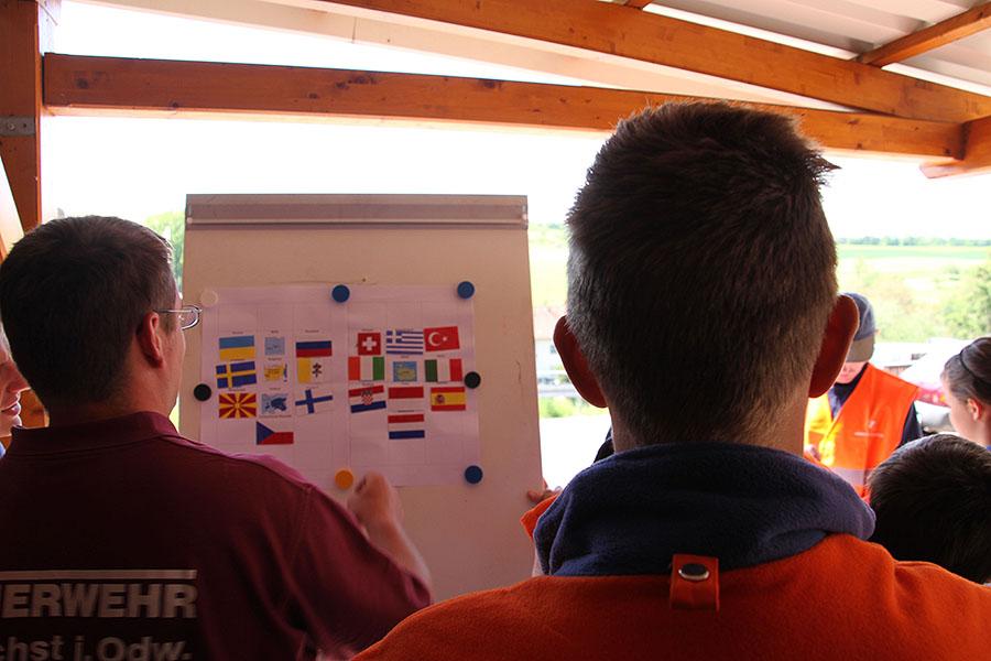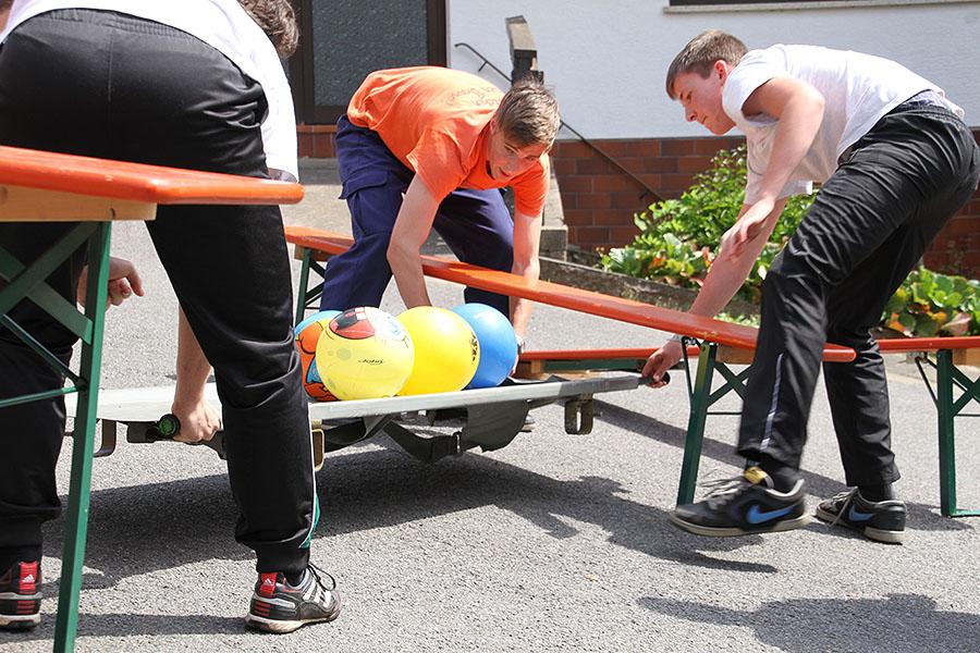 Vorher galt es allerdings bei strahlendem Sonnenschein und sommerlichen Temperaturen, die neun Spiele zu meistern: Ertasten von Armaturen, Zurodnen von Flaggen von 16 Staaten der Europäischen Union, Tennisballfangen in einem Maßkrug, Wassertransport durch einen C-Schlauch, Balltransport auf einer Trage durch einen Parcours, Tennisbälle mit verbundenen Augen finden, mittels eines Tuches Bälle in Kisten werfen, Leitergolf und Volleyball mit Wasserbomben. Als Zusatzaufgabe lernten die Jugendlichen den Ort Breitenbrunn in Form von zehn Fragen näher kennen und konnten so zusätzliche Punkte sammeln.