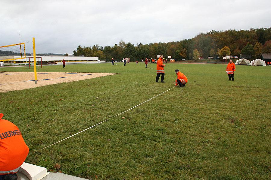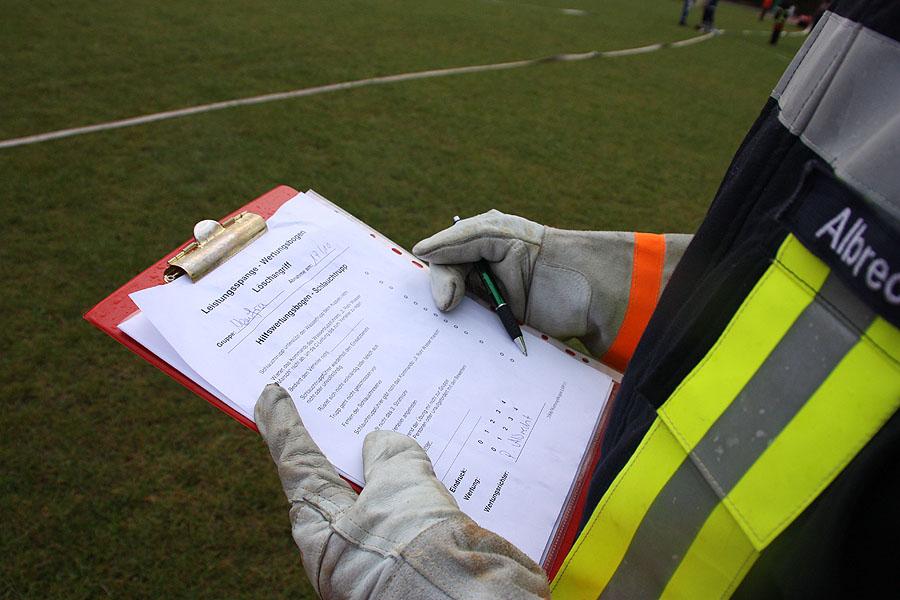 Rund 15 Minuten fühlte sich jede Gruppe wie in der Schule und musste Fragen zu allerlei verschiedenen Themen, wie zum Beispiel Politik, Feuerwehr, Allgemeinbildung und aktuelle Themen, beantworten. Die Königsdisziplin stellt der Löschangriff nach der aktuellen Feuerwehrdienstvorschrift dar. Möglichst ohne Fehler gilt es dabei eine Wasserversorung aufzubauen und von einem offenen Gewässer Wasser zu entnehmen und dieses mittels Verteiler und Schläuchen von drei Stellen an die angenommene Brandstelle zu bringen.