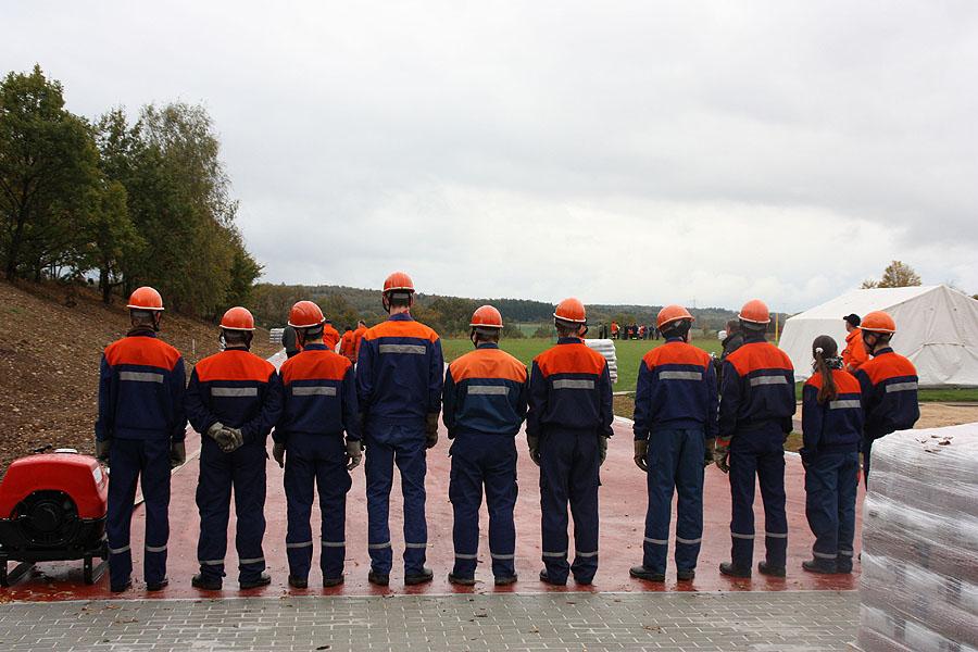Nachdem die Gruppen am Morgen von Kreisjugendfeuerwehrwart Nikolaus Klasan und dem Kommandant der Feuerwehr Osterburken, Peter Schmidt, begrüßt worden waren, ging es an's Eingemachte. Für die je neun Gruppenmitglieder galt es gemeinsam fünf Aufgaben zu erfüllen und dabei auch noch einen guten Eindruck bei den Schiedsrichtern zu hinterlassen.