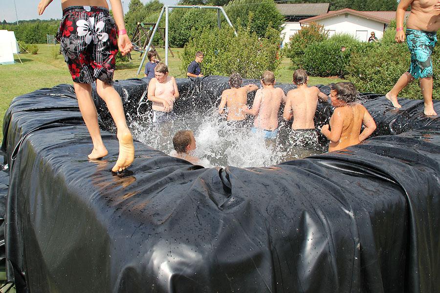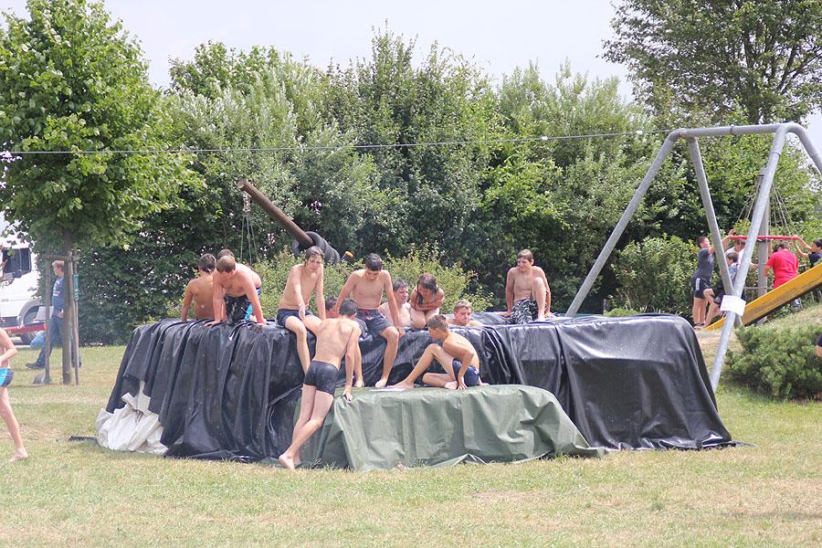 Das bessere Wetter am Samstag und Sonntag ermöglichte es, dass die Jugendlichen, die nach einer Abkühlung suchten, diese im eigens von der Feuerwehr Scheidental aufgebaute Swimming-Pool zu finden. Das Angebot wurde trotz der kühlen Witterung gerne angenommen - auch wenn der eine oder anderen unfreiwillig im Pool landete.