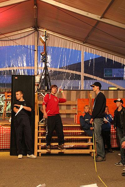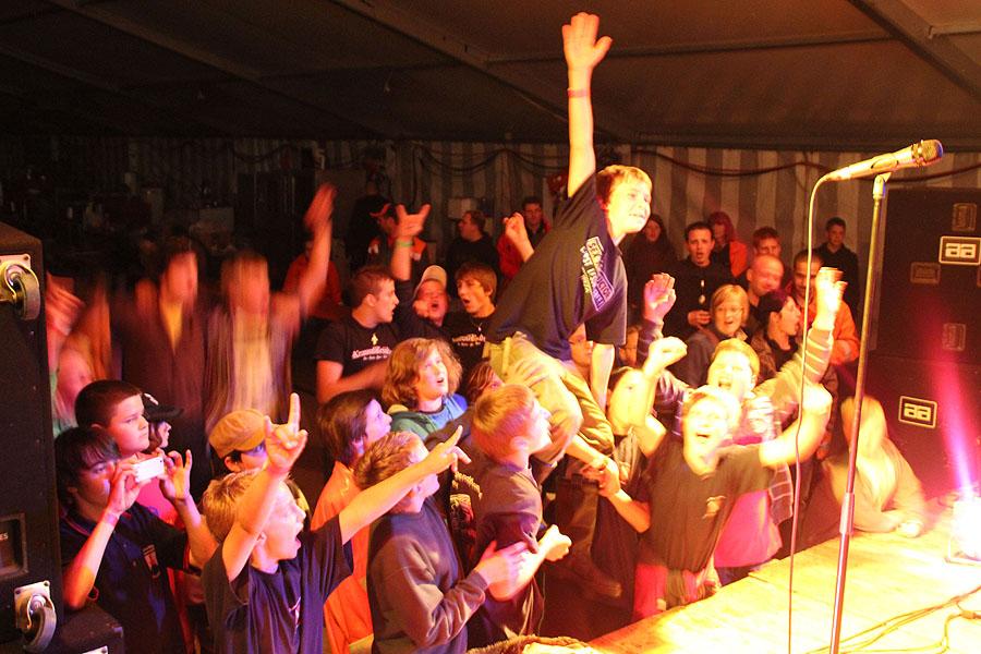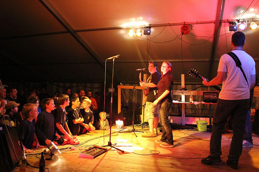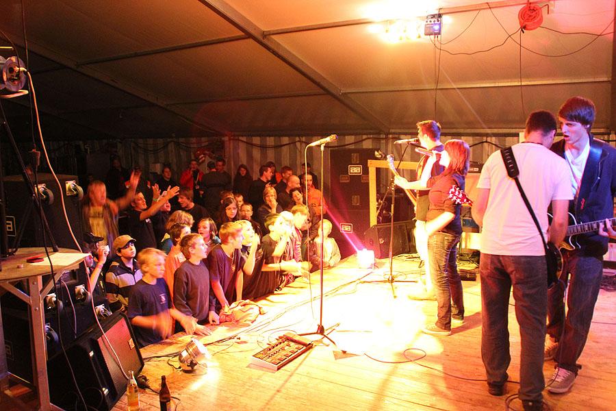 Nach dem Abendessen galt es für die Jugendlichen, den besten Papierflieger zu falten und am weitestens fliegen zu lassen. Die Rock-Band "System Overload" heizte im Anschluss an den Papierflieger-Wettbewerb den Jugendlichen und ihren Betreuern kräftig ein.