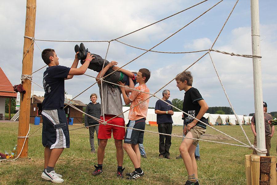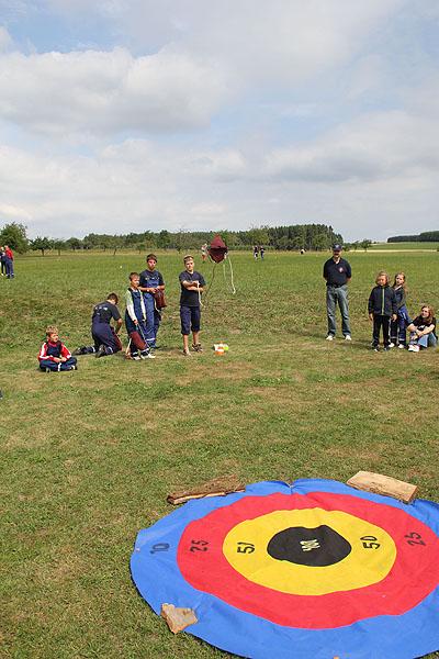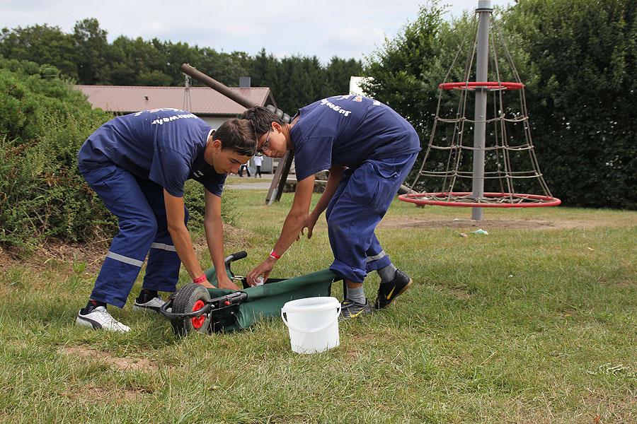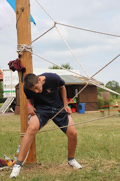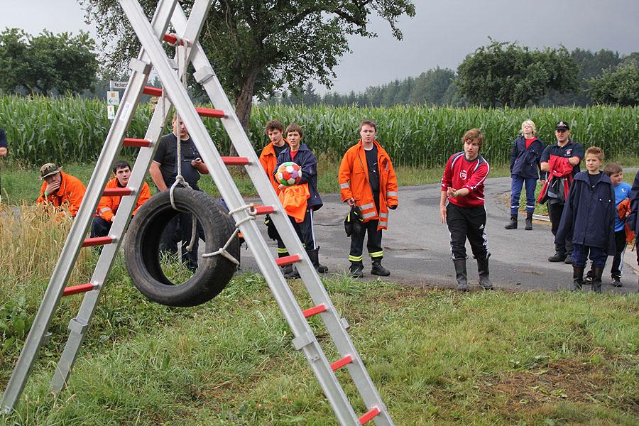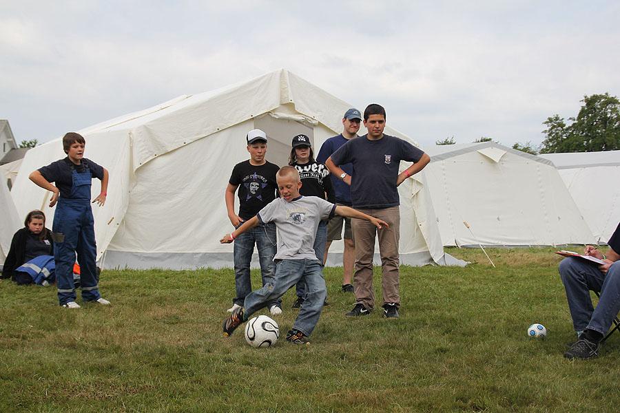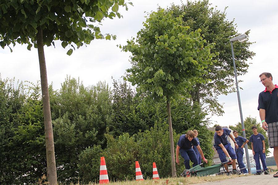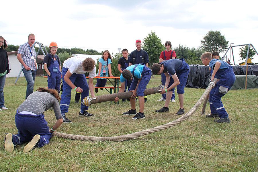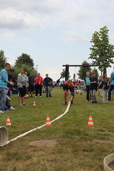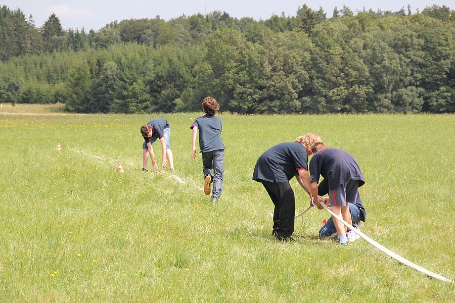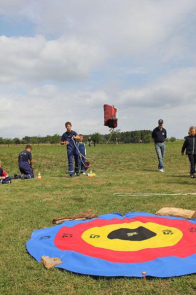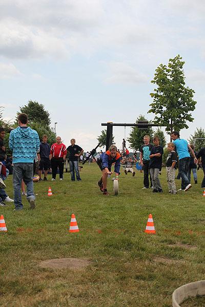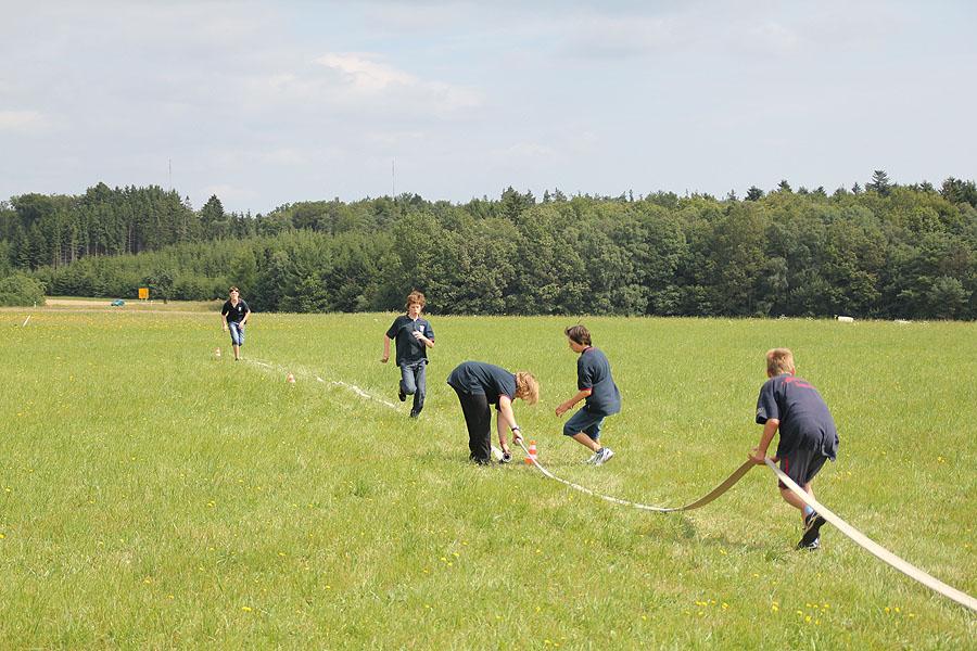 Der Sonntag war der Lagerolympiade vorbehalten, bei der die Jugendlichen aus 25 Ortschaften ihre Geschicklichkeit in verschiedenen Spielen beweisen konnten: beim Saugschlauch-Kuppeln, beim Wassertransport mit einem Schubkarren, beim Leinenbeutelwerfen, beim Torwandschießen, beim Slalom-Parcours, beim Spinnennetz und beim Schläuche ausrollen.