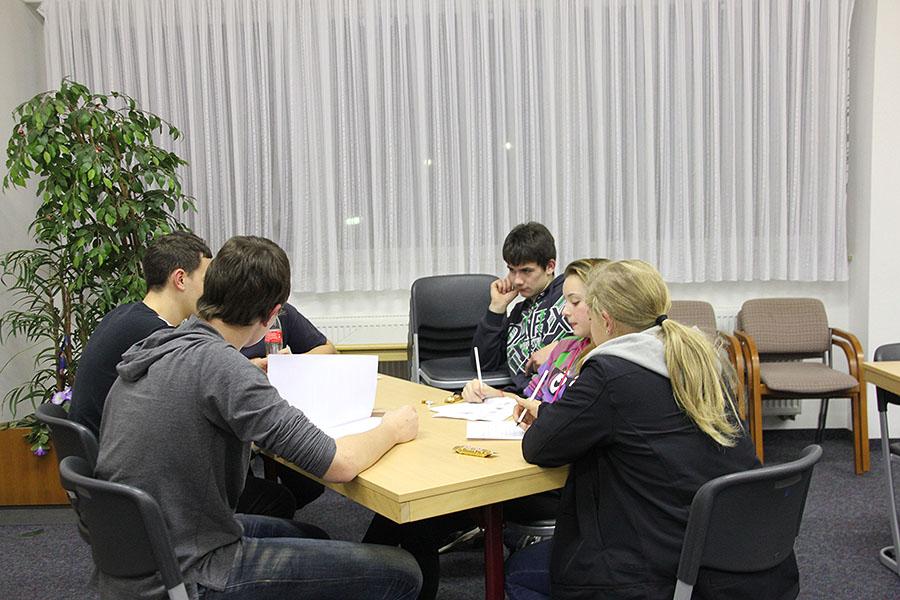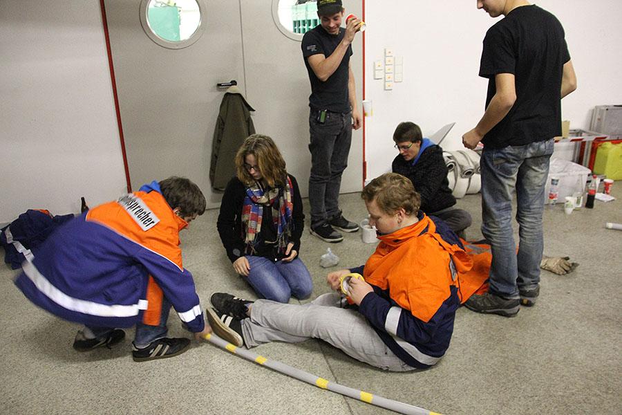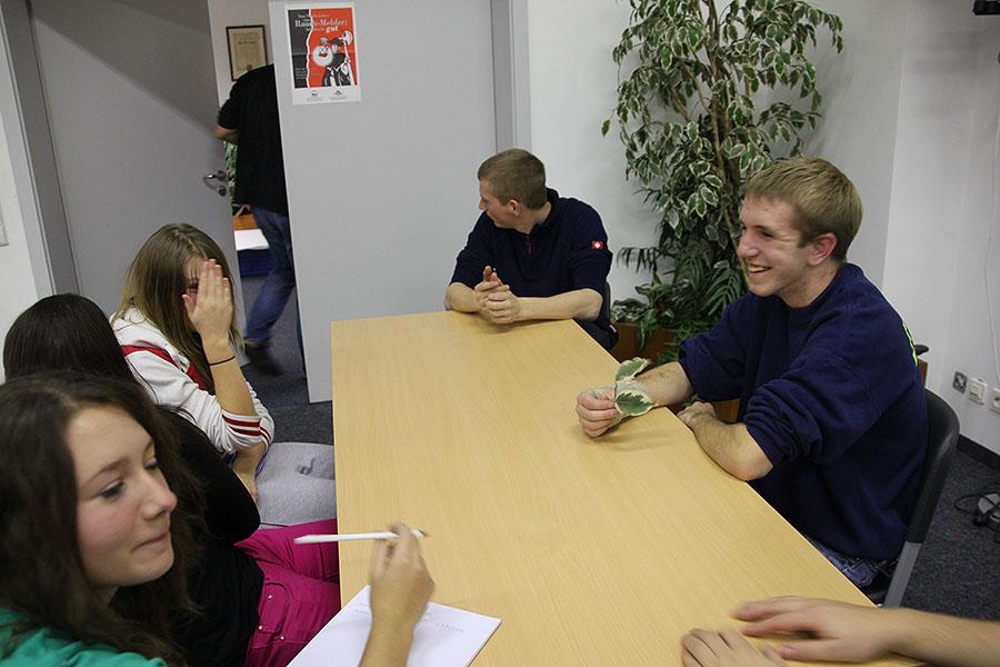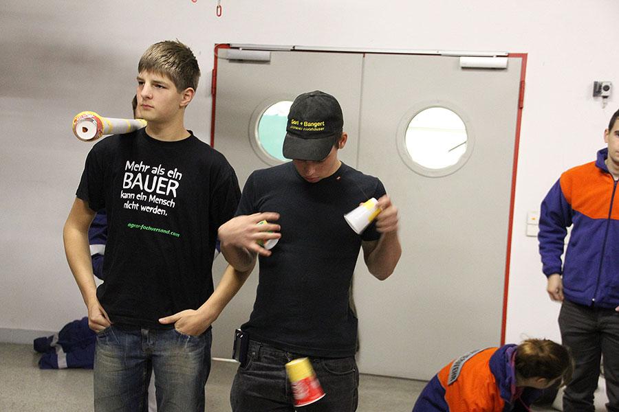 Verschiedene Kennenlern-, Kooperations- und Bewegungsspiele lockerten die Atmosphäre auf. Bei "Catch the Water" konnten die Jugendlichen gemeinsam eine Wassertransportlösung erarbeiten und der Zahnbürstenmörder fand seine Opfer.