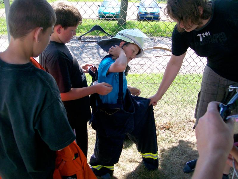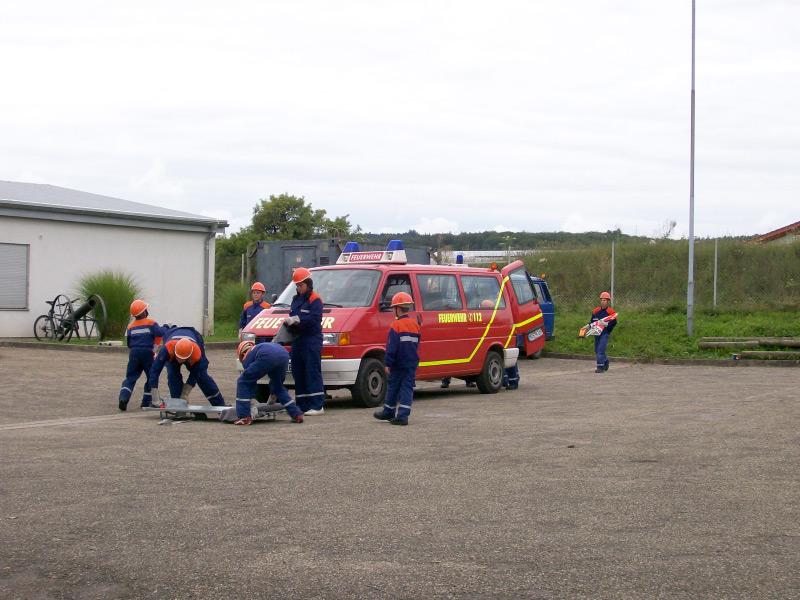 Am nächsten Tag stand die Abnahme der Jugendflamme Stufe 1. an. Mehrere Wochen zuvor wurde schon eifrig darauf hingeübt. Von unseren Betreuern wurden morgens die Stationen aufgebaut. Mittags ging es dann los. Wir traten alle in Uniform an und bekamen noch mal erklärt was alles von uns abverlangt wird. Danach setzten wir uns alle an die Seite des Geländes und warteten bis wir an der Reihe waren. Zur Abnahme kam auch unser Kommandant Dieter Hafner und beobachtete das Geschehen.
