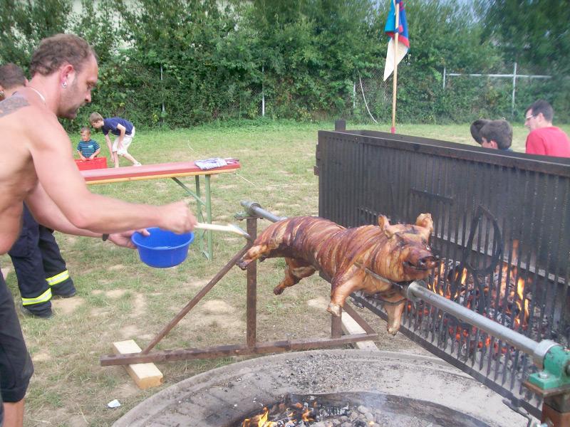 Nach ca. 1,5 Stunden waren alle mit den Aufgaben durch und erleichtert. Nun ging es zum gemütlicheren Teil des Tages über. Schon seit mehreren Stunden wurde das Spanferkel gegrillt und alle freuten sich darauf. Die Vorbereitungen für den Abend liefen auf Hochtouren. Alle Eltern von uns und einige Geladene wurden für die Feier eingeladen.