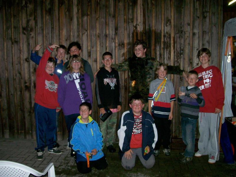 Am späten Abend bekamen wir dann unerwünschten Besuch. Als der Jugendraum Reichenbuch unseren Wimpel stehlen wollte. Dies gelang ihnen auch. Einer der Jugendlichen klaute den Wimpel und warf ihn über den Zaun. Sofort rannten alle hinterher. Leider konnten wir den Wimpel nicht zurückerobern, jedoch konnten wir einen anderen Jugendlichen als Geisel nehmen. Der Gefangene wurde von ums an das Tor genagelt und dann ein bisschen mit Wasser gequält. Unseren Gefangen wurde dann anschließend gegen den Wimpel getauscht.