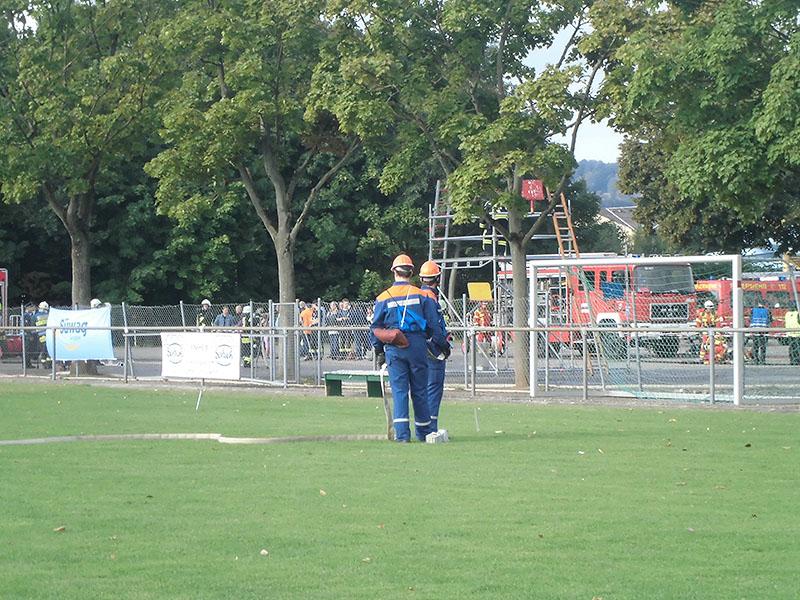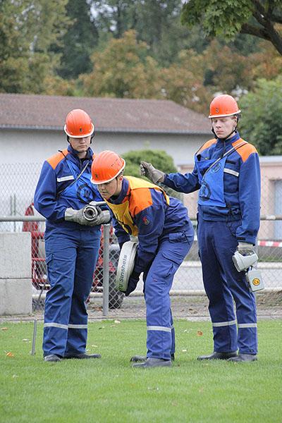 Unter den Augen des Abnahmeberechtigten der Deutschen Jugendfeuerwehr, Ralf Tiemann und Wolfgang Eberle und den Schiedsrichtern galt es die fünf Aufgaben der Jugendleistungsspange zu erfüllen. Nachdem die Gruppen am Morgen von Kreisjugendfeuerwehrwart Gregor Wipfler (Rhein-Neckar-Kreis) begrüßt worden waren, ging es an's Eingemachte. Für die je neun Gruppenmitglieder galt es gemeinsam fünf Aufgaben zu erfüllen und dabei auch noch einen guten Eindruck bei den Schiedsrichtern zu hinterlassen.