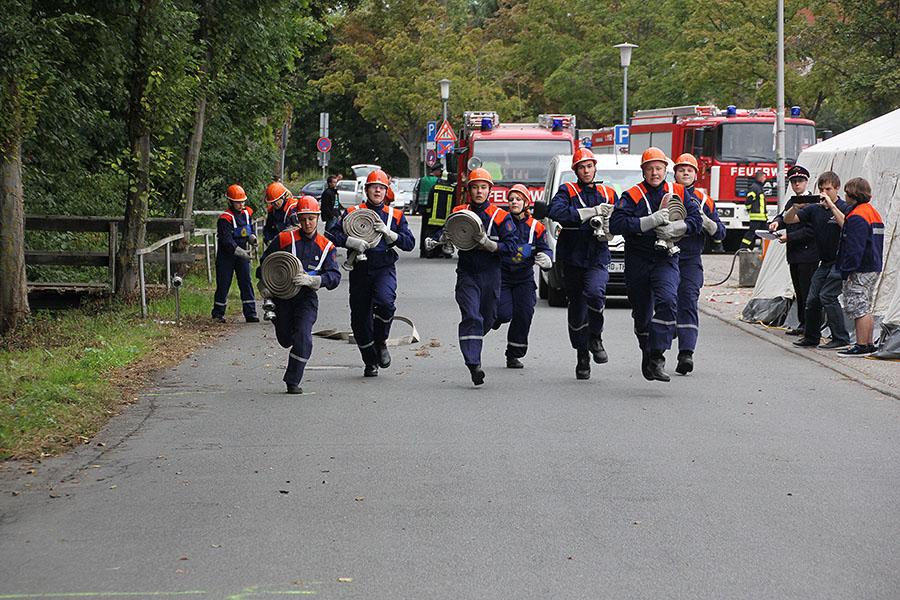 Bei der sicherlich schwierigsten Aufgabe, der Schnelligkeitsübung, geht es darum, zu neunt acht Schläuche von je 15 m Länge in weniger als 75 Sekunden ohne Verdrehung der Schlauchleitung zu verlegen. Der zweite sportliche Teil besteht aus einem Staffellauf über 1500 m, bei dem es den Jugendlichen freigestellt ist, wer wie weit läuft. Wichtig ist nur, dass das Staffelholz spätestens nach 4:10 min die Ziellinie passiert hat.