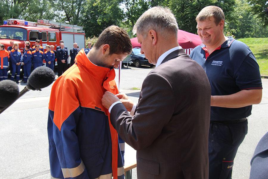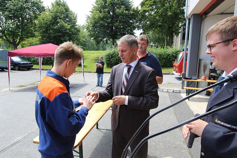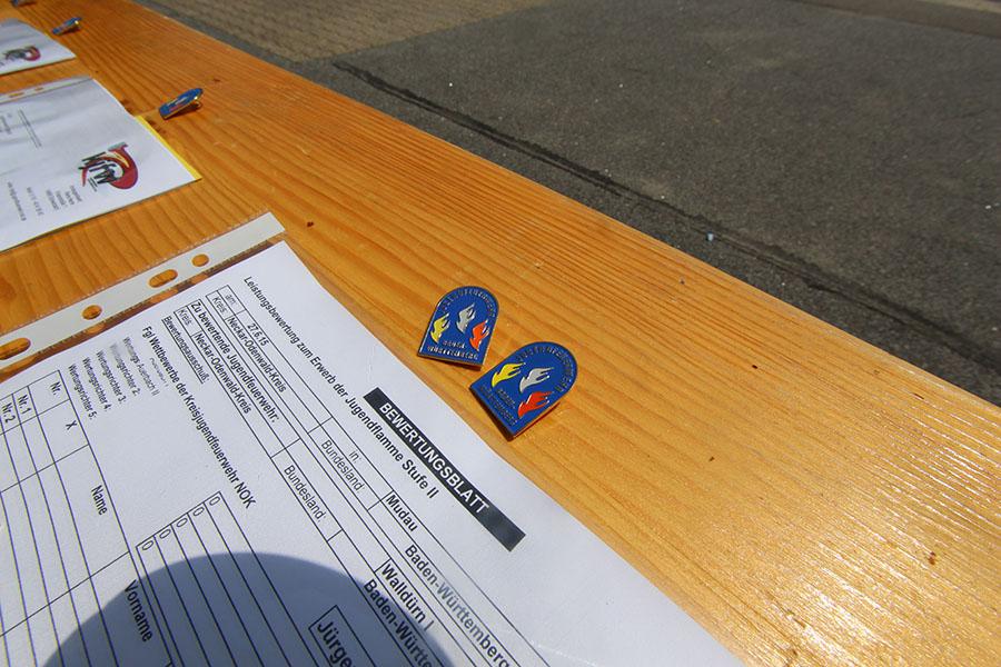 Mudau/Neckar-Odenwald-Kreis. 90 Jugendflammen der Stufe 2 konnten Kreisjugendwart Pierre Herre und Bürgermeister Dr. Norbert Rippberger den Jugendfeuerwehrlern am Samstag, 27.06., am Feuerwehrgerätehaus in Mudau überreichen.