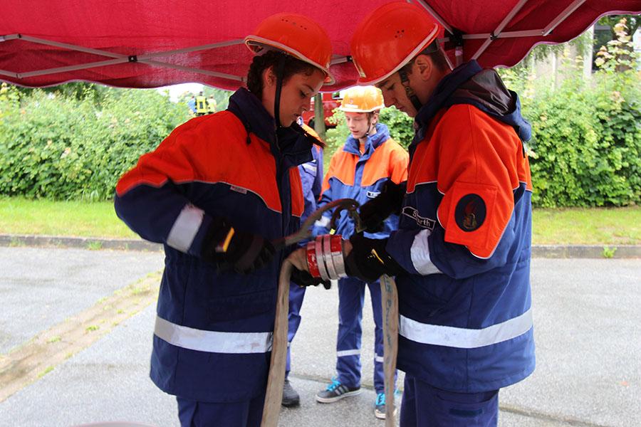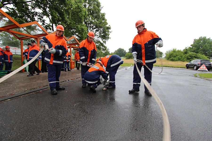 Die Jugendflamme ist das Stufen-Programm der Deutschen Jugendfeuerwehr und besteht aus drei verschiedenen Stufen. In Stufe zwei gilt es, in Fünfer-Gruppen einen Verkehrsunfall abzusichern, ein Standrohr zu setzen, zwei B-Schläuche mittels Kupplungsschlüssel zu kuppeln, den Fahrzeuginhalt seines Fahrzeugs zu kennen, einen improvisierten Wasserwerfer aufzubauen, einen Staffellauf über 400 m und ein feuerwehrtechnisches Spiel zu meistern.