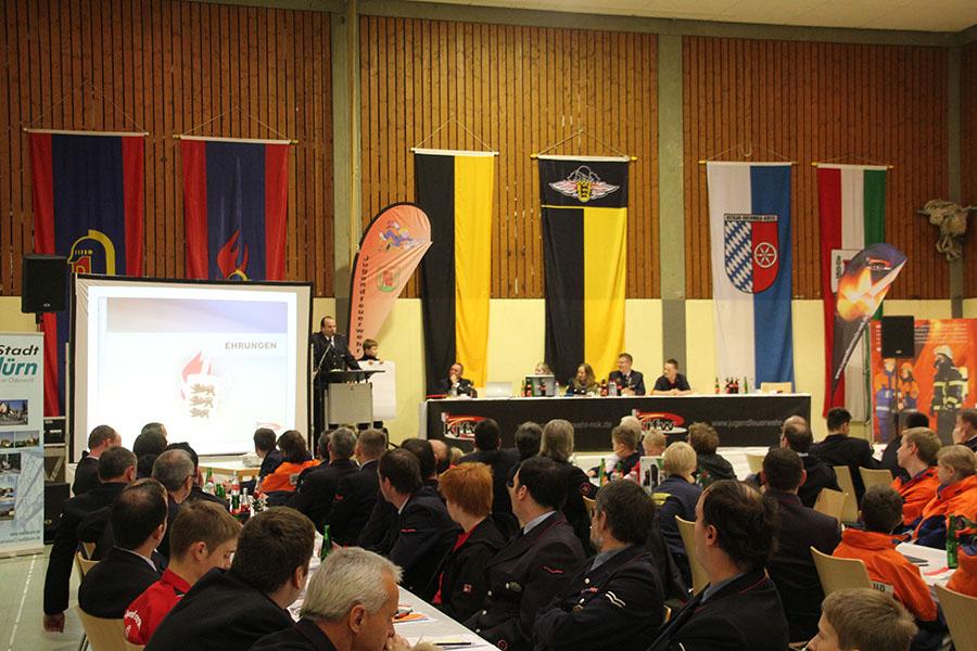 Bürgermeister Markus Günther freute sich in seinem Grußwort, dass die Jahreshauptversammlung der Jugendfeuerwehren in Walldürn stattfindet und wünschte der Versammlung einen guten Verlauf.