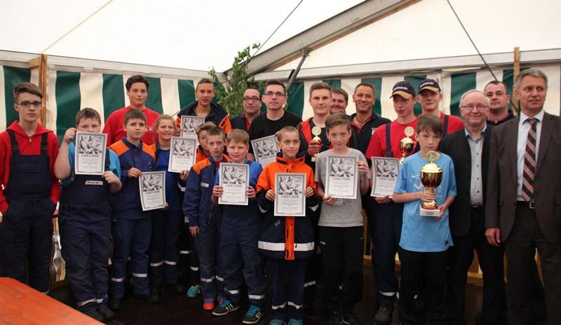 45 Jugendliche aus Baden, Bayern und Hessen hatten aufgeteilt in neun Mannschaften an neun Stationen mit feuerwehrtechnischen Übungen und mittels eines Fragebogens ihr Können unter Beweis gestellt und wurden mit Urkunden und Pokalen belohnt. Bürgermeister Dr. Rippberger hob zur Prämierung die hervorragenden Leistungen des Feuerwehrnachwuchses hervor.