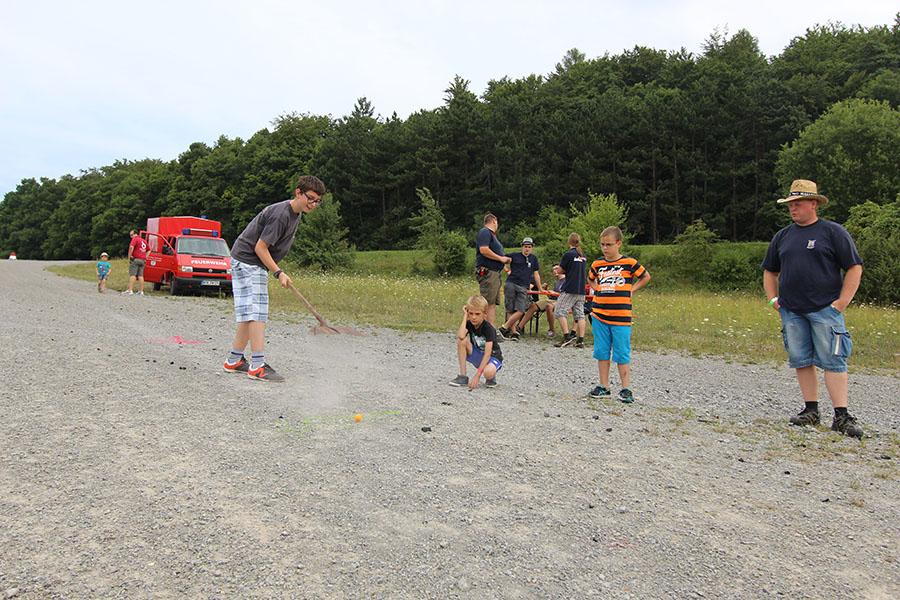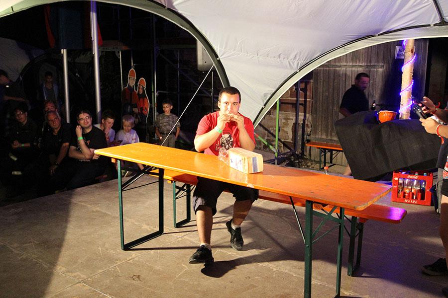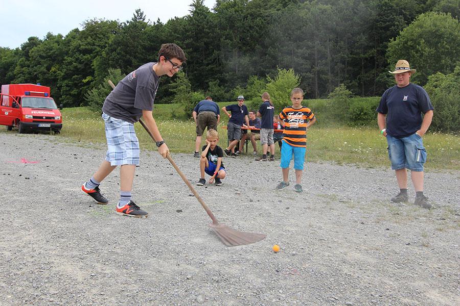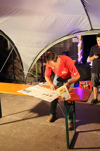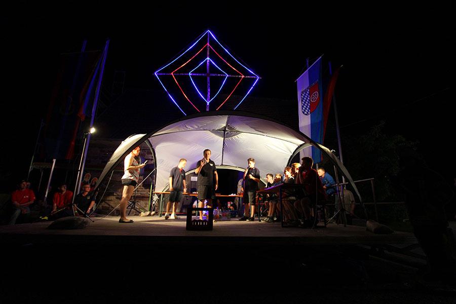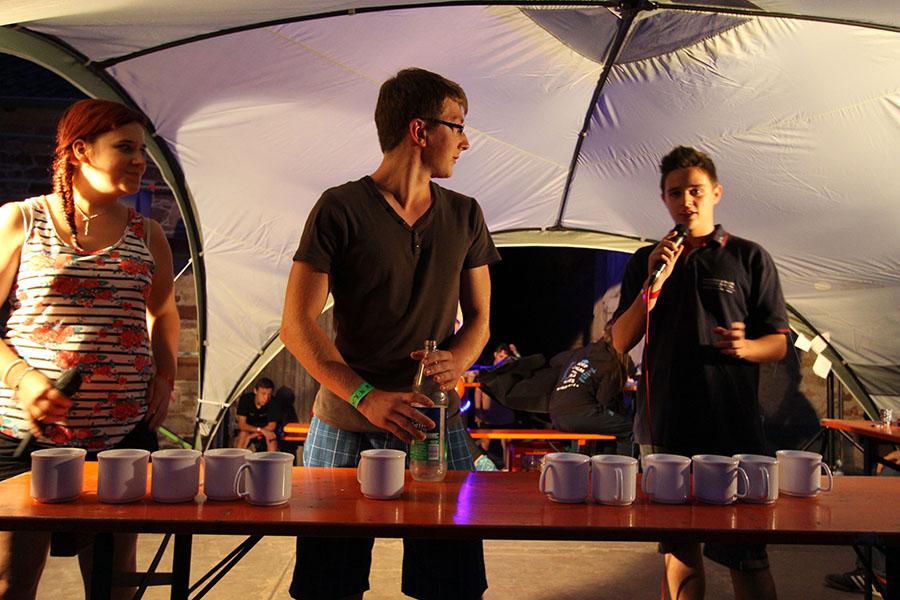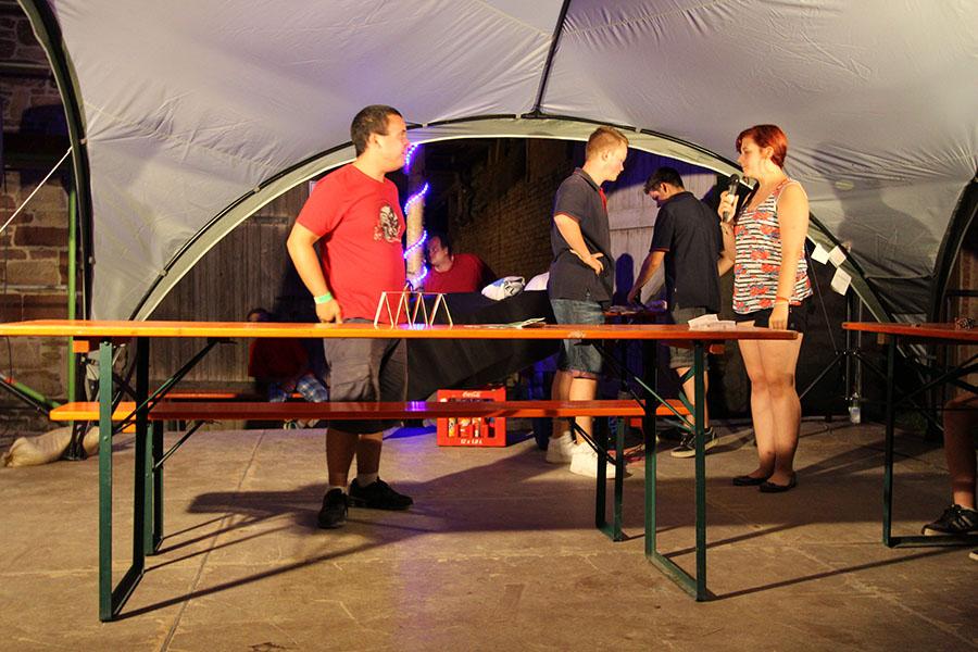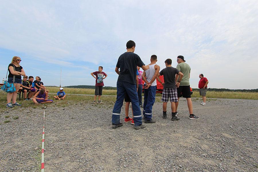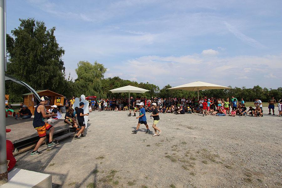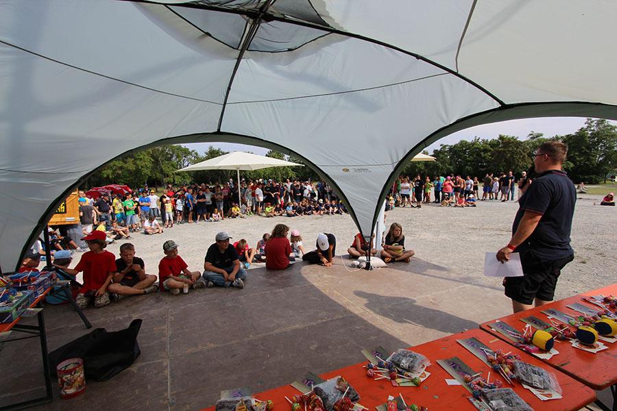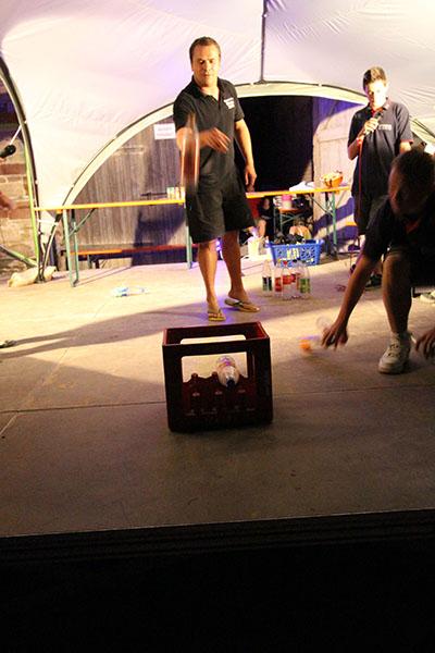 Anschließend übernahmen die Jugendsprecher der Feuerwehren das Ruder und unterhielten die Zeltlager-Teilnehmer mit „Mein Betreuer kann“, einer Abwandlung der Fernseh-Show „Mein Mann kann“. Nach insgesamt 16 knackigen Spielen konnte der Betreuer der Jugendfeuerwehr Donebach-Mörschenhardt ganz knapp das Finale für sich entscheiden.