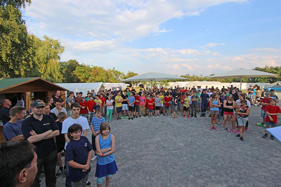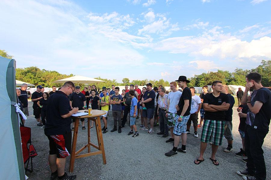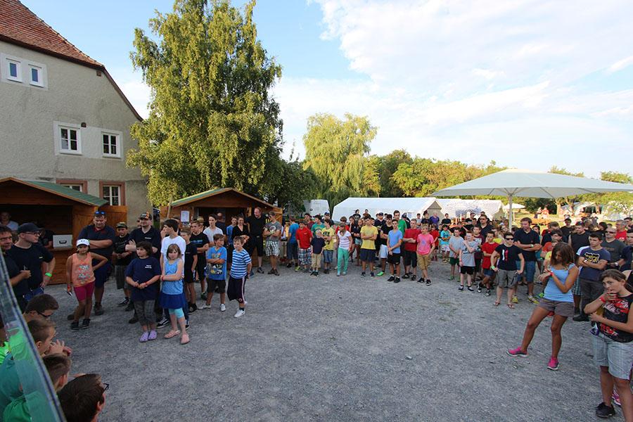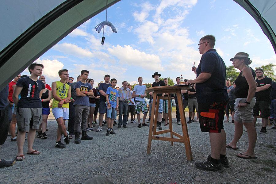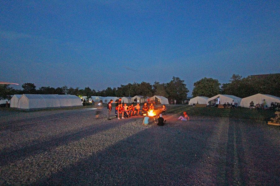 Mit 355 Teilnehmern ist das diesjährige Zeltlager der Jugendfeuerwehren eines der größten in den letzten 37 Jahren. Am Donnerstag reisten die ersten Jugendfeuerwehren zum Zeltaufbau an und lernten den Zeltplatz kennen. Nach der eigentlichen Anreise am Freitag und dem Einrichten der Zelte begrüßten Kreisjugendwart Pierre Herre und Kommandant Martin Kaiser, Hardheim, die Teilnehmer aus 27 Ortschaften im Neckar-Odenwald-Kreis und aus Heilbronn auf dem Übungsplatz in Wolferstetten. Nach dem Abendessen spielte die Band ATP für die Zeltlager-Teilnehmer.