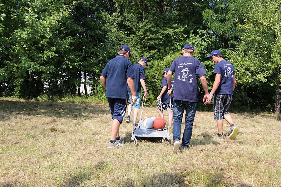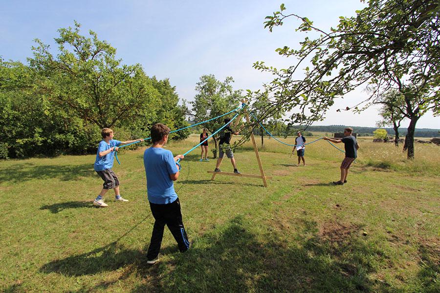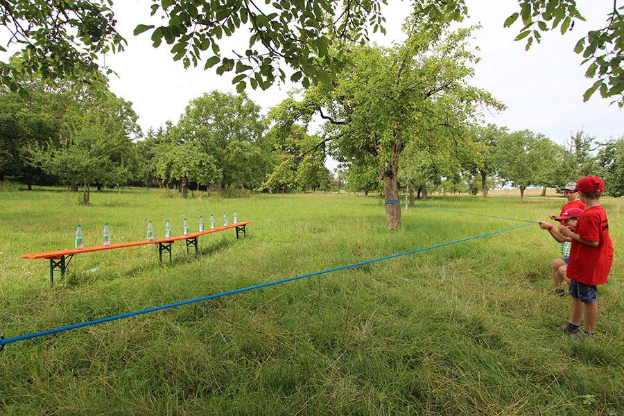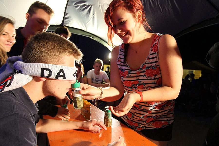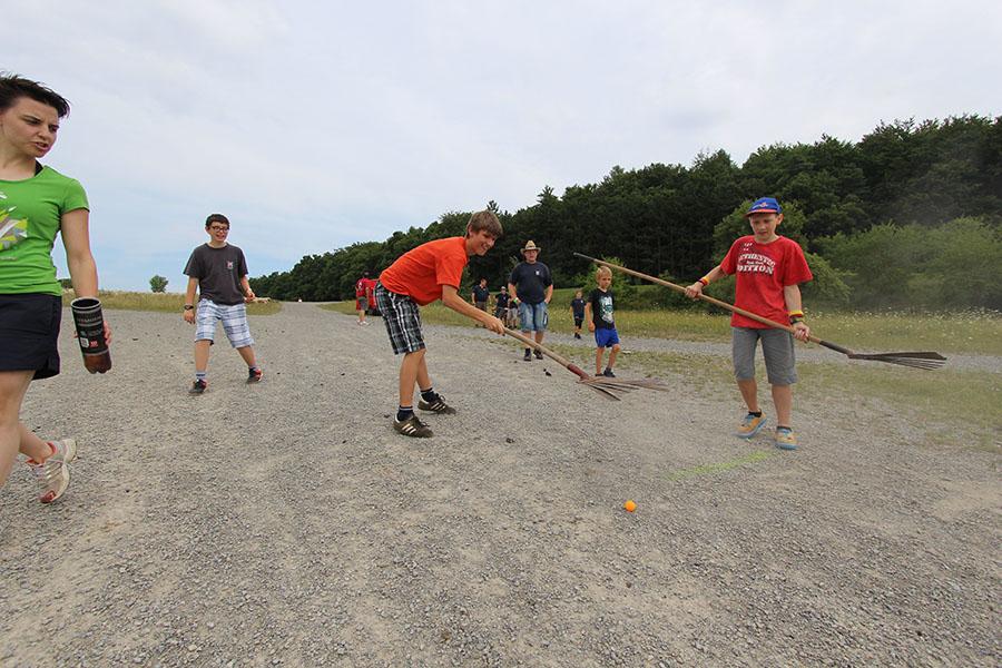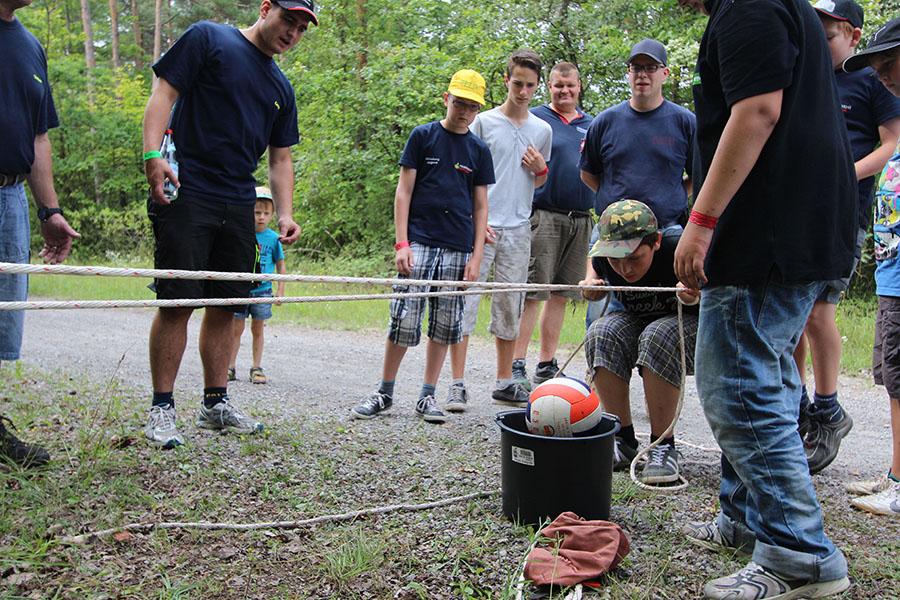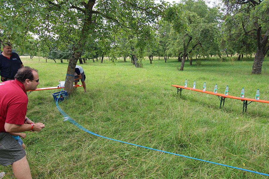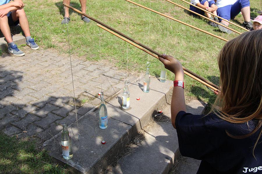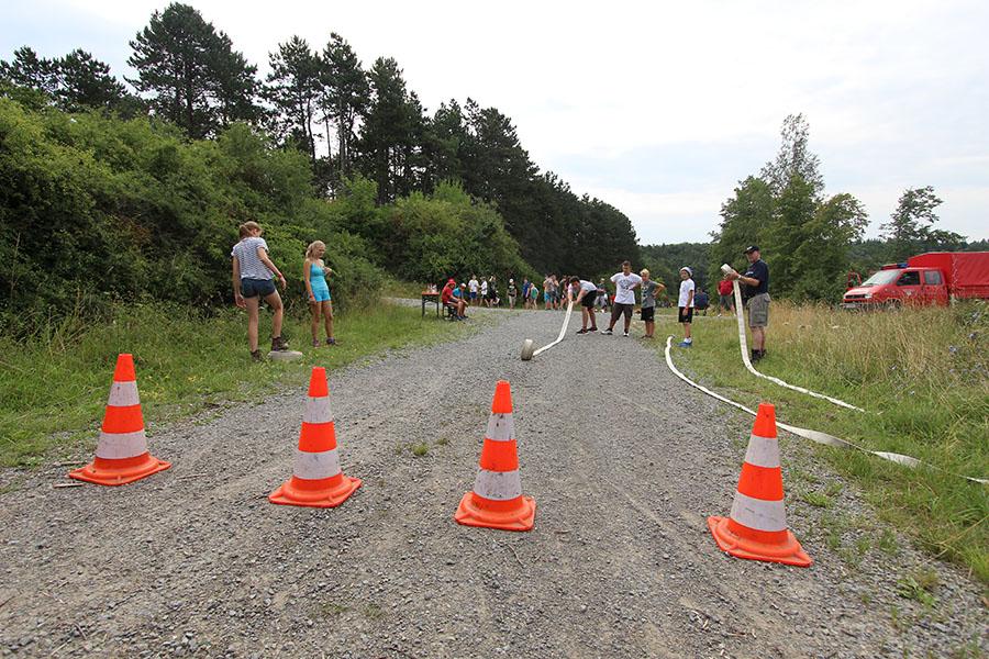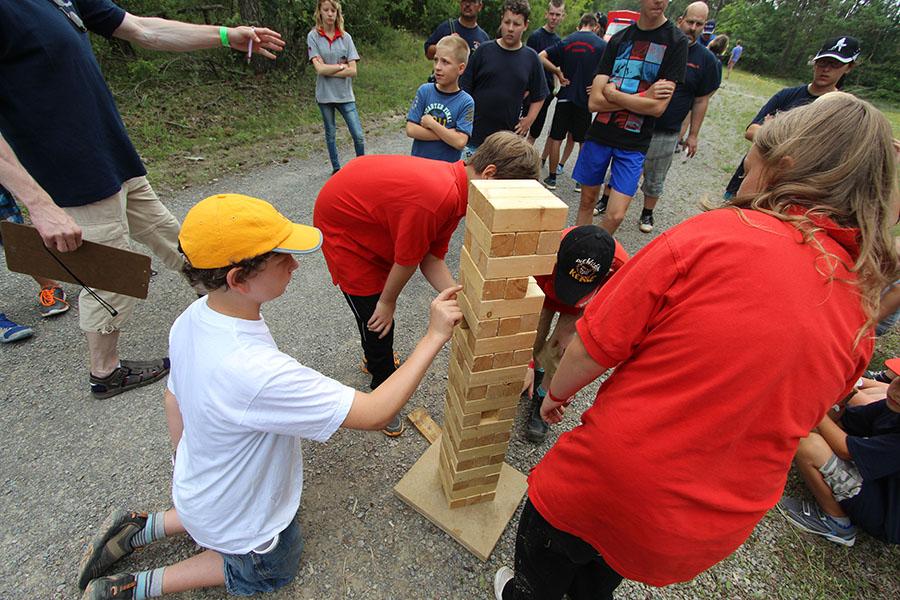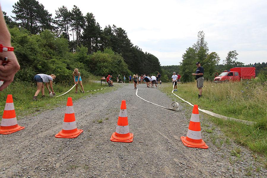 Der Sonntag gehörte - nur unterbrochen durch das Mittagessen - der Lagerolympiade, bei der die Jugendlichen an insgesamt neun Spielstationen ihr Können unter Beweis stellen mussten. Dazu musste Wasser durch Dachrinnen und mit Schwämmen transportiert werden, Armaturen zusammen gepuzzelt, Tennis-Bälle gesucht, mit einem "A" gelaufen, Bälle auf einer Krankentrage balanciert, Luftballons durch einen Verteiler aufgeblasen und „Flaschen geangelt“ werden.