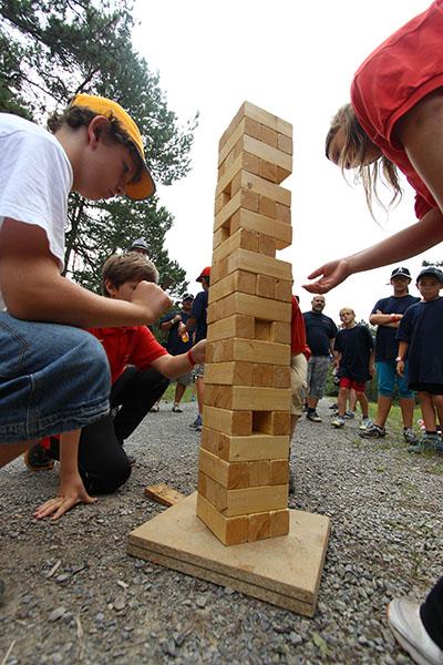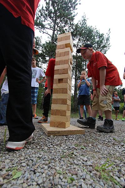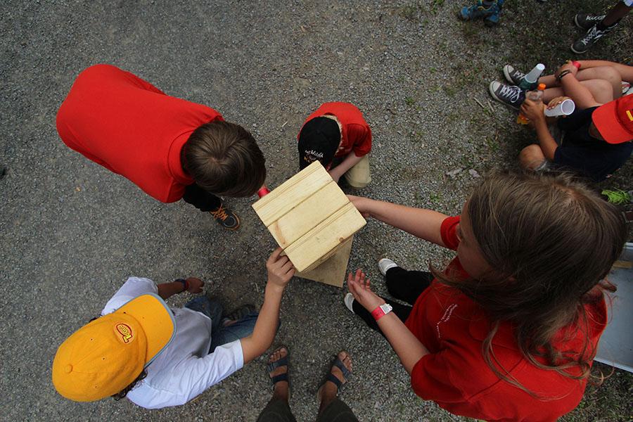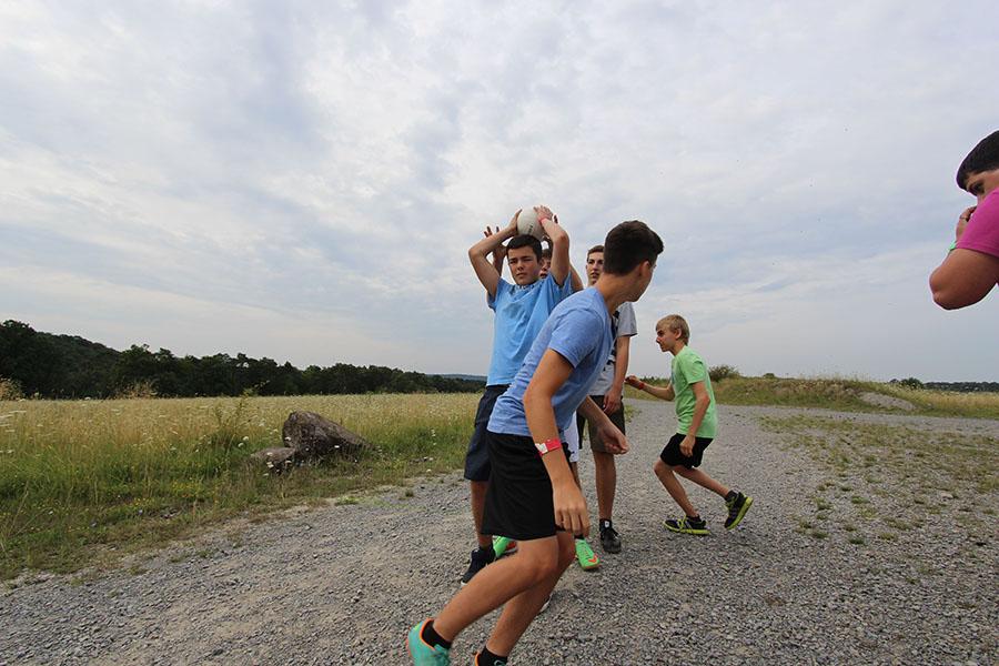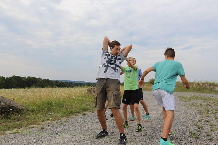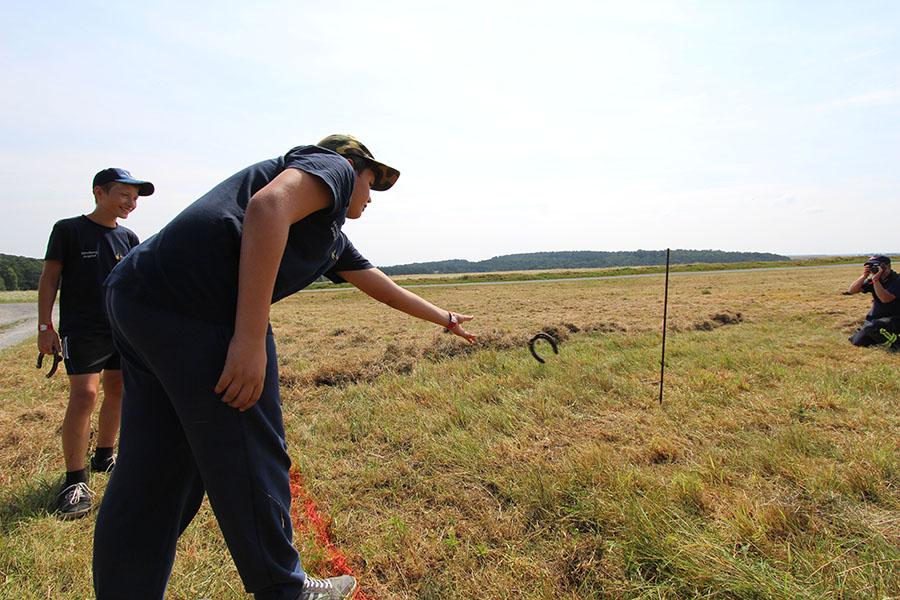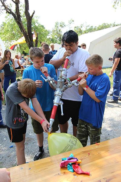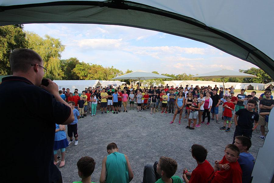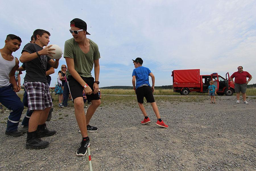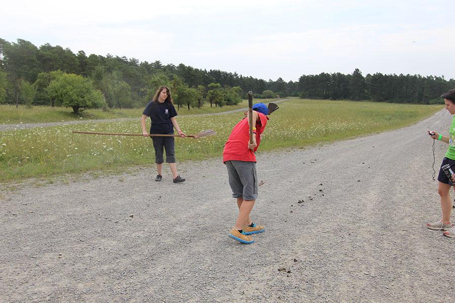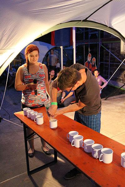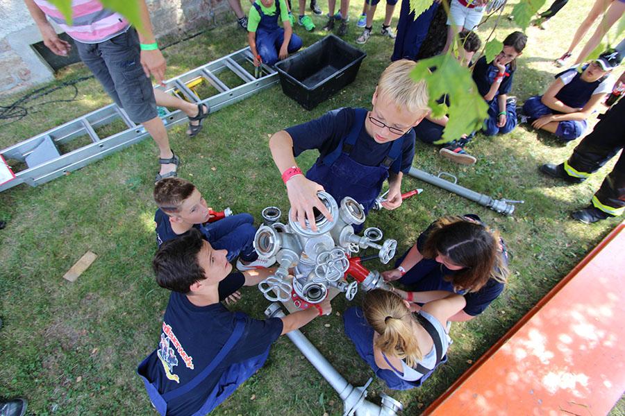Der Sonntag gehörte - nur unterbrochen durch das Mittagessen - der Lagerolympiade, bei der die Jugendlichen an insgesamt neun Spielstationen ihr Können unter Beweis stellen mussten. Dazu musste Wasser durch Dachrinnen und mit Schwämmen transportiert werden, Armaturen zusammen gepuzzelt, Tennis-Bälle gesucht, mit einem "A" gelaufen, Bälle auf einer Krankentrage balanciert, Luftballons durch einen Verteiler aufgeblasen und „Flaschen geangelt“ werden.