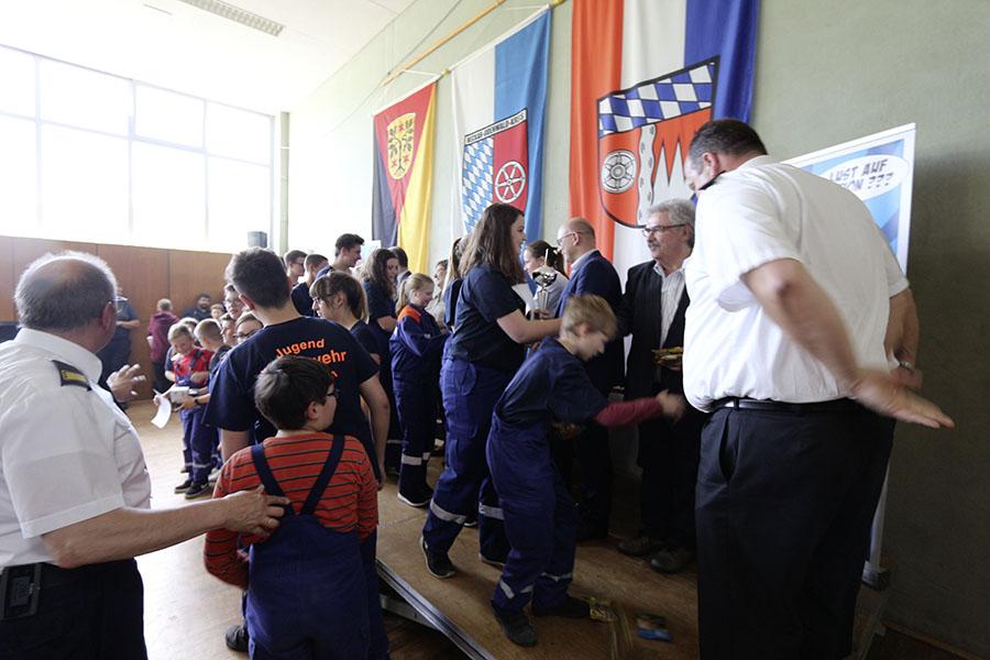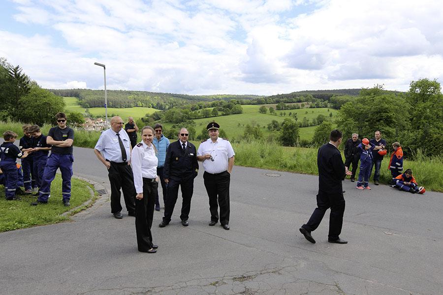 Bevor Kreisjugendwart Dominic Groh im Namen seiner Amtskollegen die Spannung, wer nun gewonnen hat, auflösen konnte, überraschten der Bürgermeister der Stadt Michelstadt, Stephan Kelbert, und der Landrat des Odenwaldkreises, Frank Matiaske, Kreisbrandinspektor Horst Friedrich und Stadtbrandinspektor der Stadt Michelstadt, Gerd Beller, die Jugendfeuerwehr Weiten-Gesäß mit Urkunden und Geschenken zum 25-jährigen Jubiläum der Jugendfeuerwehr. Matiaske machte sich bei den Jugendlichen sehr beliebt, in dem er die Grußworte seiner Amtskollegen und der anwesenden Bundestagsabgeordneten gleich mit überbrachte.