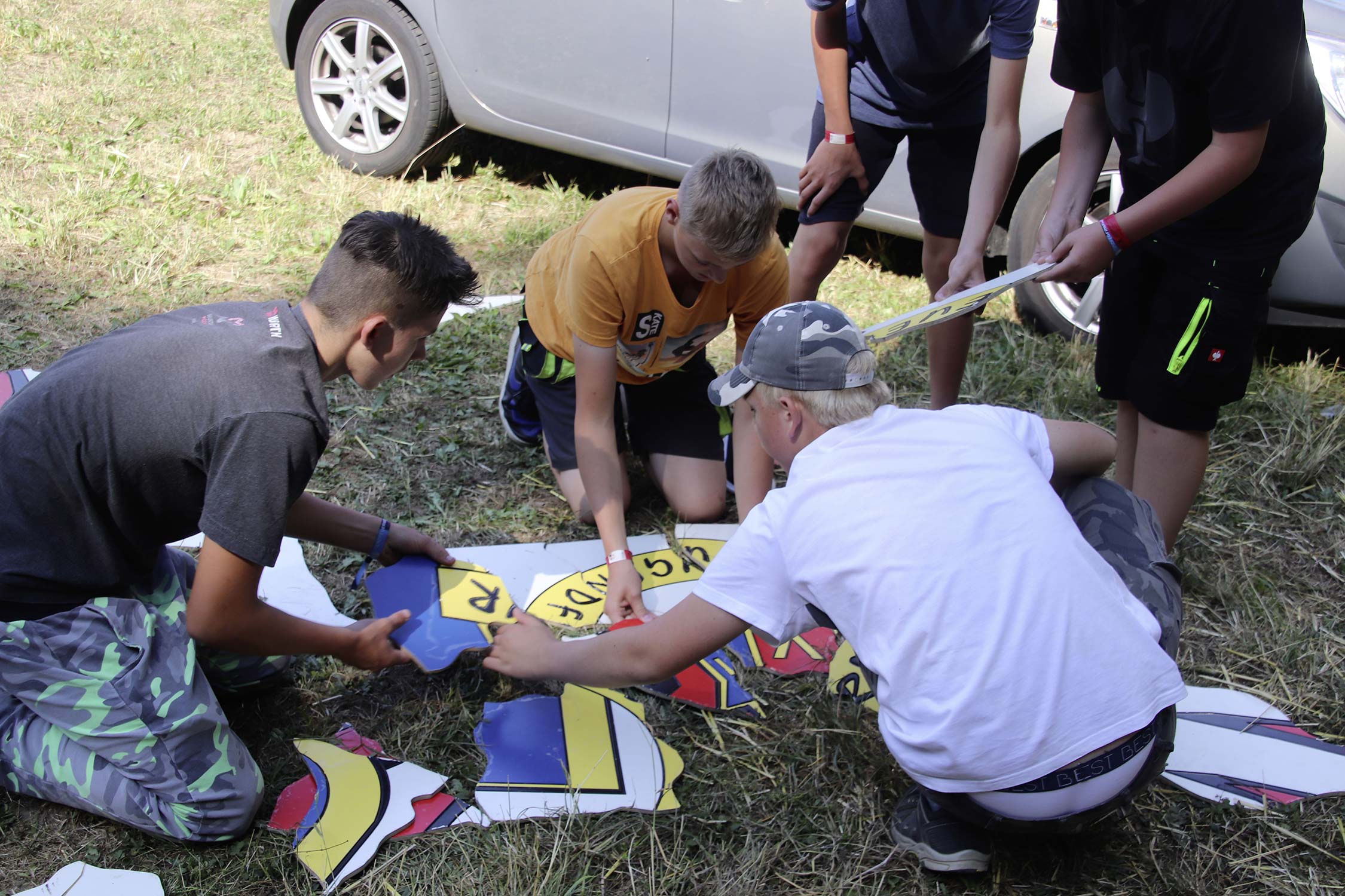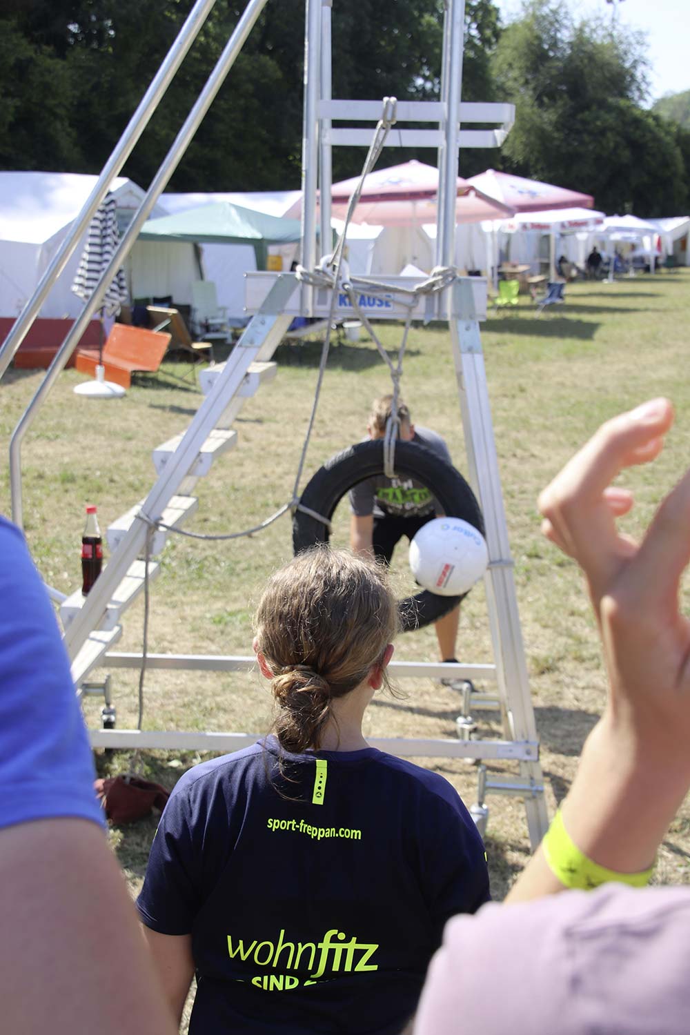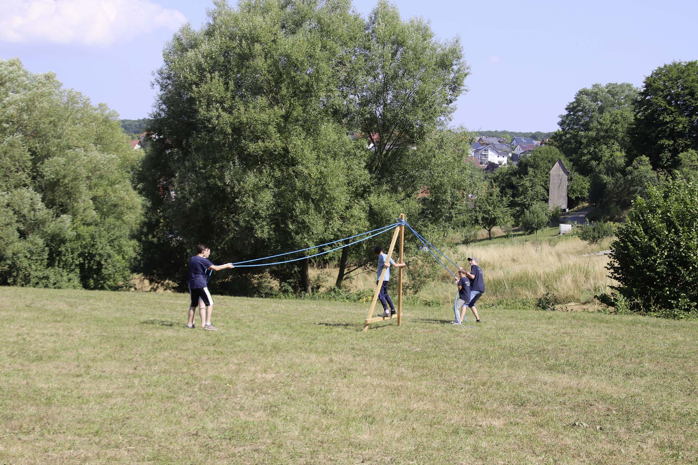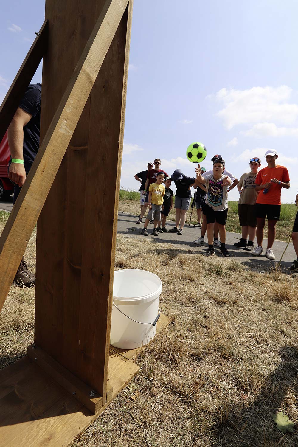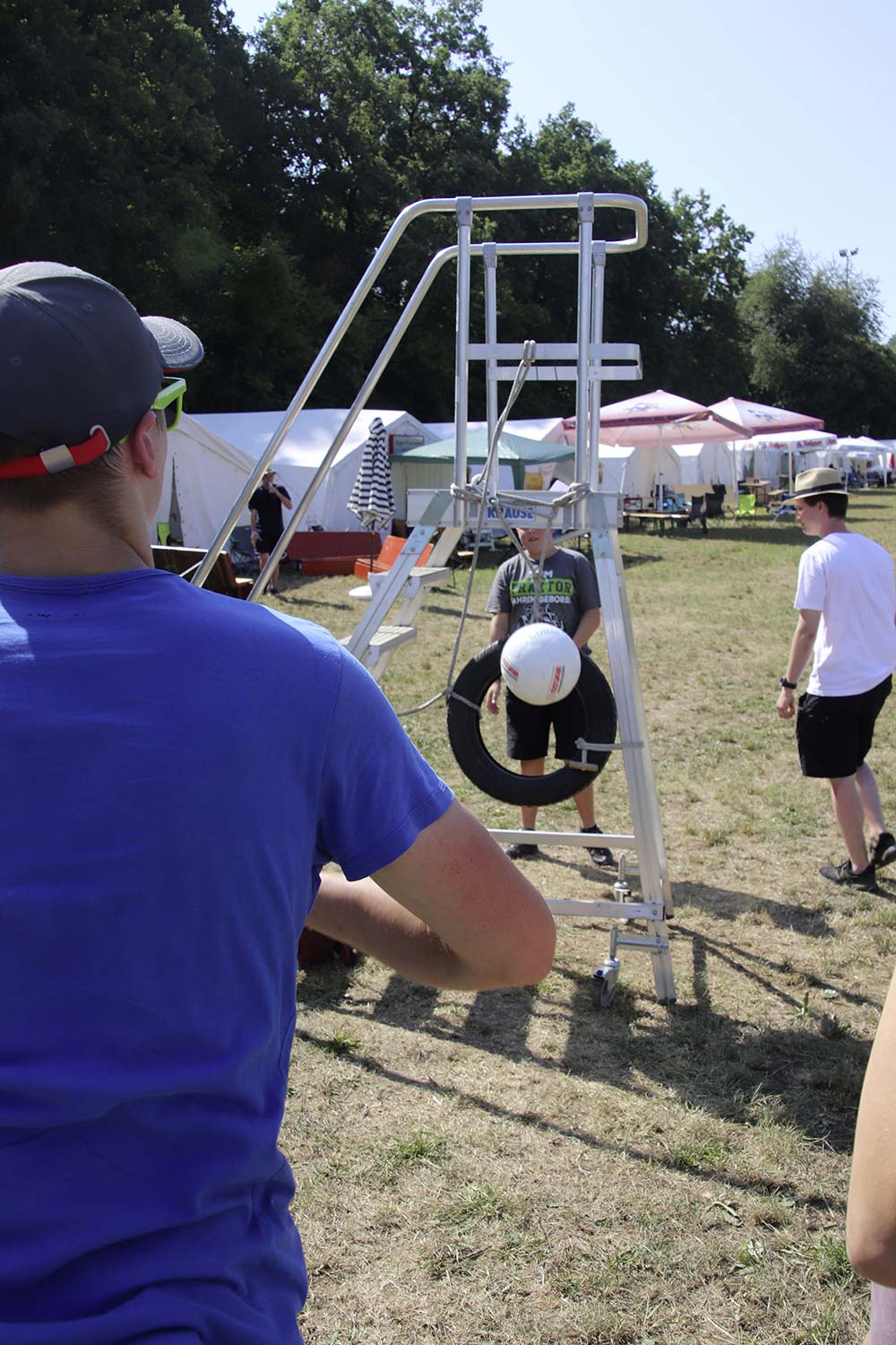 Am Samstag startete nach dem Frühstück die traditionelle Erlebniswanderung rund um Auerbach mit verschiedenen Spielstationen: Wassertransport mit dem Schwamm, Ball über Schnur, Beanbag-Zielwerfen, Eierlaufen, dem Schrauben-und-Muttern-Spiel, Flaschen schießen, Ball in Eimer und Tennisgolf. Nach der Rückkehr und dem Mittagessen stand ein Kooperationsspiel für alle Zeltlager-Teilnehmer auf dem Programm. Das vermeintliche Spiel entpuppte sich schnell als Wasserüberraschung aus dem Tanklöschfahrzeug der Feuerwehr Limbach. Als Dank wurde nicht nur der Moderator des Spiels im Wasserregen oder im Pool, den die Jugendfeuerwehr Auerbach auf dem Platz eingerichtet hatte, pitschnass. Nachhaltige Wasserbomben komplettierten die spaßige Wasserschlacht bei tropischen Temperaturen.