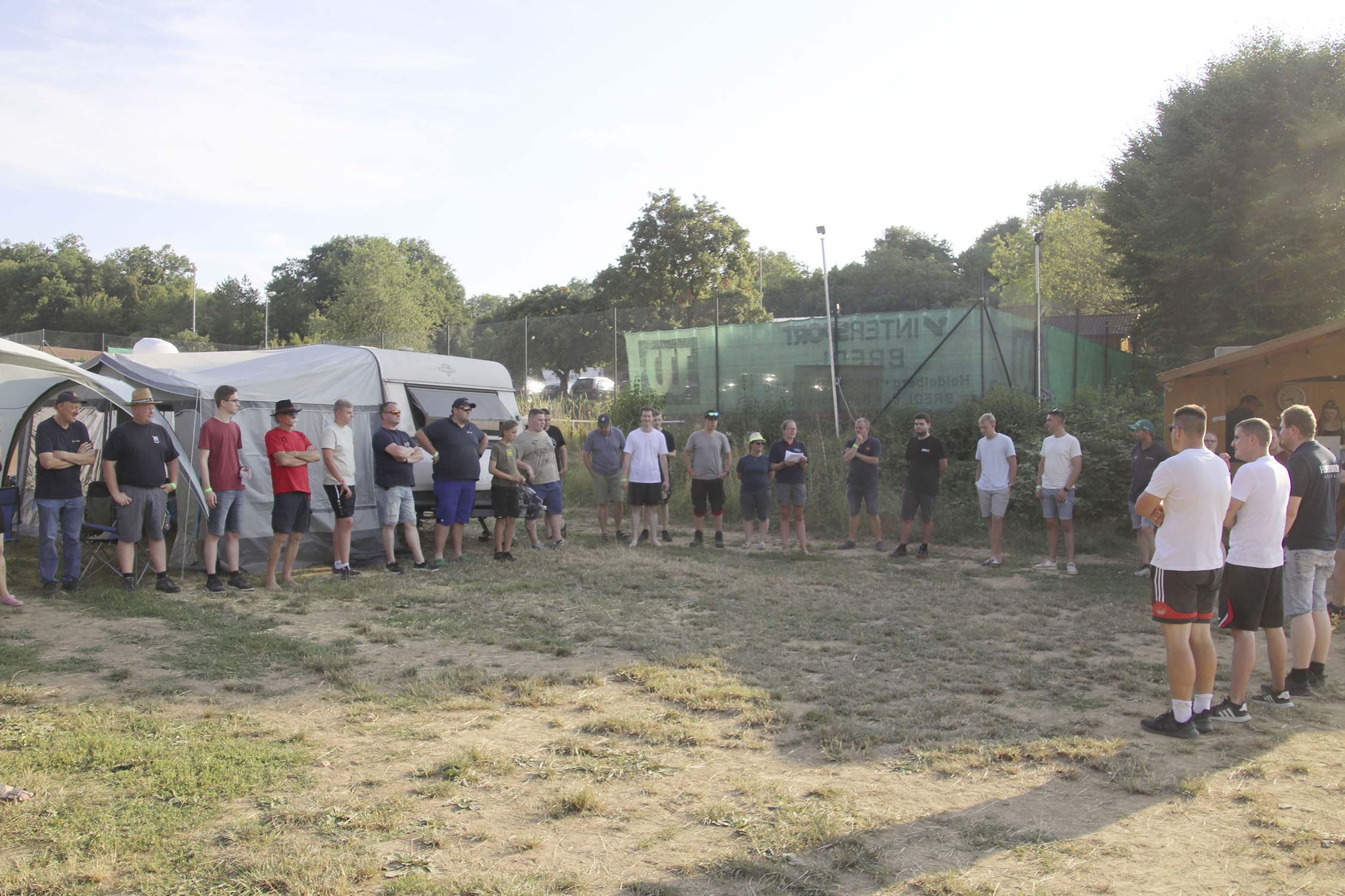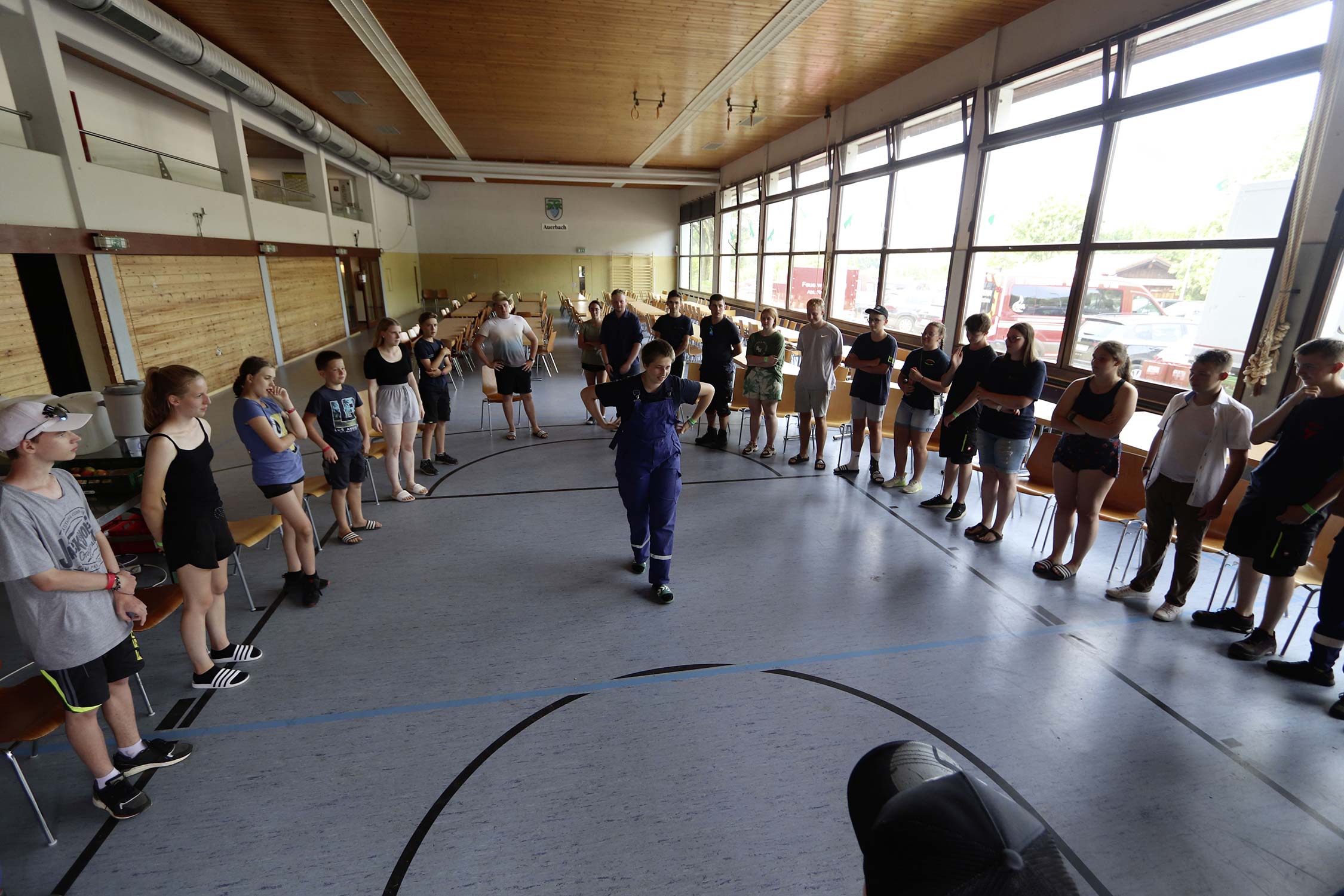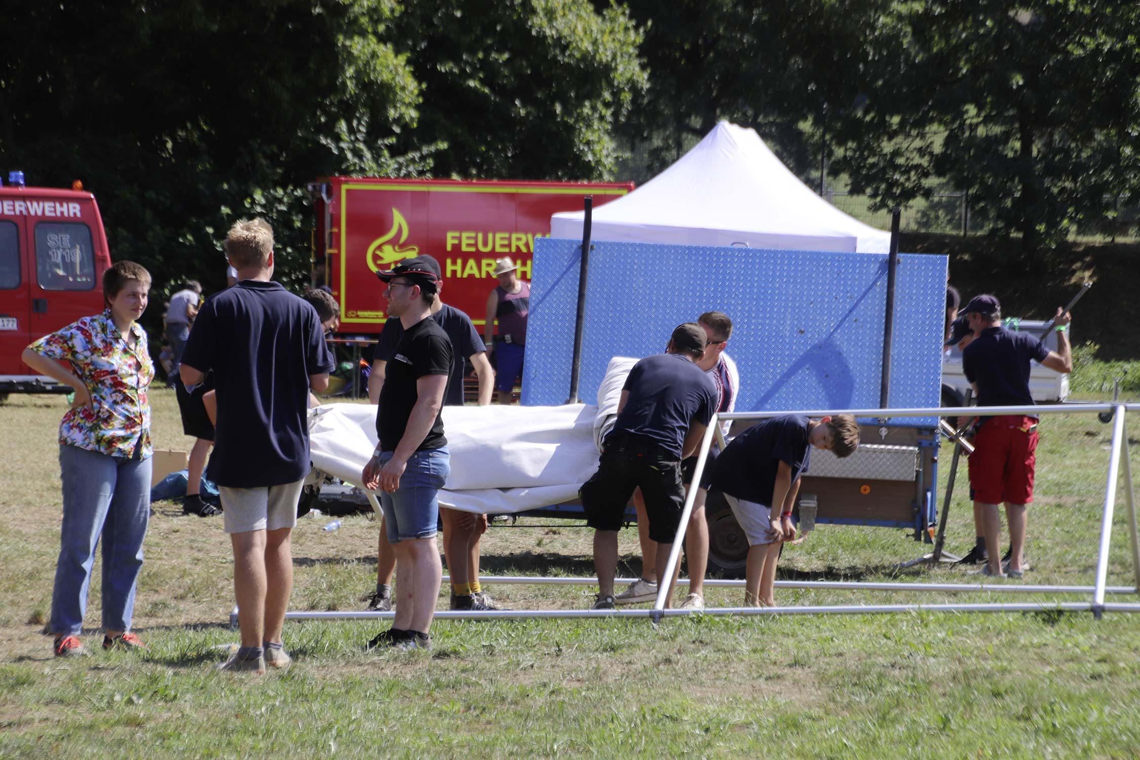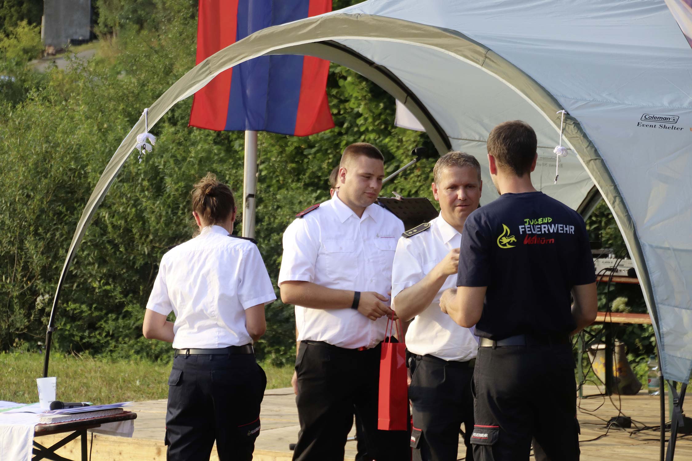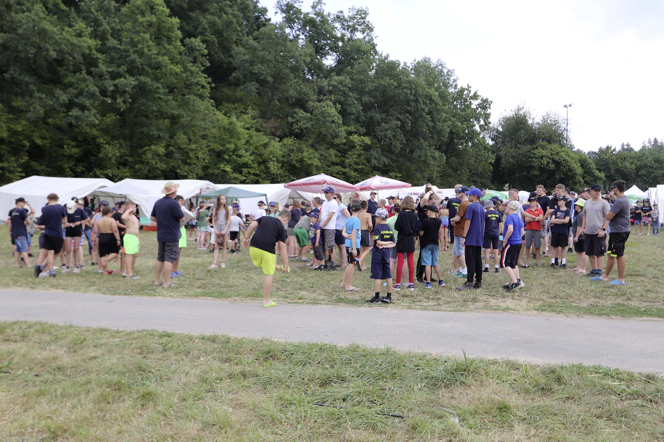 Bereits am Donnerstag reisten die ersten Jugendfeuerwehren zum Zeltaufbau an und lernten den Zeltplatz kennen. Nach der eigentlichen Anreise am Freitag und dem Einrichten der Zelte begrüßten Kreisjugendwartin Pamela Hollerbach und Bürgermeister Marco Eckl die Teilnehmer aus 19 Ortschaften im Neckar-Odenwald-Kreis auf dem Zeltplatz in Auerbach. Direkt bei der Anmeldung erhielten die Teilnehmer einen Trinkbecher – gestiftet vom Kreisjugendring Neckar-Odenwald-Kreis – für kostenfreie Getränke während des Zeltlagers. Bei Einbruch der Dunkelheit starteten die Jugendlichen zu einer Nachtwanderung. Die Kreisjugendsprecher hatten die Wanderung vorbereitet und sich als Auftakt eine Geistergeschichte mit einer weißen Frau, die in den Wäldern rund um Auerbach spukt, ausgedacht.
