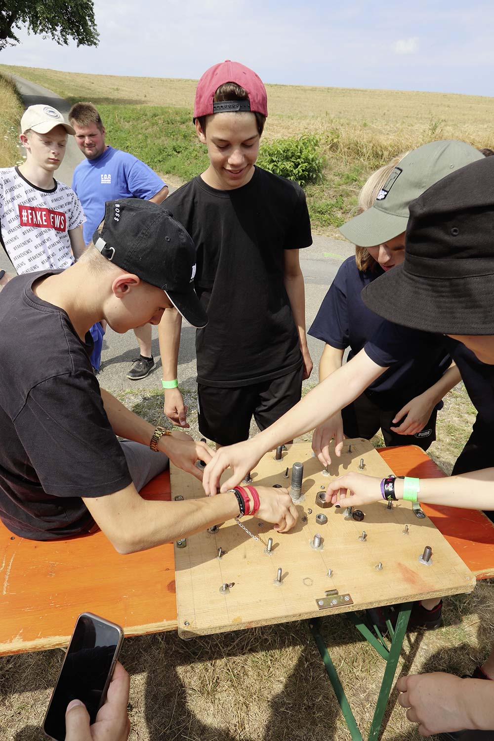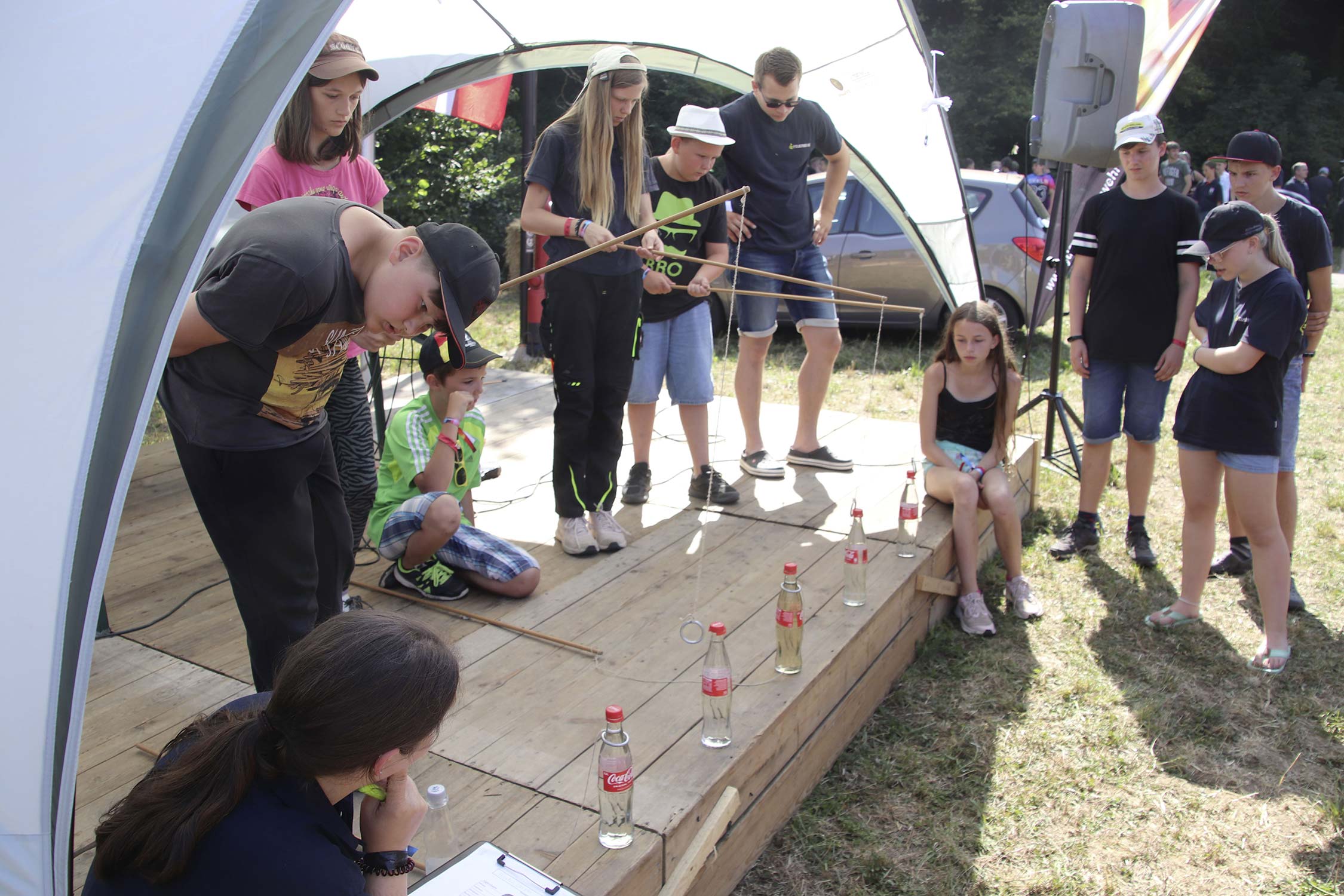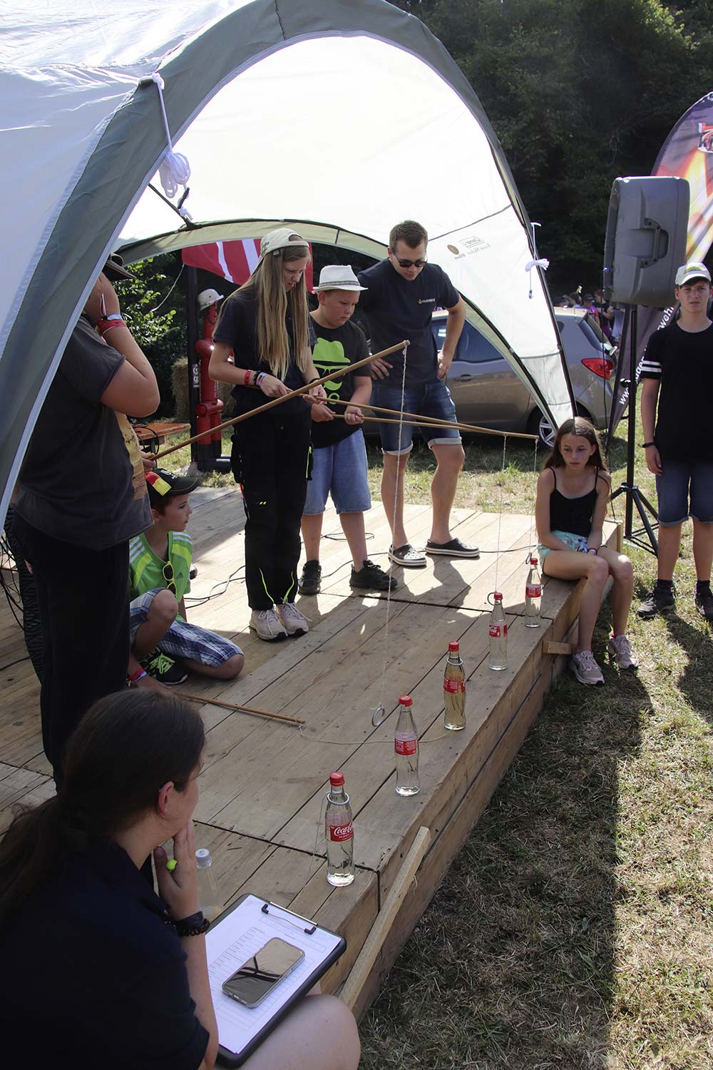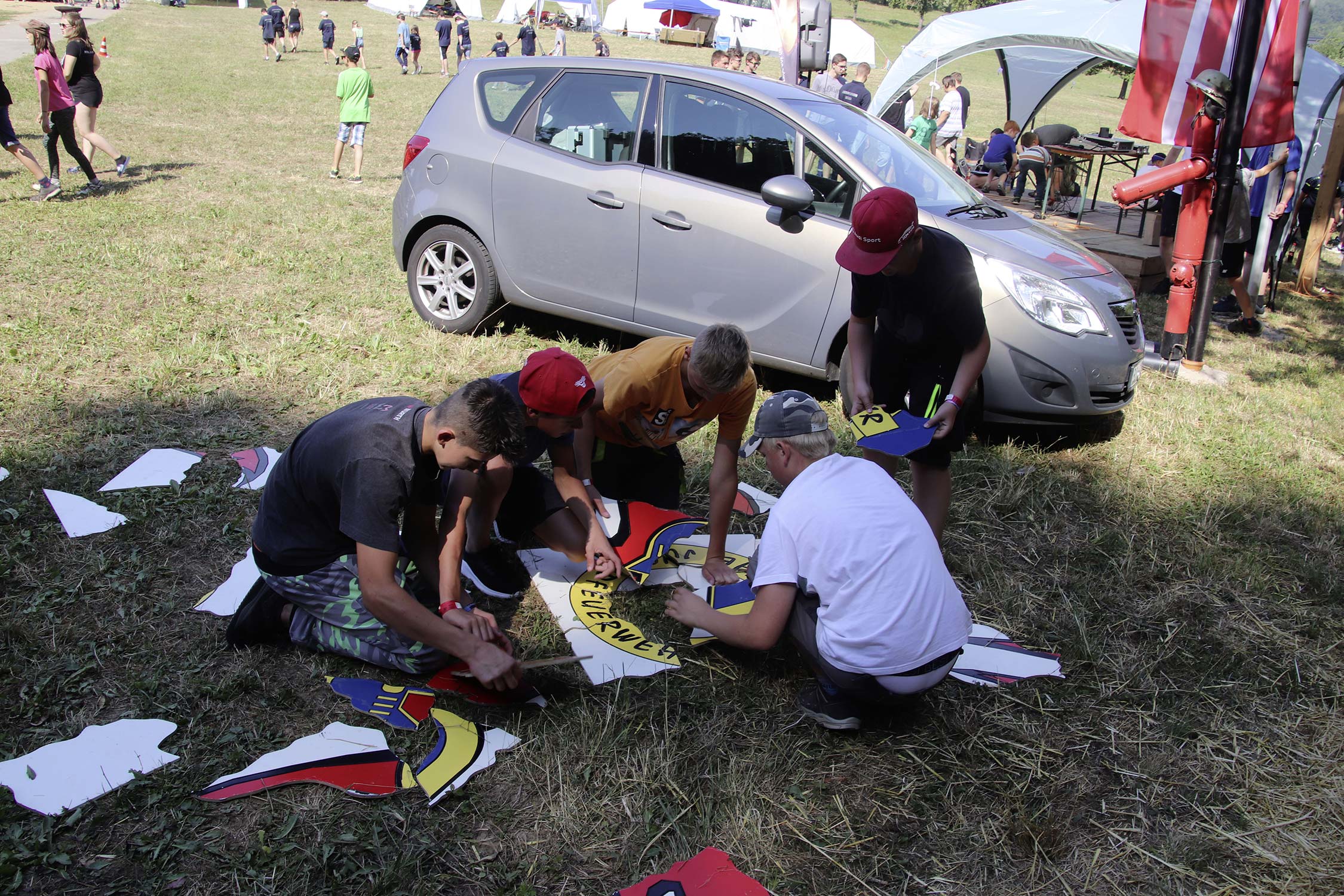 Bereits am Donnerstag reisten die ersten Jugendfeuerwehren zum Zeltaufbau an und lernten den Zeltplatz kennen. Nach der eigentlichen Anreise am Freitag und dem Einrichten der Zelte begrüßten Kreisjugendwartin Pamela Hollerbach und Bürgermeister Marco Eckl die Teilnehmer aus 19 Ortschaften im Neckar-Odenwald-Kreis auf dem Zeltplatz in Auerbach. Direkt bei der Anmeldung erhielten die Teilnehmer einen Trinkbecher – gestiftet vom Kreisjugendring Neckar-Odenwald-Kreis – für kostenfreie Getränke während des Zeltlagers. Bei Einbruch der Dunkelheit starteten die Jugendlichen zu einer Nachtwanderung. Die Kreisjugendsprecher hatten die Wanderung vorbereitet und sich als Auftakt eine Geistergeschichte mit einer weißen Frau, die in den Wäldern rund um Auerbach spukt, ausgedacht.