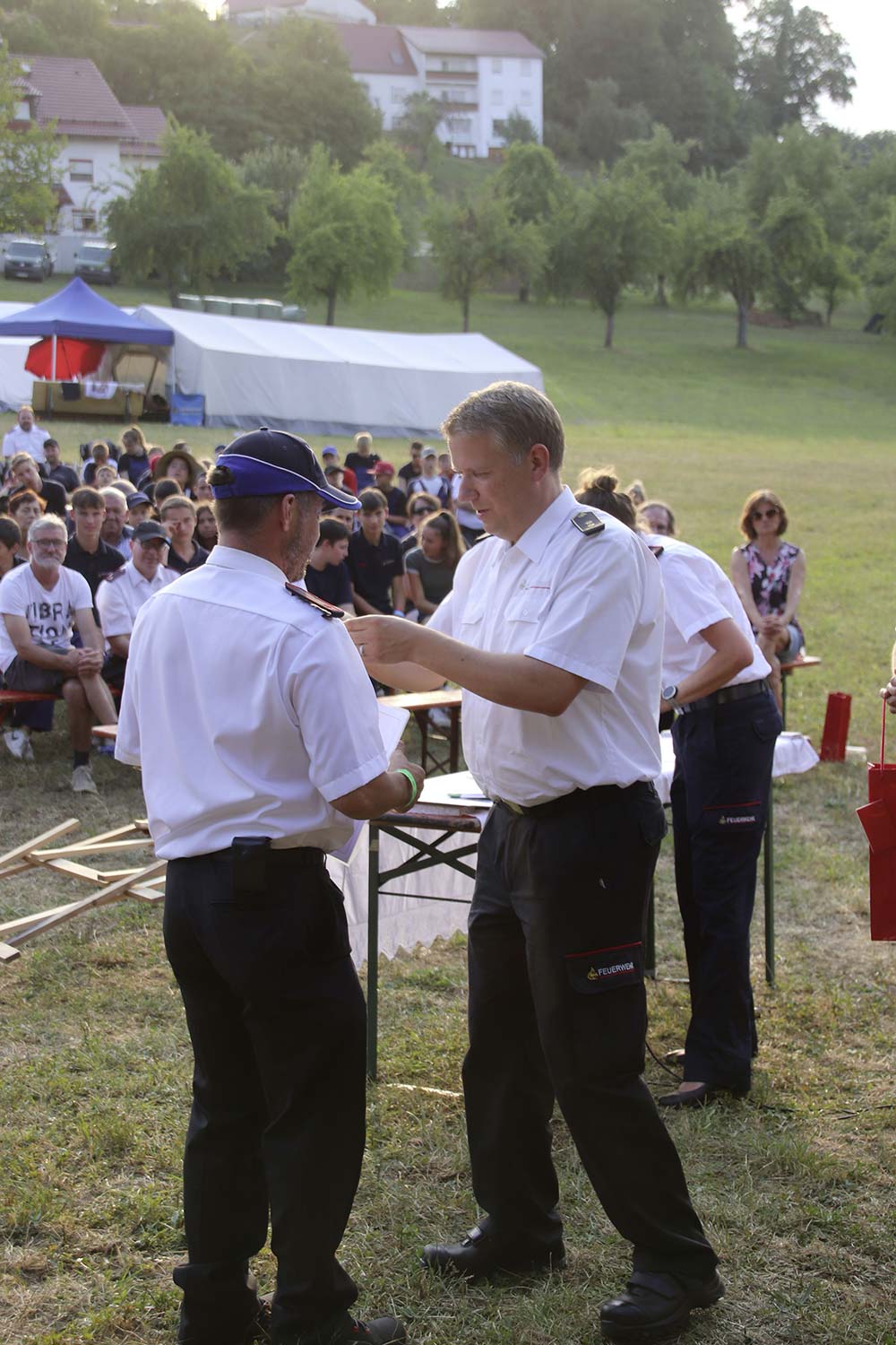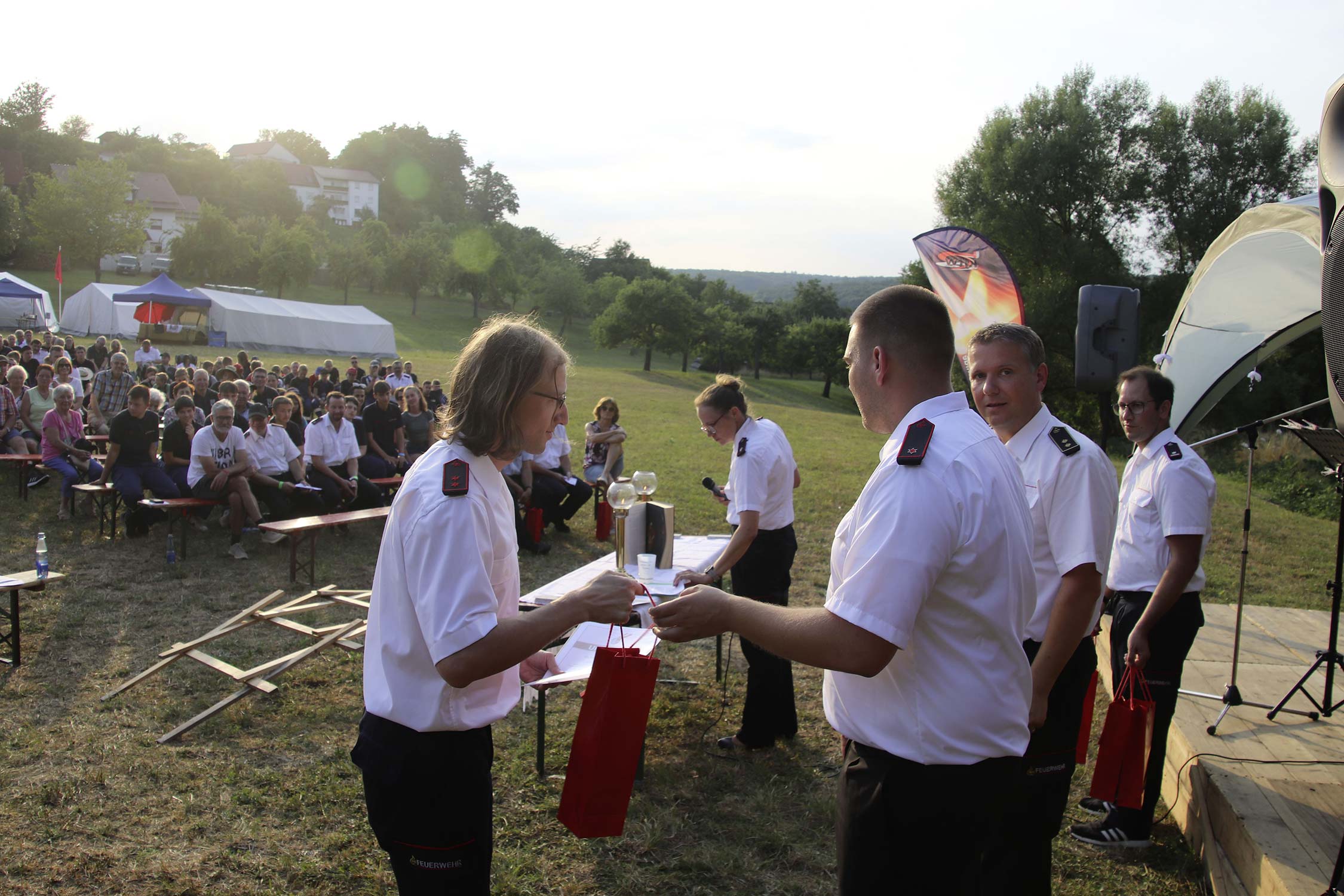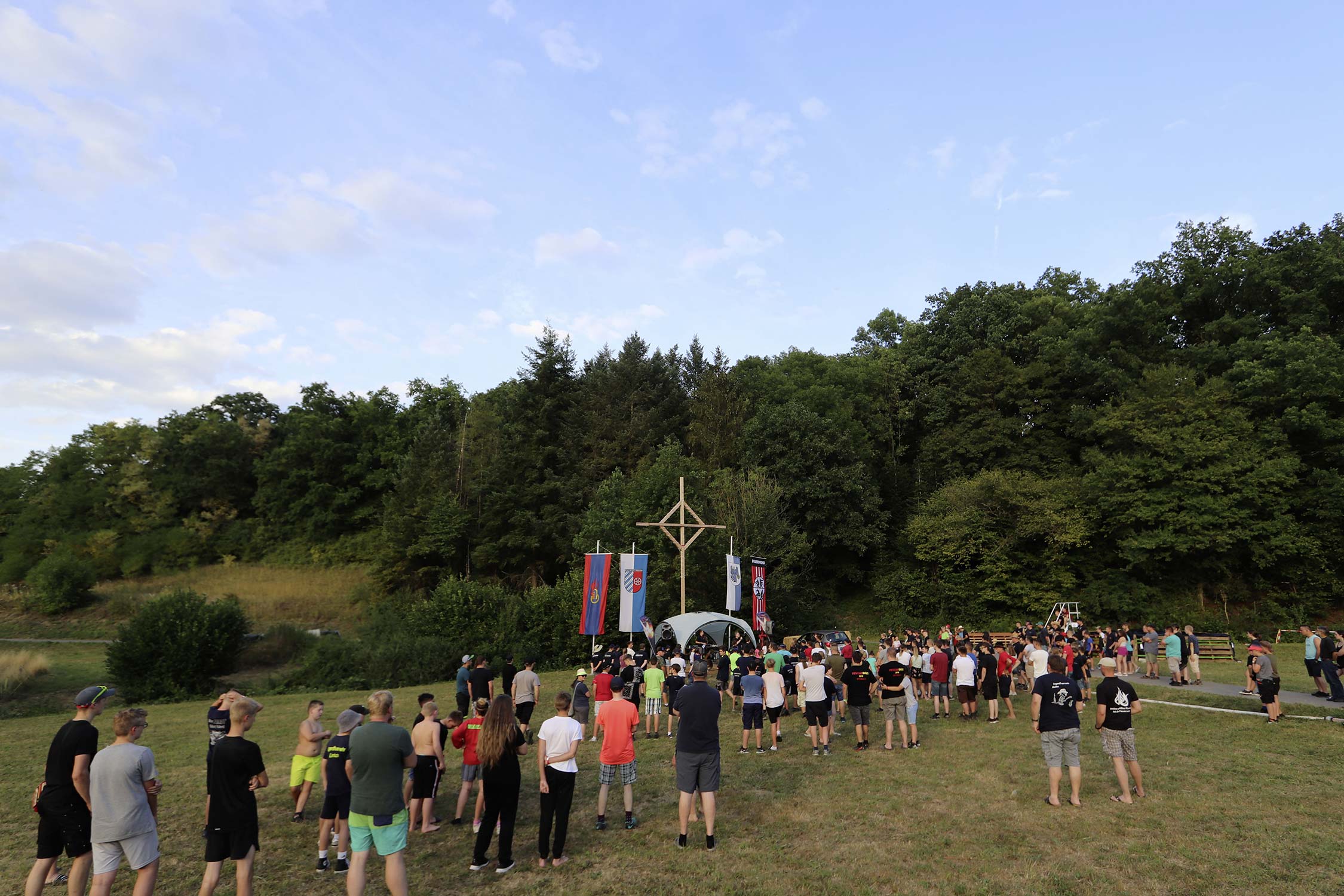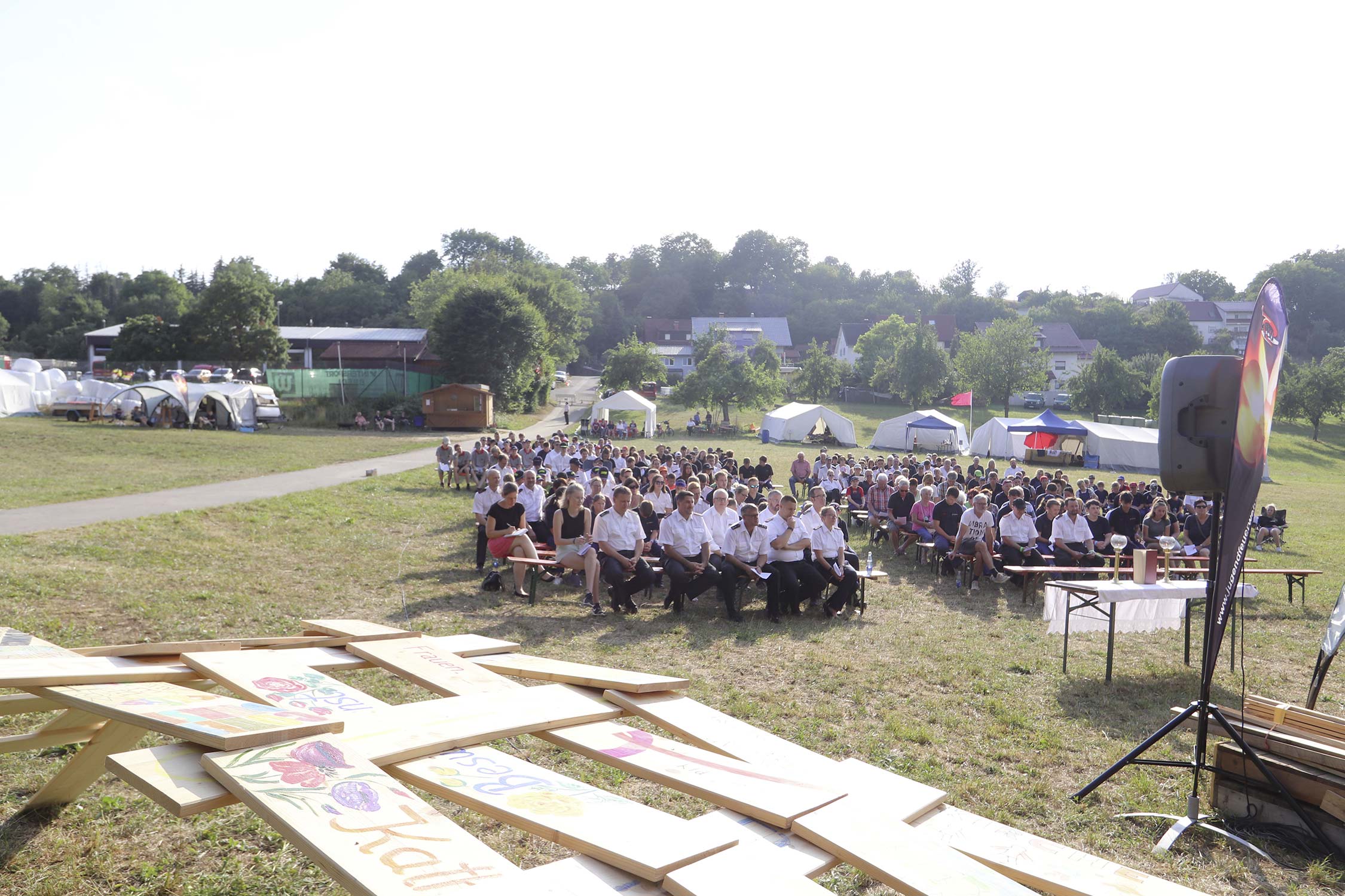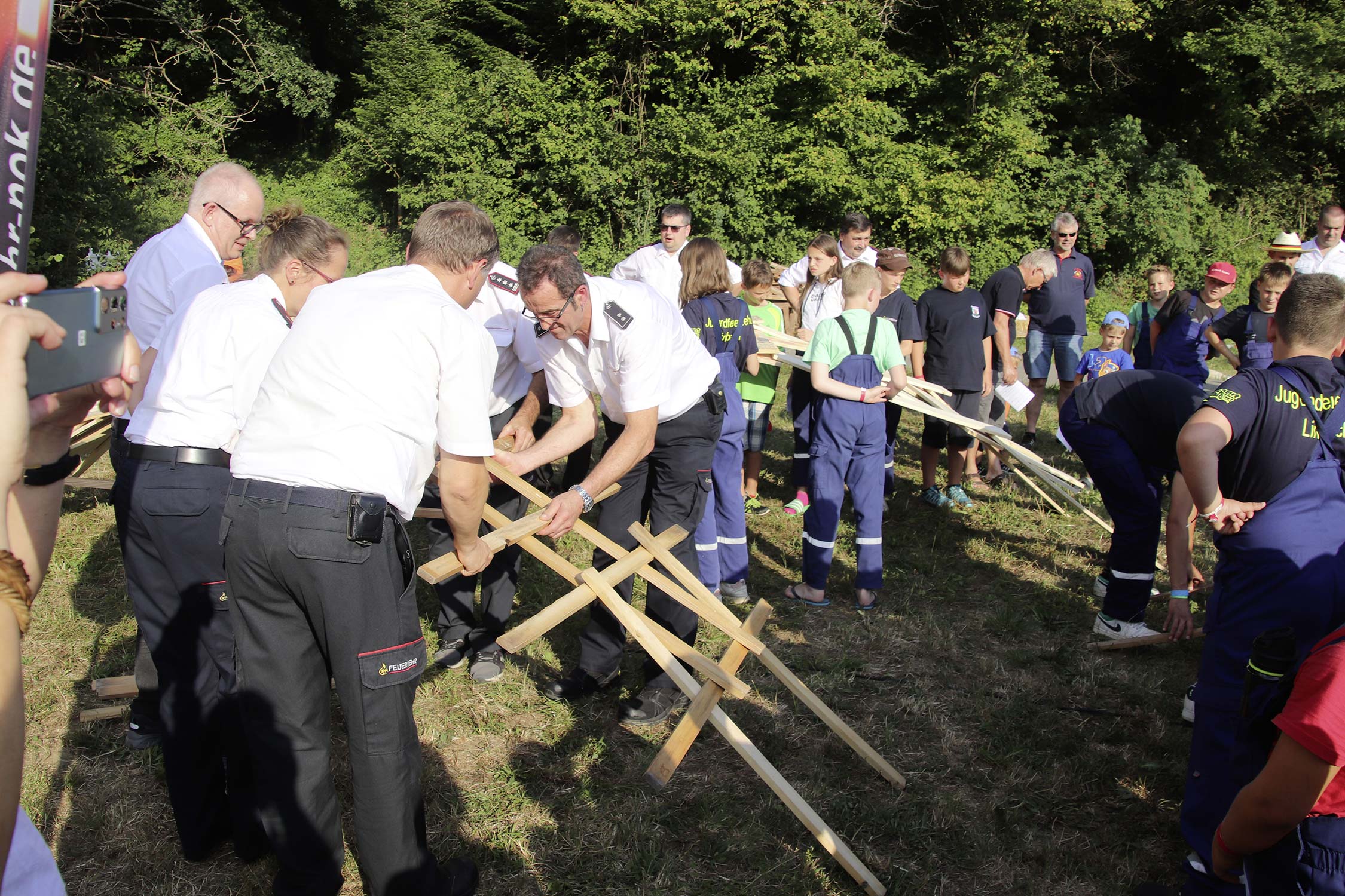 Bevor der Abend bei Stockbrot am Lagerfeuer ausklang, erfuhren die Teilnehmer während des Gottesdienstes wie man eine selbsttragende Brücke konstruiert und wer mit der Ehrennadel der Jugendfeuerwehr Neckar-Odenwald-Kreis und mit der goldenen Ehrennadel der Jugendfeuerwehr Baden-Württemberg ausgezeichnet wurde – wir berichten hierzu in Kürze.