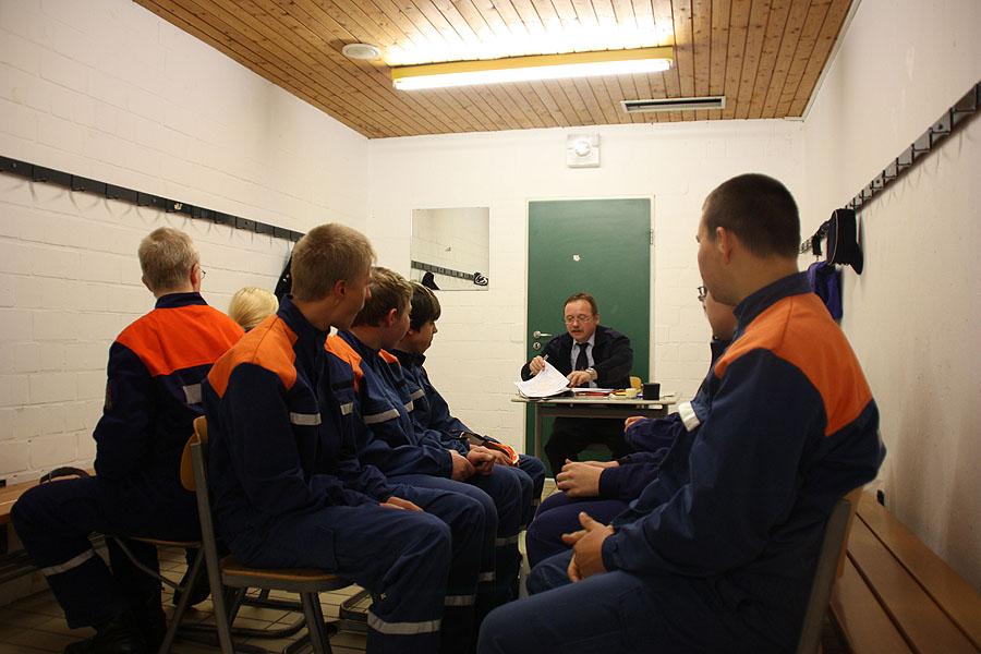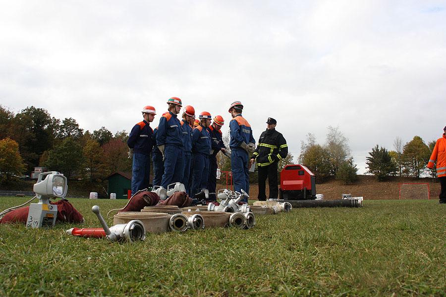 Nachdem die Gruppen am Morgen von Kreisjugendfeuerwehrwart Nikolaus Klasan und dem Kommandant der Feuerwehr Osterburken, Peter Schmidt, begrüßt worden waren, ging es an's Eingemachte. Für die je neun Gruppenmitglieder galt es gemeinsam fünf Aufgaben zu erfüllen und dabei auch noch einen guten Eindruck bei den Schiedsrichtern zu hinterlassen.