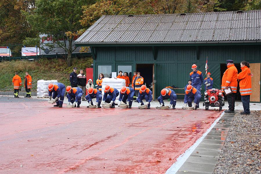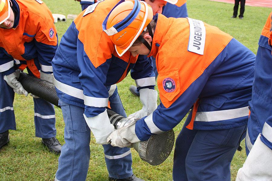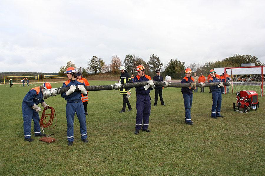 Bei der sicherlich schwierigsten Aufgabe, der Schnelligkeitsübung, geht es darum, zu neunt acht Schläuche von je 15 m Länge in weniger 75 Sekunden ohne Verdrehung der Schlauchleitung zu verlegen. Der zweite sportliche Teil besteht aus einem Staffellauf über 1500 m, bei dem es den Jugendlichen freigestellt ist, wer wie weit läuft. Wichtig ist nur, dass das Staffelholz spätestens nach 4:10 min die Ziellinie erreicht hat.