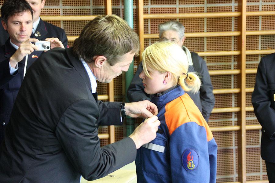Die Bewirtung der Teilnehmer, deren Betreuer, den Helfern und Schiedsrichtern bewältigte die Schul-Mensa des GTO. Am Nachmittag standen schließlich die Ergebnisse fest und alle Teilnehmer durften das begehrte Leistungsabzeichen aus den Händen von MDB Alois Gehrig, Kreisbrandmeister Rainer Dietz und Bürgermeister Jürgen Galm entgegen nehmen. In ihren kurzen Grußworten bedankten sie sich bei den Jugendlichen für ihr Engagement und hofften darauf, dass die Jugendlichen ihren Enthusiasmus und ihre Hilfsbereitschaft in die Einsatzabteilungen ihrer Feuerwehren übernehmen.