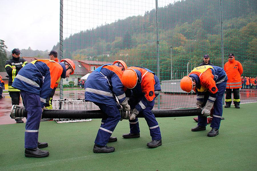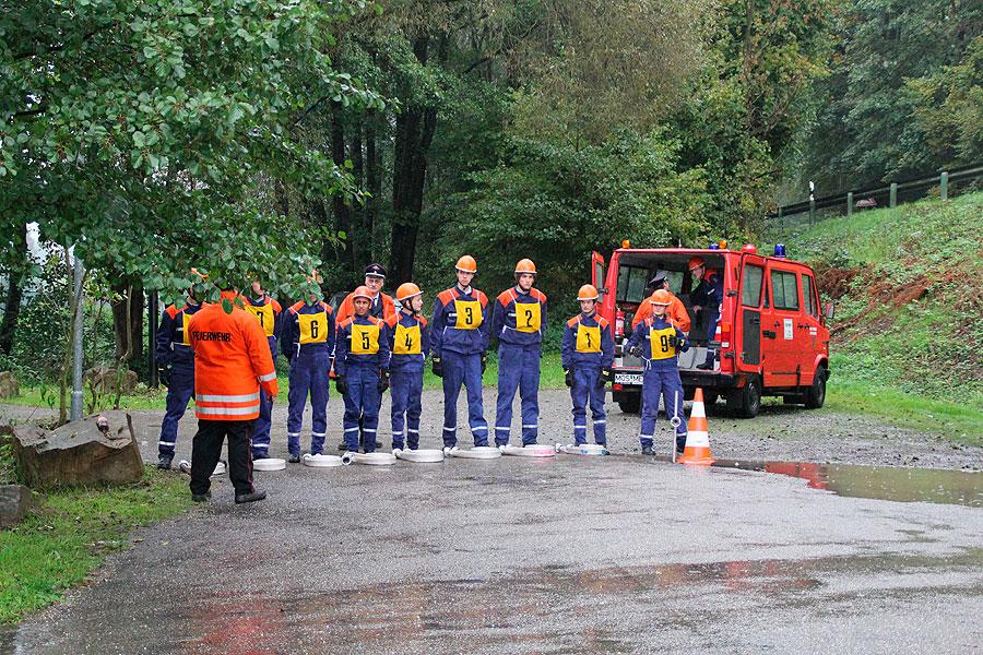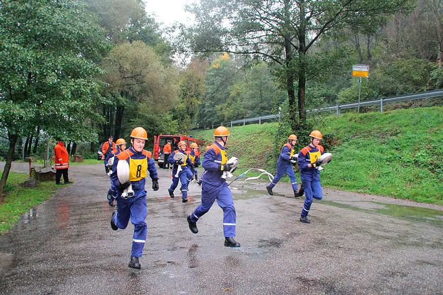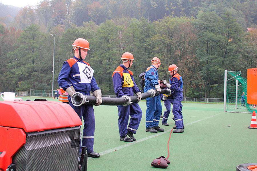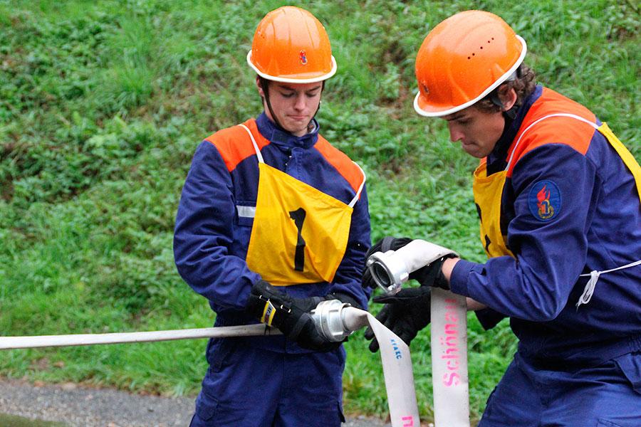 Bei der sicherlich schwierigsten Aufgabe, der Schnelligkeitsübung, geht es darum, zu neunt acht Schläuche von je 15 m Länge in weniger als 75 Sekunden ohne Verdrehung der Schlauchleitung zu verlegen. Der zweite sportliche Teil besteht aus einem Staffellauf über 1500 m, bei dem es den Jugendlichen freigestellt ist, wer wie weit läuft. Wichtig ist nur, dass das Staffelholz spätestens nach 4:10 min die Ziellinie passiert hat.
