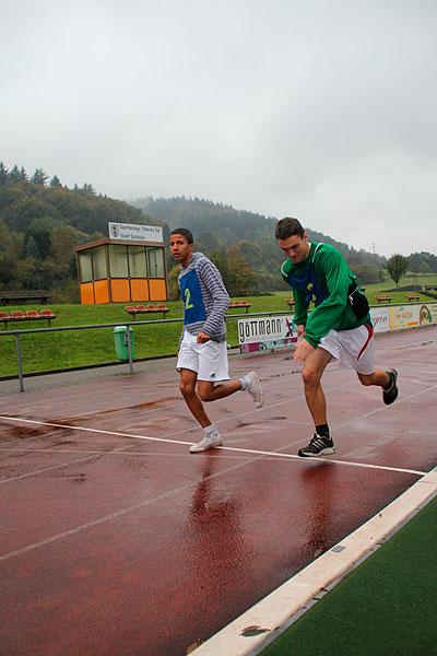 Unter dichten Regenwolken aus denen zeitweise kräftig Regen fiel, gingen die Mädchen und Jungen zwischen 15 und 18 Jahren ans Werk. Bei den unterschiedlichen Aufgaben zeigten die Jugendlichen gute bis sehr gute Leistungen. Um im Kugelstoßen gemeinsam 55 m zu erreichen mussten sich alle Gruppenmitglieder anstrengen und die 5-kg-Kugel (Jungen) bzw. die 4-kg-Kugel (Mädchen) ohne überzutreten soweit wie möglich in den Kugelstoß-Sektor befördern.