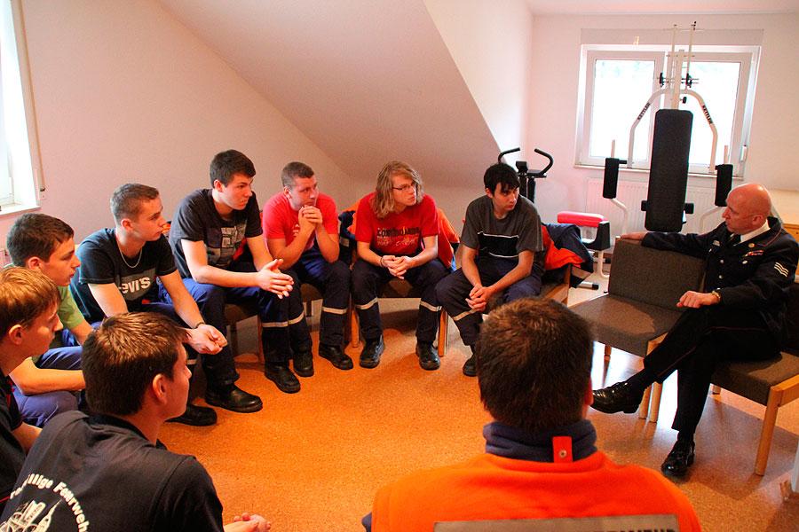 Rund 15 Minuten fühlte sich jede Gruppe wie in der Schule und musste Fragen zu allerlei verschiedenen Themen, wie zum Beispiel Politik, Feuerwehr, Allgemeinbildung und aktuelle Themen, beantworten. Die Königsdisziplin stellt der Löschangriff nach der aktuellen Feuerwehrdienstvorschrift dar. Möglichst ohne Fehler gilt es dabei eine Wasserversorung aufzubauen und von einem offenen Gewässer Wasser zu entnehmen und dieses mittels Verteiler und Schläuchen von drei Stellen an die angenommene Brandstelle zu bringen.