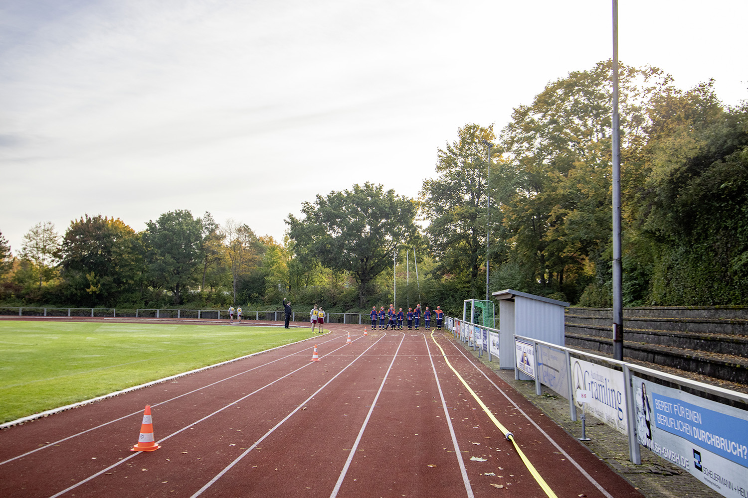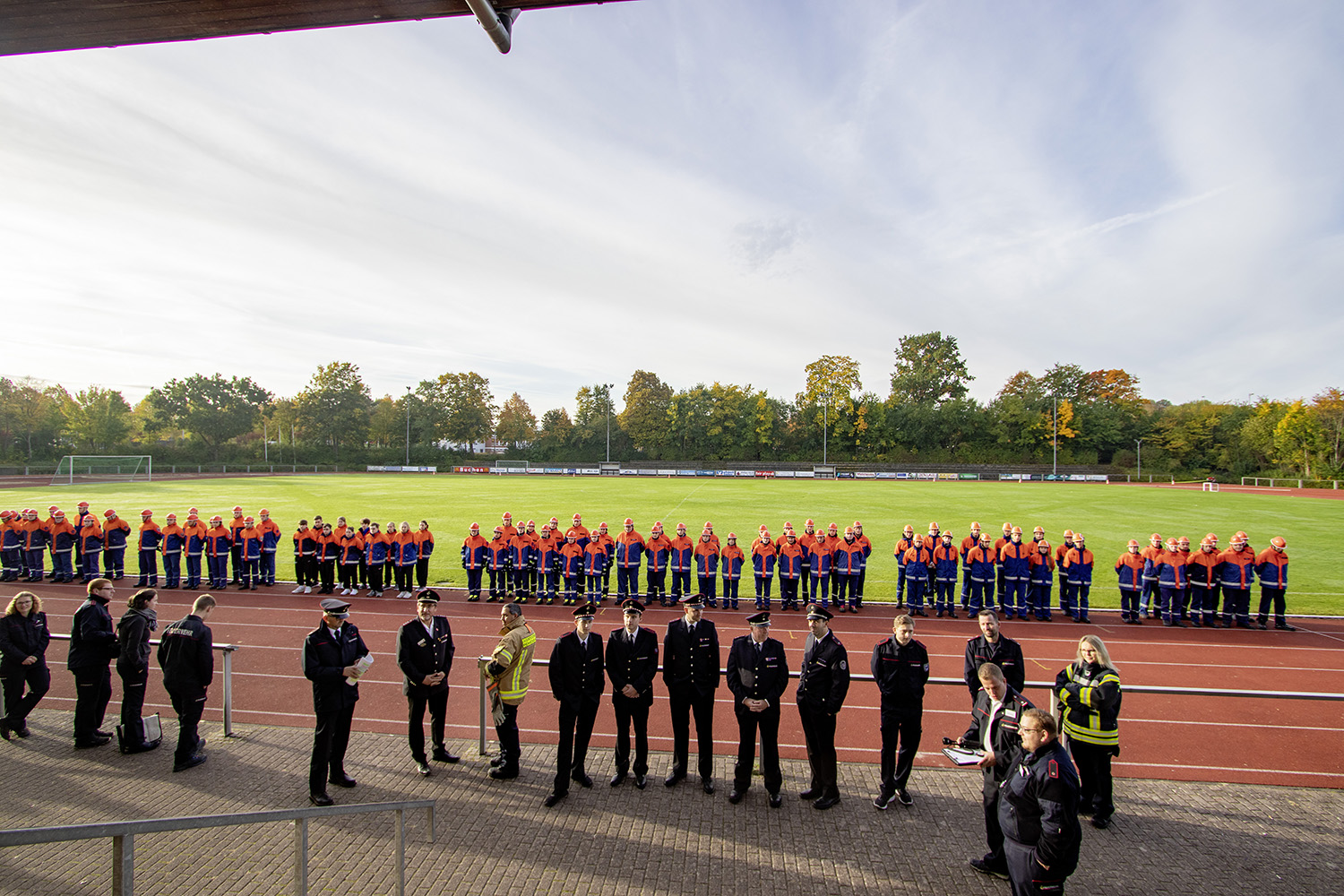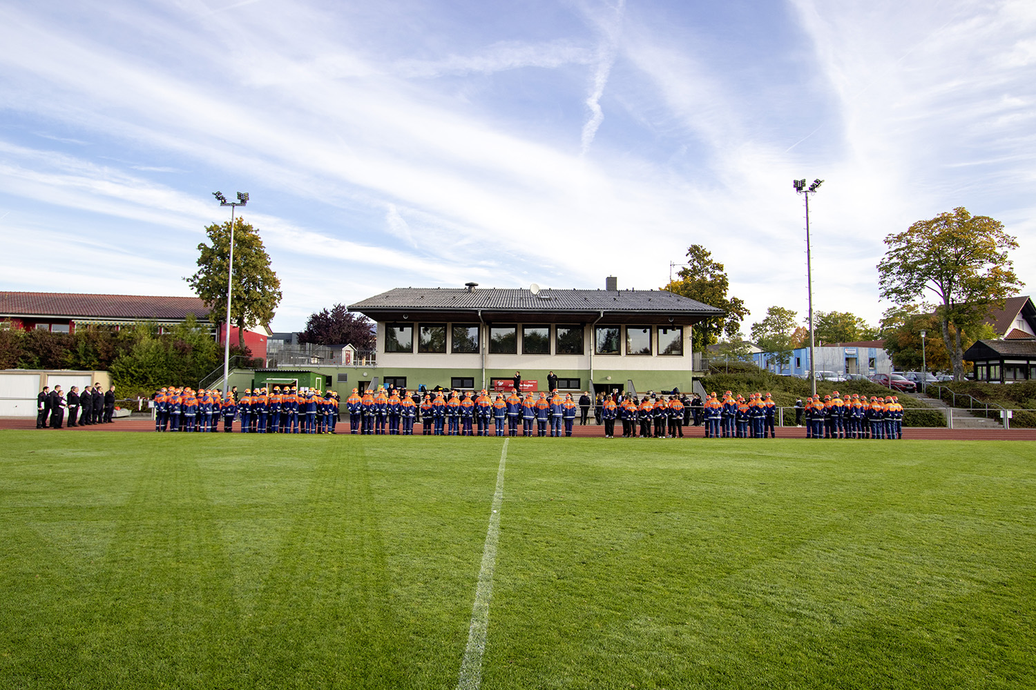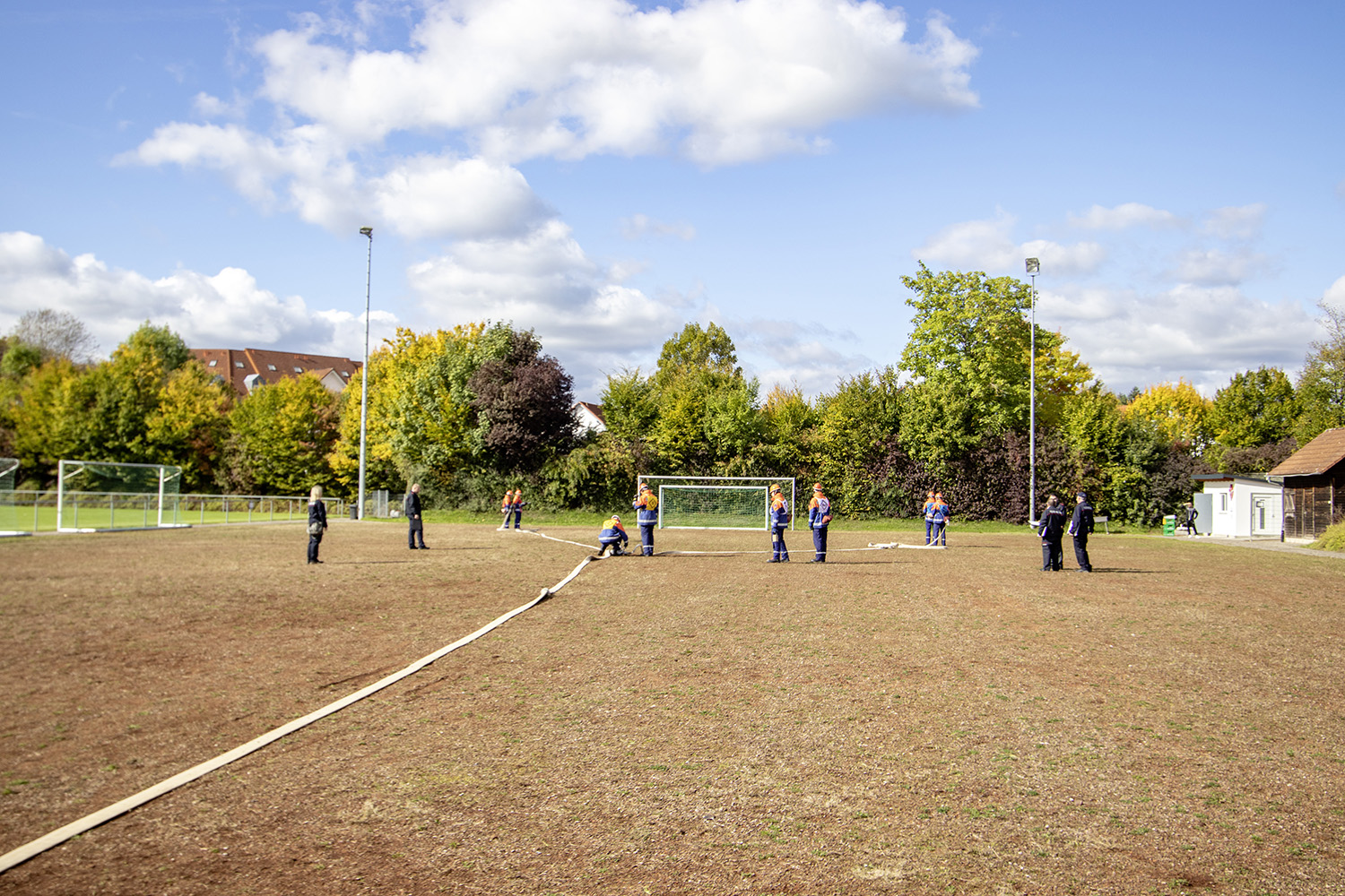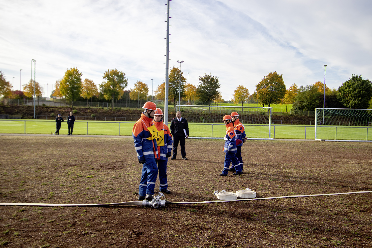 Kreisjugendwartin Pamela Hollerbach und Bürgermeister Roland Burger begrüßten am Morgen die Jugendlichen und ihre Betreuer im Frankenlandstadion bevor sich die Gruppen mit je neun Jugendlichen sich bei schönstem Herbstwetter ans Werk machten. Unter den Augen der Schiedsrichter und der Abnahmeberechtigten der Deutschen Jugendfeuerwehr, Mike Supper und Frank Luckenbach, zeigten die Jugendfeuerwehrler gute bis sehr gute Leistungen.