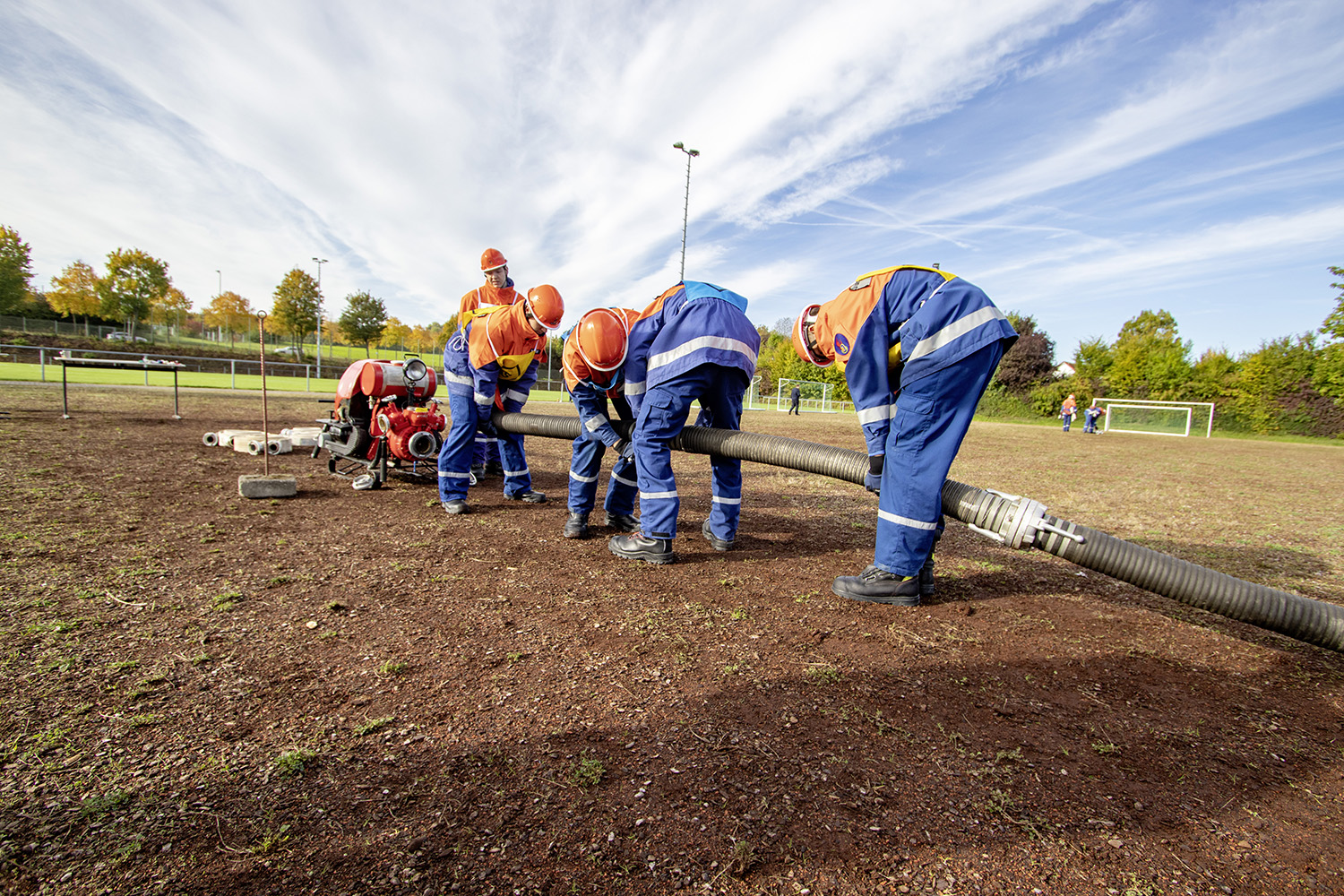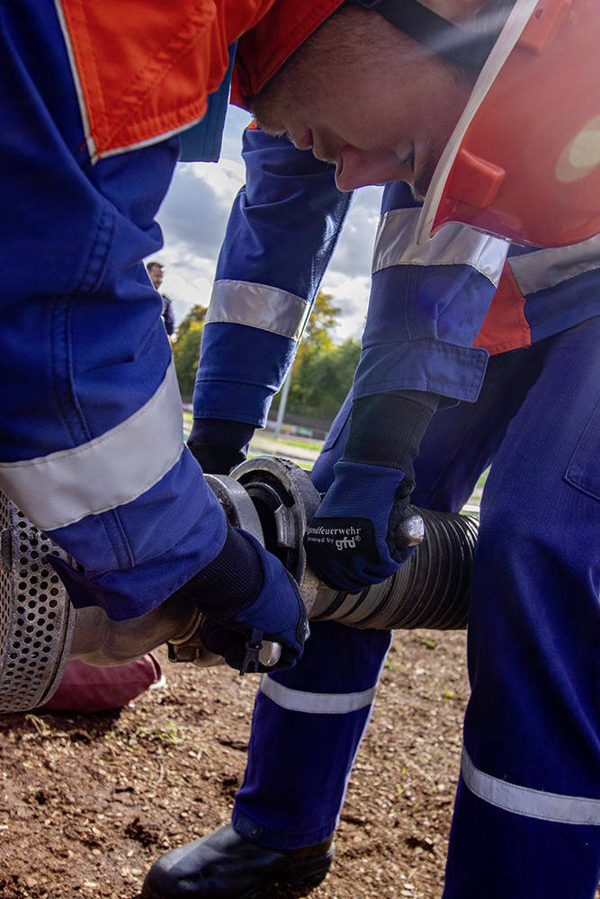 Bei der sicherlich schwierigsten Aufgabe, der Schnelligkeitsübung, geht es darum, zu neunt acht Schläuche von je 15 m Länge in weniger als 75 Sekunden ohne Verdrehung der Schlauchleitung zu verlegen. Die Königsdisziplin stellt der Löschangriff nach der aktuellen Feuerwehrdienstvorschrift dar. Möglichst ohne Fehler gilt es dabei eine Wasserversorung aufzubauen und aus offenem Gewässer Wasser zu entnehmen und dieses mittels Verteiler und Schläuchen von drei Stellen an die angenommene Brandstelle zu bringen.