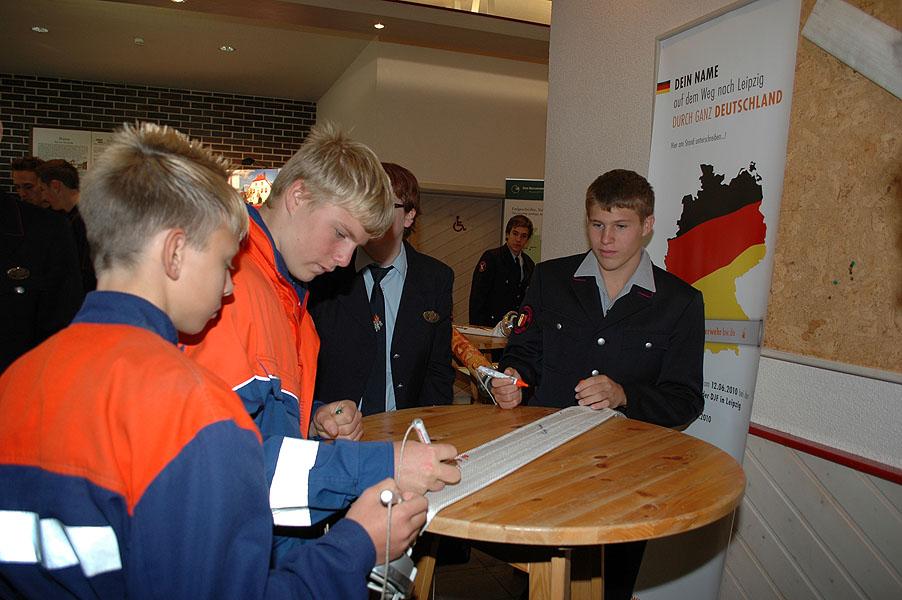 Mit dem "Brückenschlag" der Deutschen Jugendfeuerwehr verbindet die Zeit zwischen den Delegiertenversammlung der DJF in Amberg (2009) und in Leipzig (2010). In dieser Zeit wandern verschieden beschriftete 1m-Stücke B-Schlauch von Land zu Land. Angefangen mit einem ersten Schlauchteil der Deutschen Jugendfeuerwehr kam der Schlauchteil der Jugendfeuerwehr Bayern dazu. An diesem Wochenende wurde der Schlauch mit dem nunmehr dritten Teil der Jugendfeuerwehr Baden-Württemberg an die Jugendfeuerwehr Hessen übergeben.